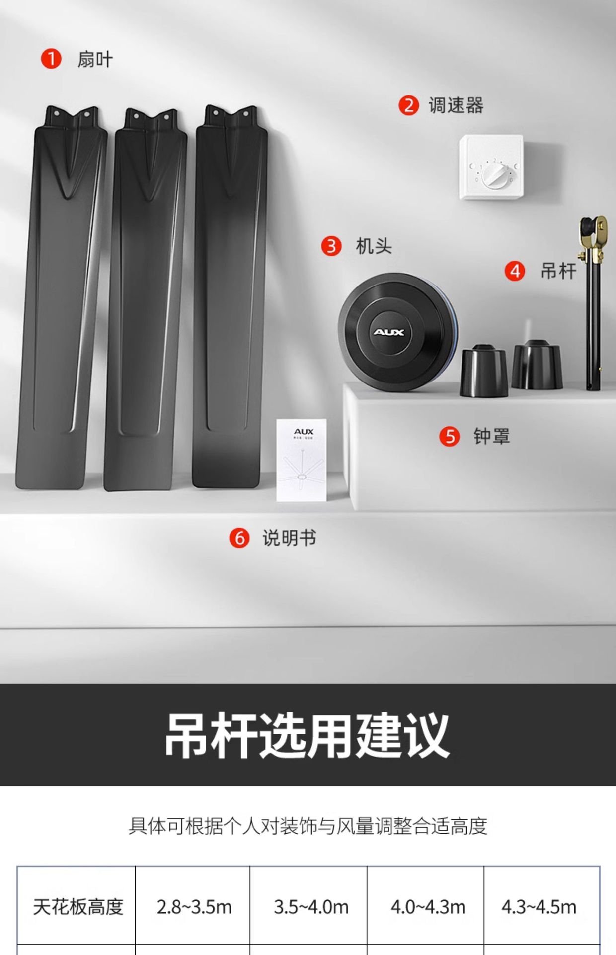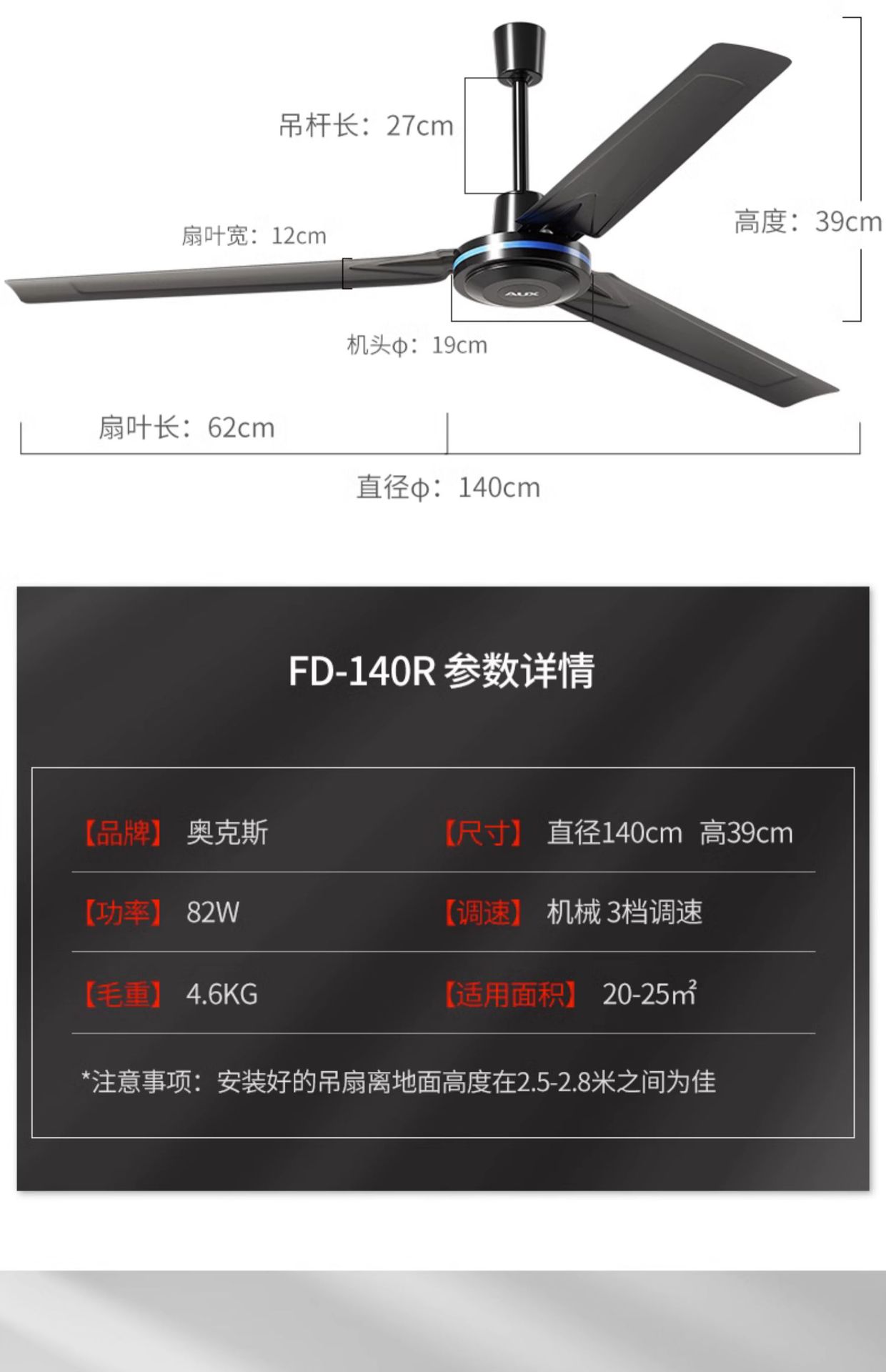 奥克斯1.4米家用客厅五叶遥控吊风扇56寸工厂工业学校用宿舍吊扇