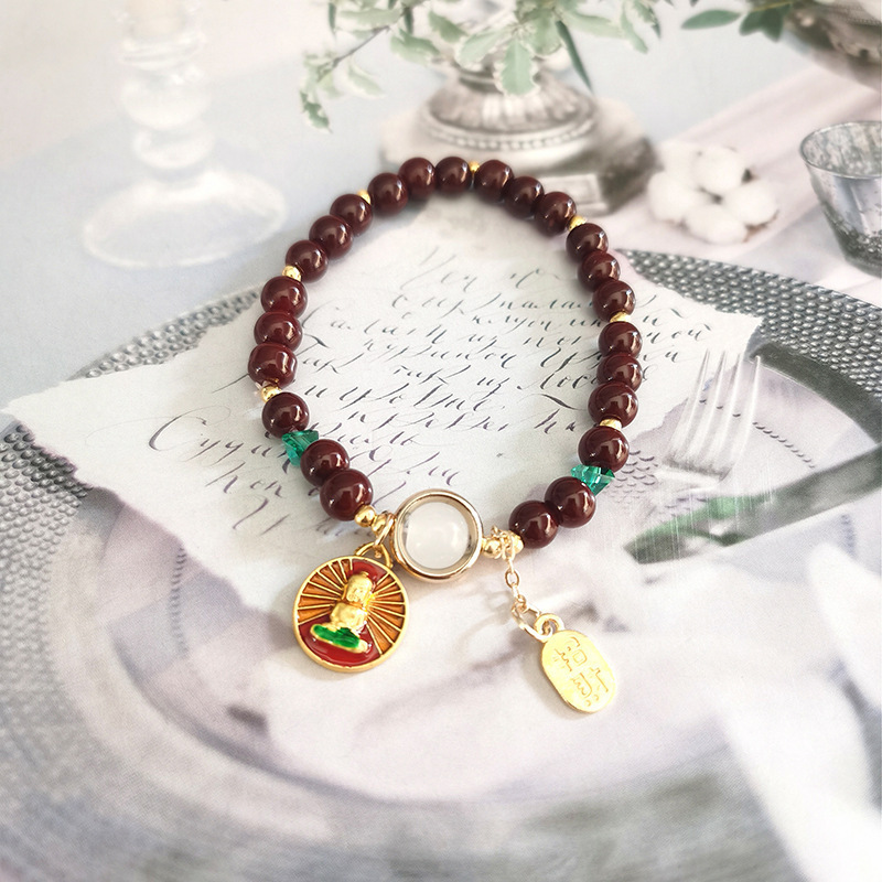森系蝴蝶琉璃手链手工串珠女ins小众闺蜜手串冰裂碎花珠串珠批发