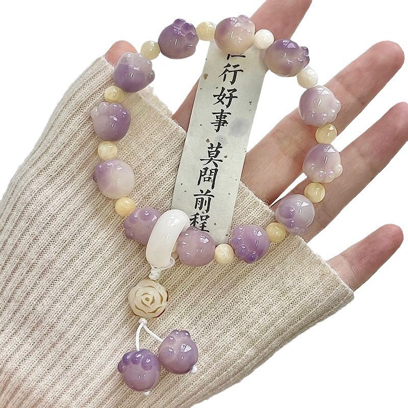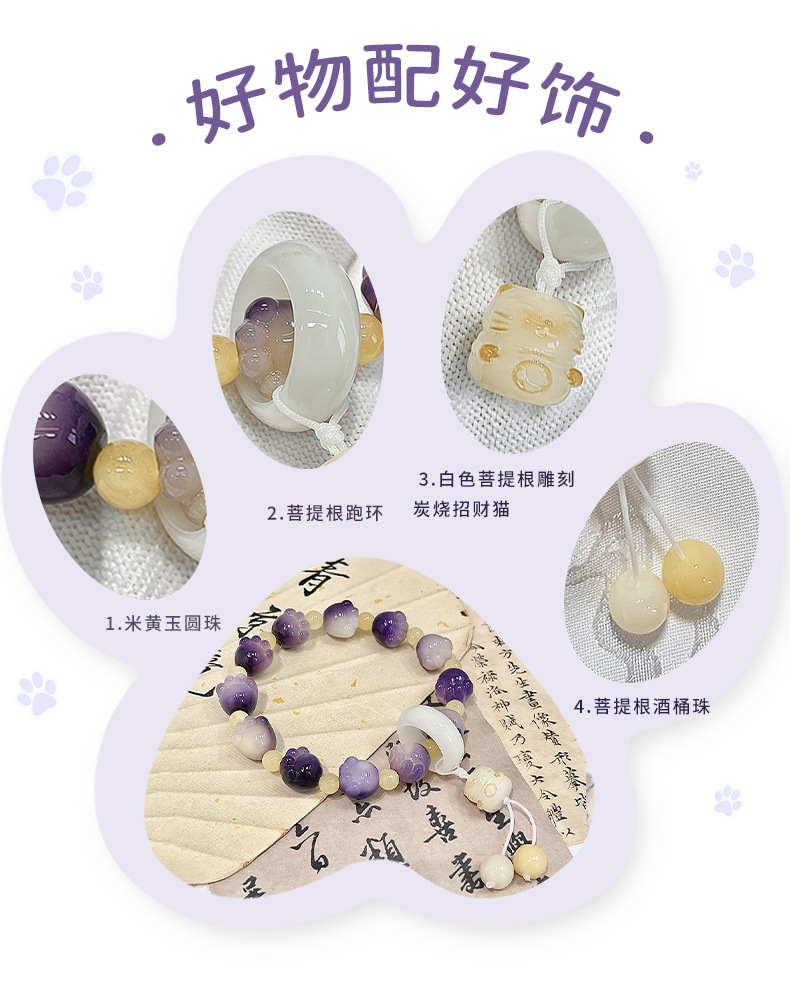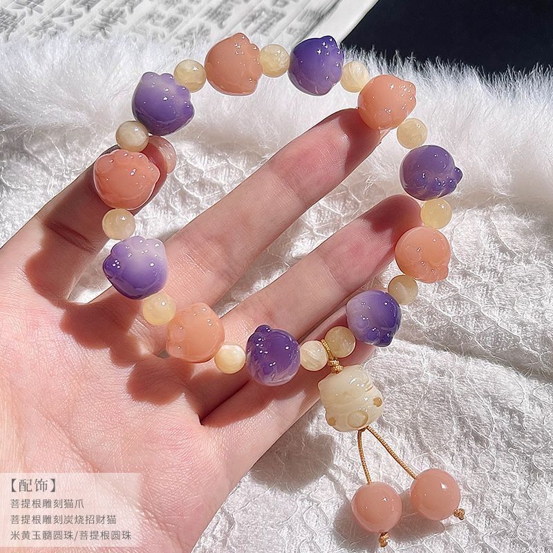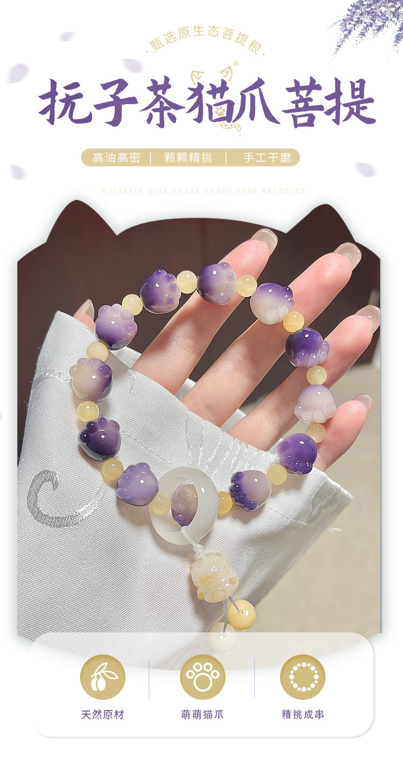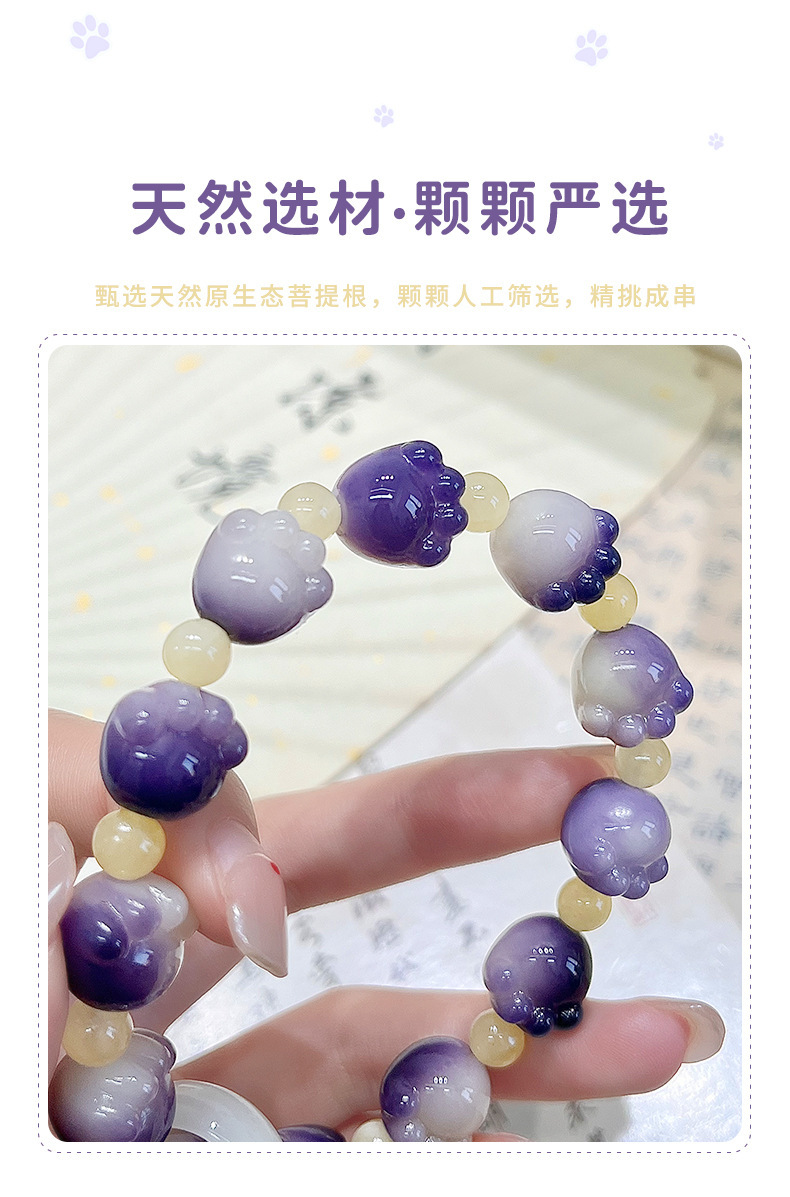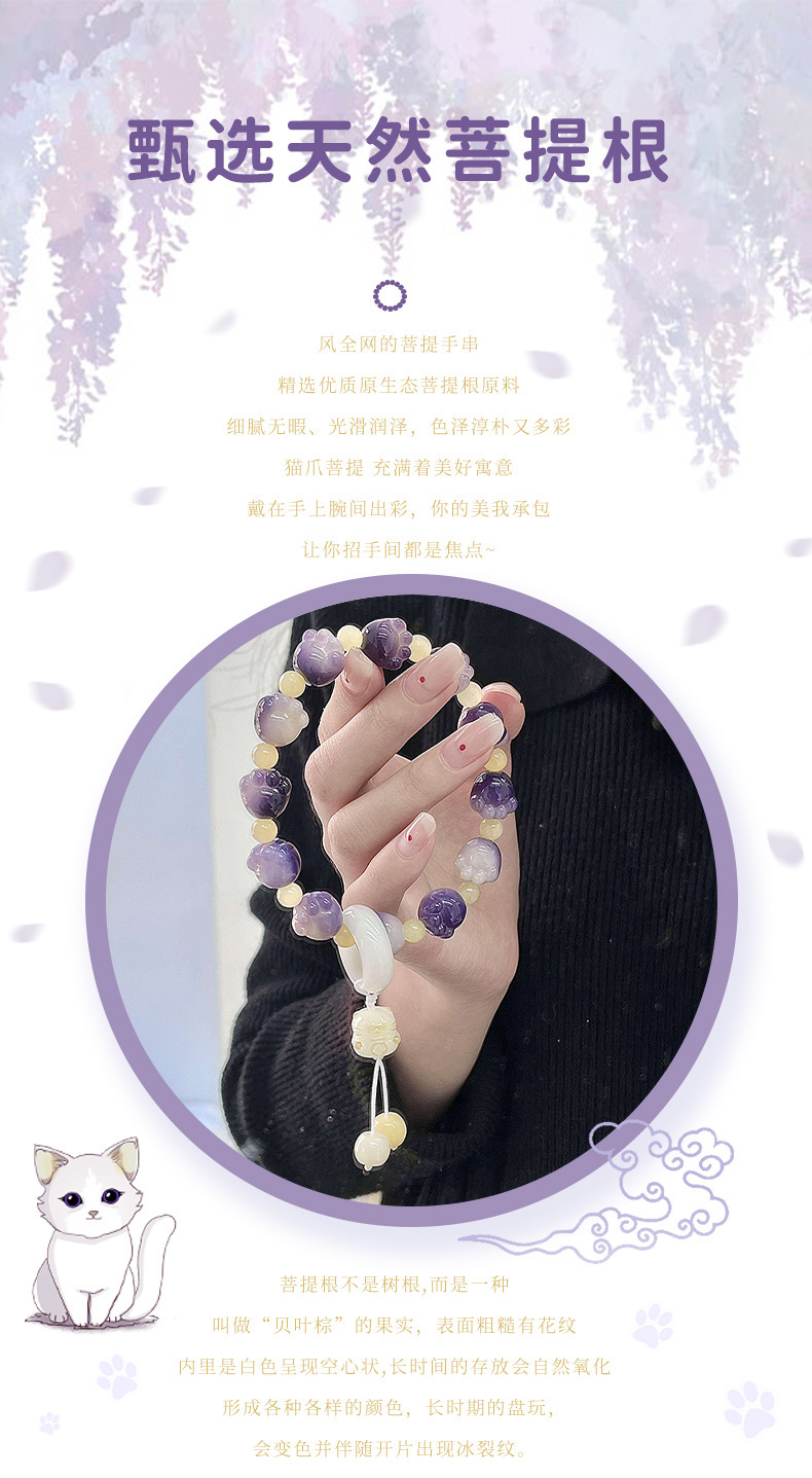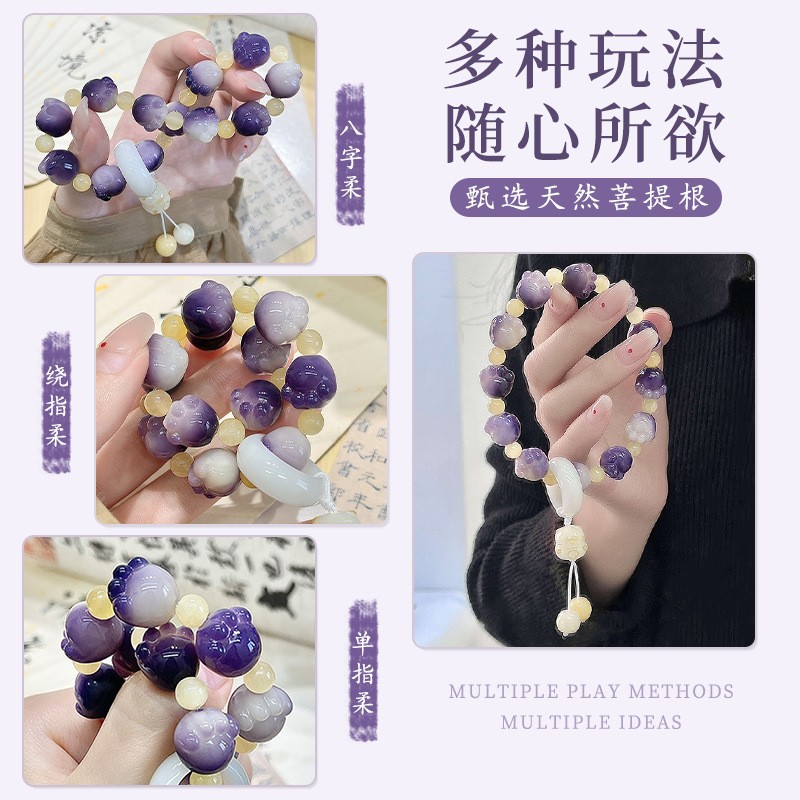 糯米紫雕刻菩提手串猫爪学生手链吊坠菩提子佛珠念珠盘玩手链批发