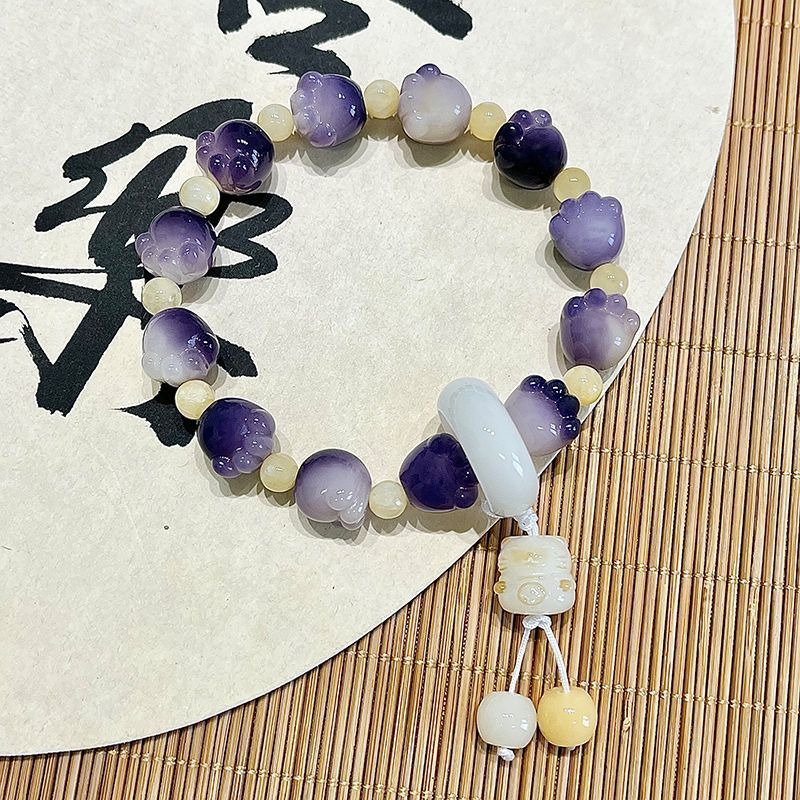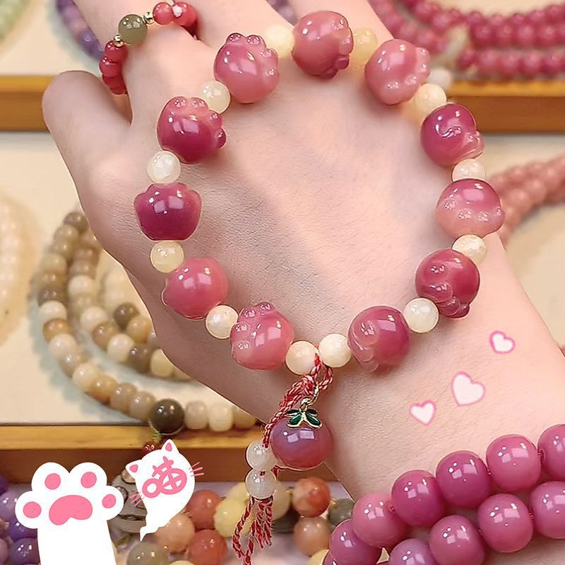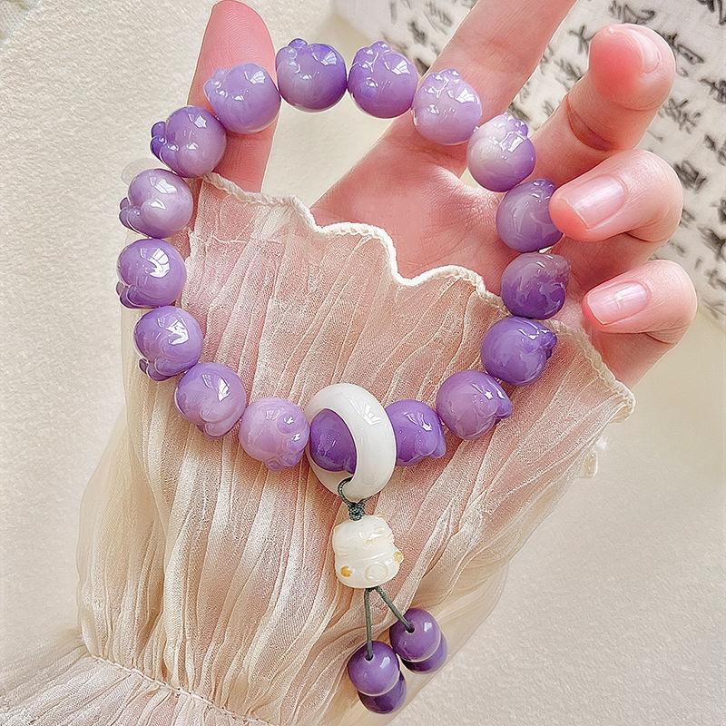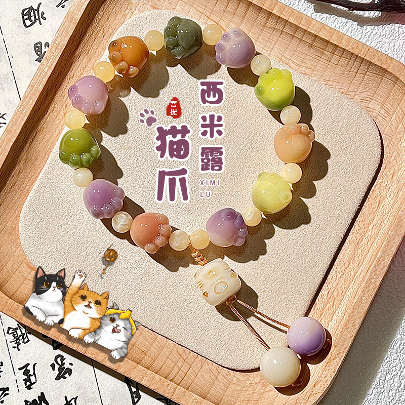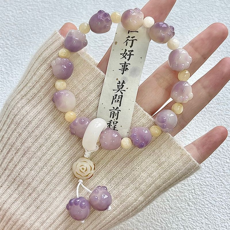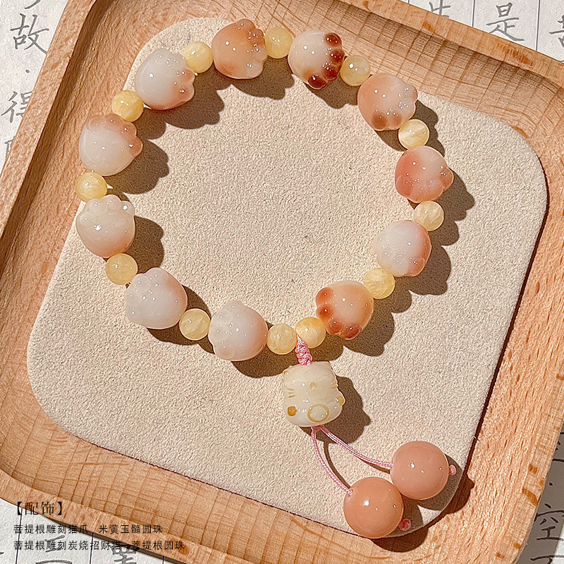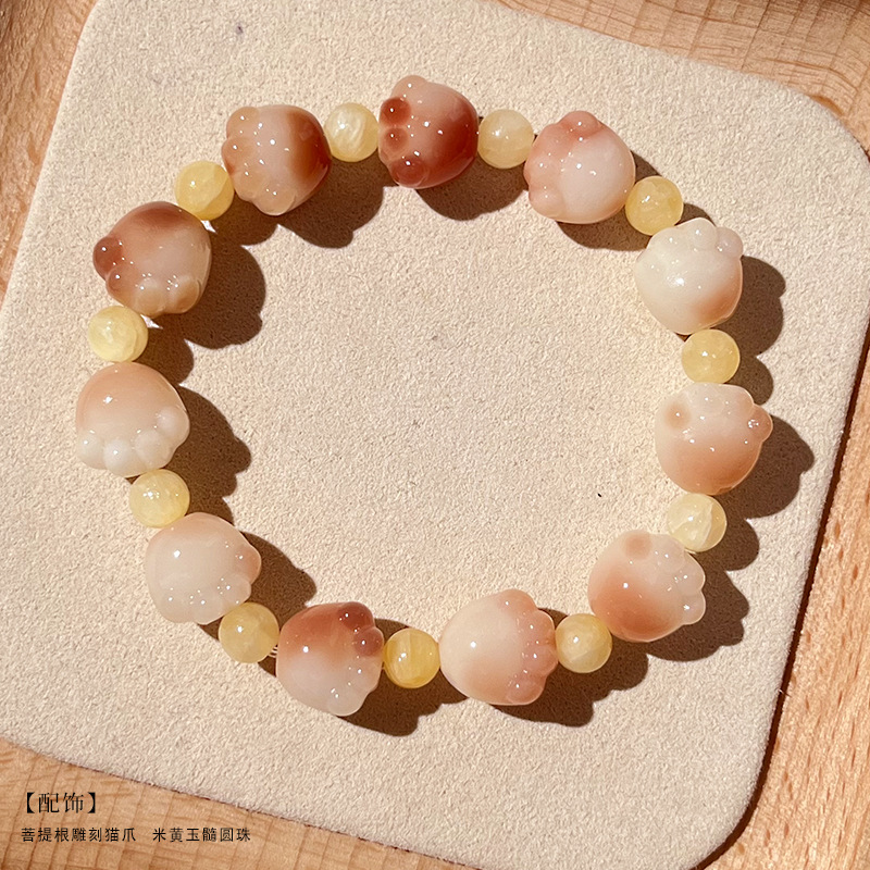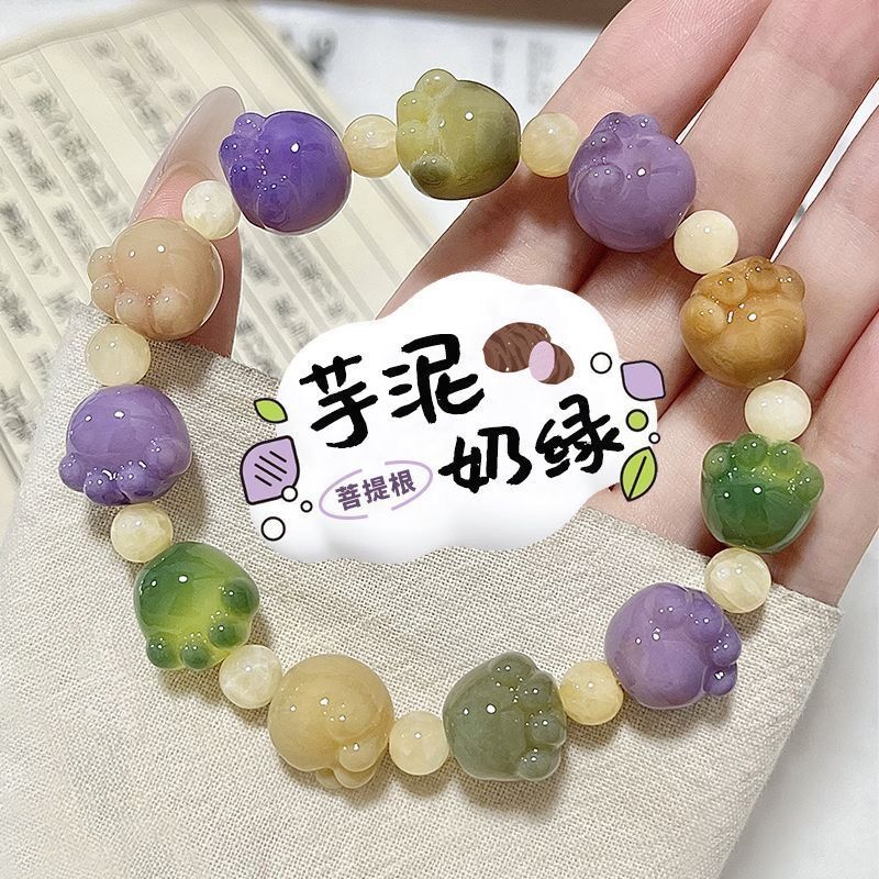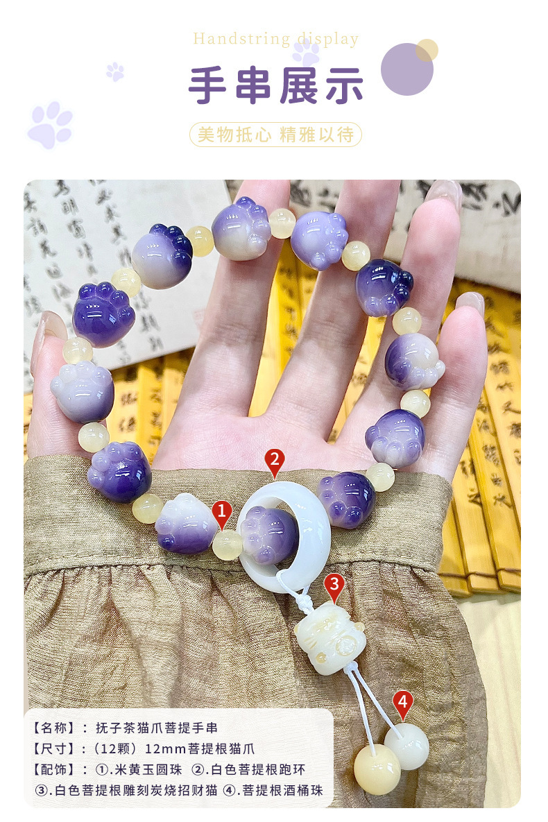 糯米紫雕刻菩提手串猫爪学生手链吊坠菩提子佛珠念珠盘玩手链批发