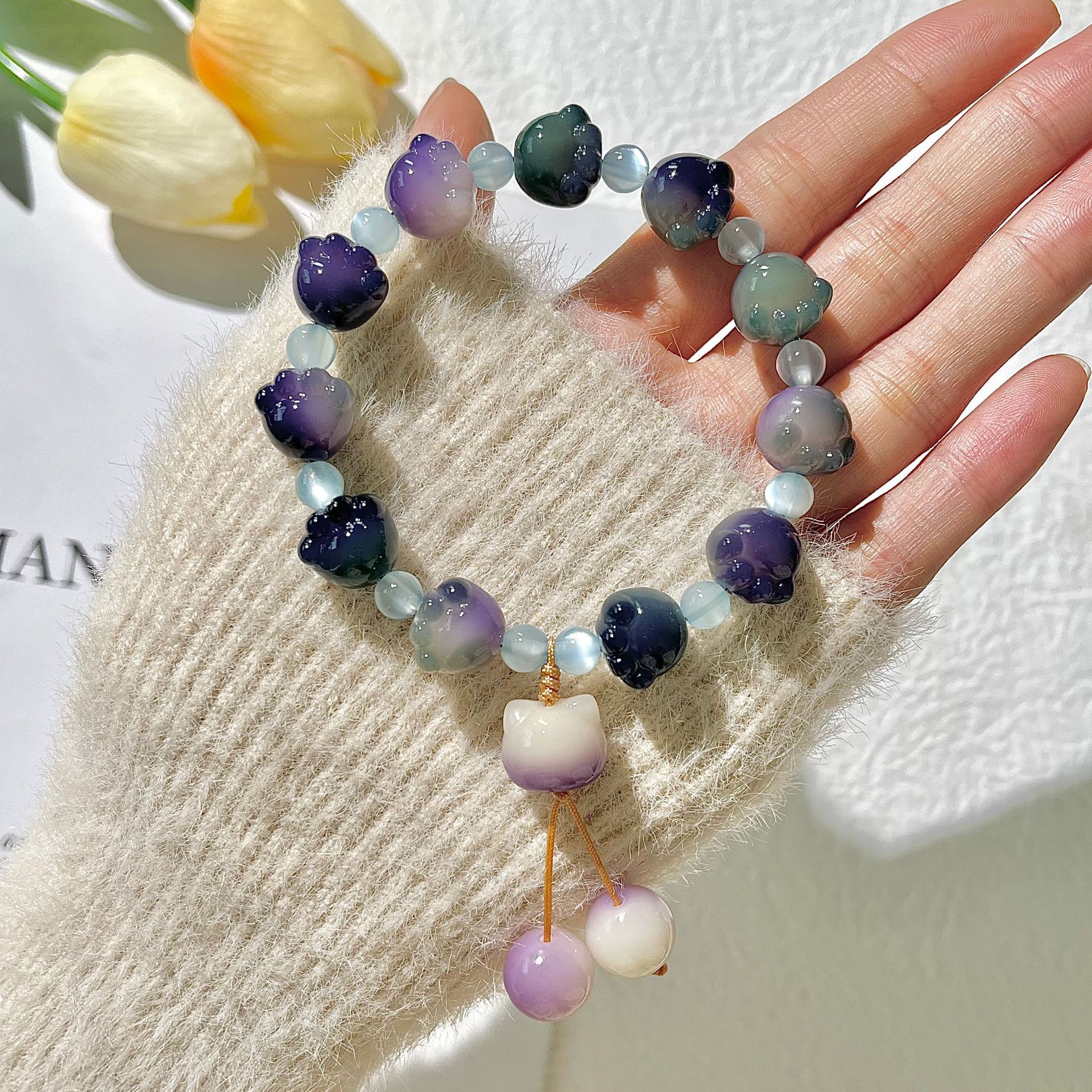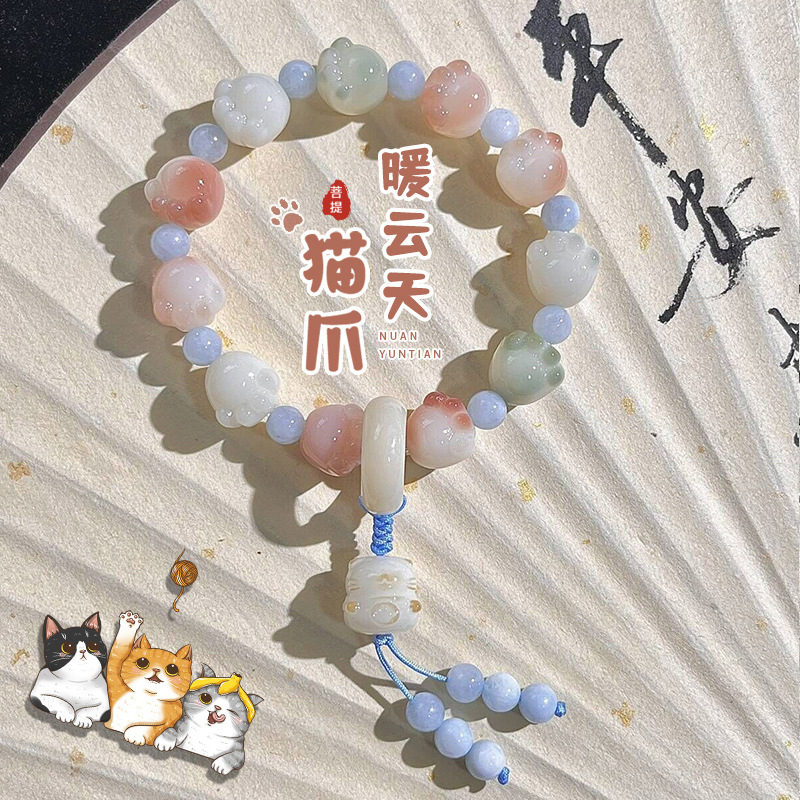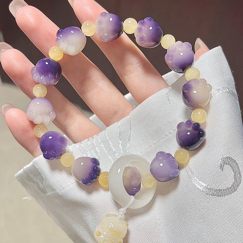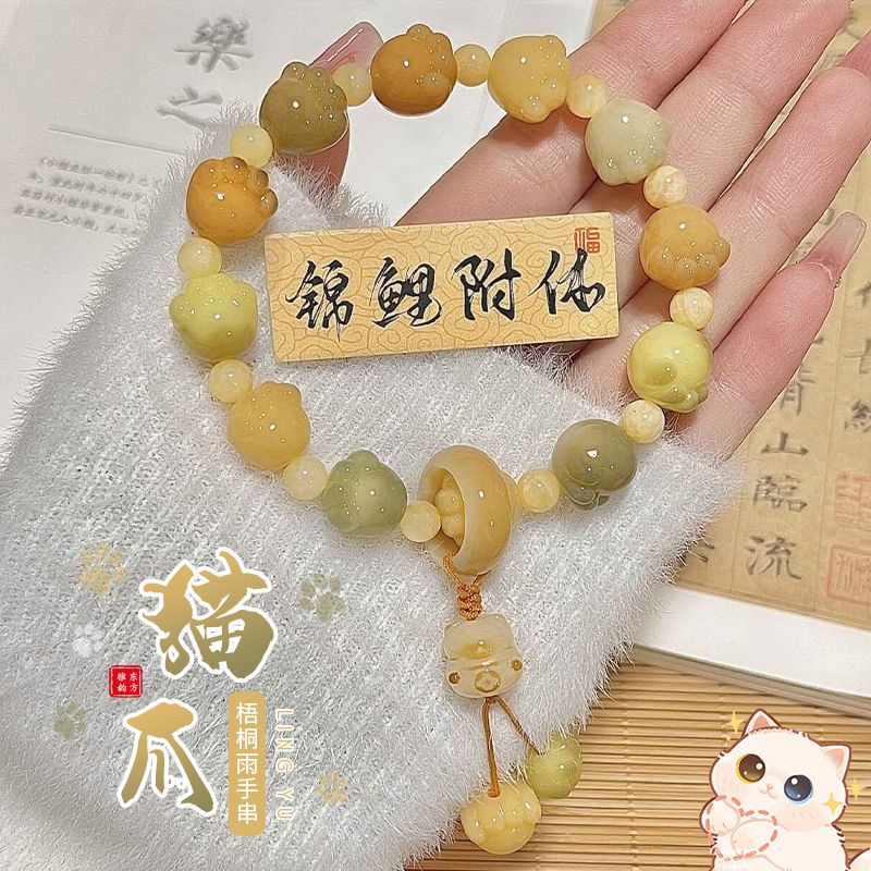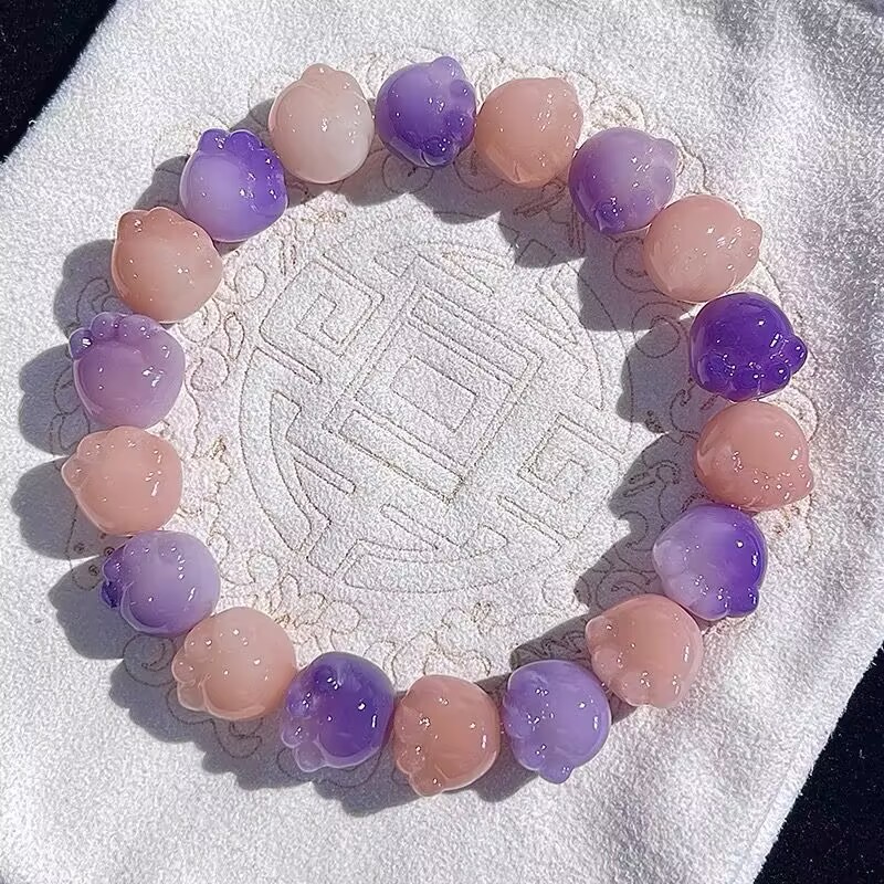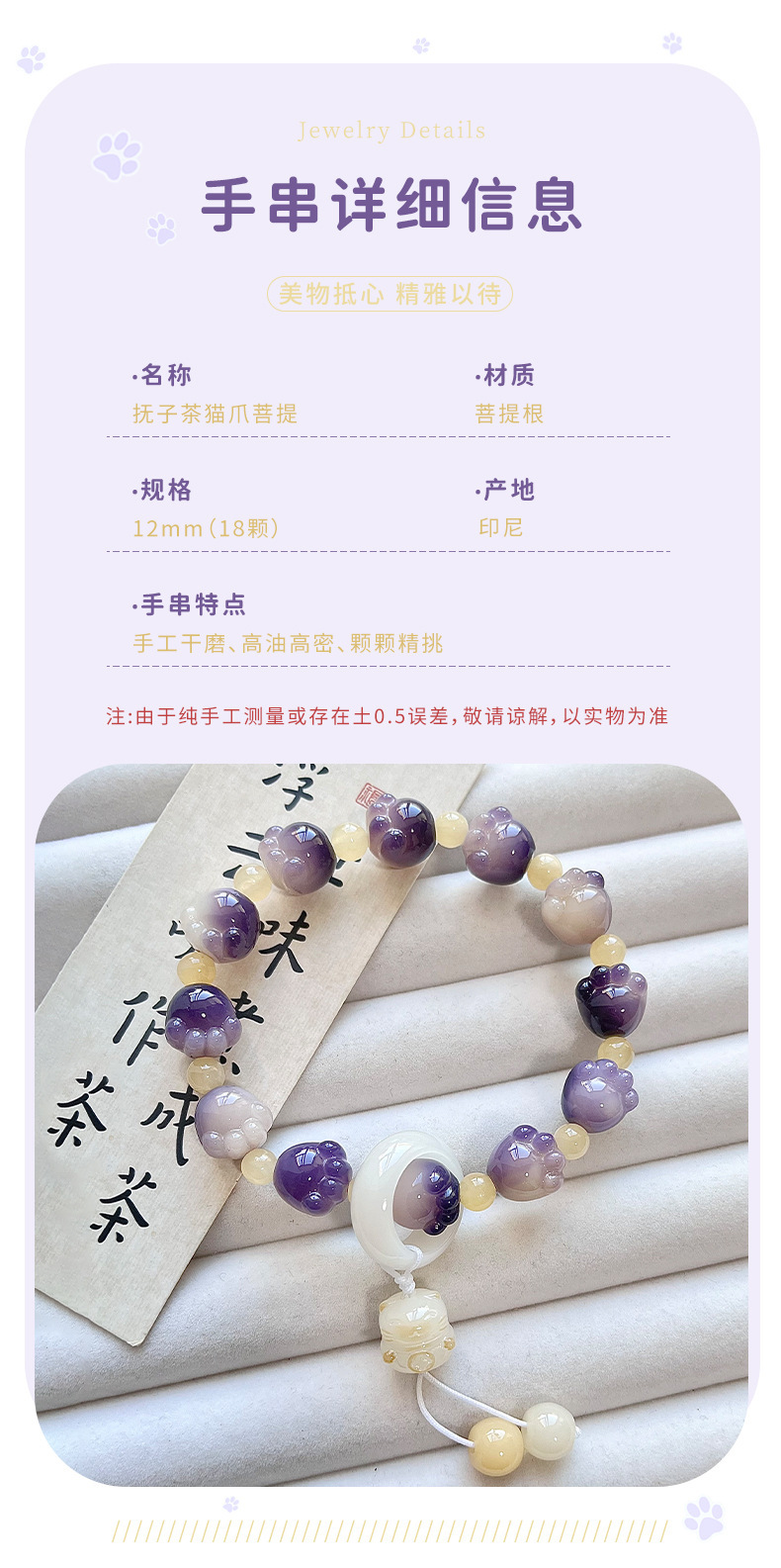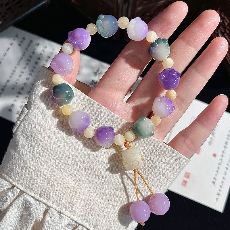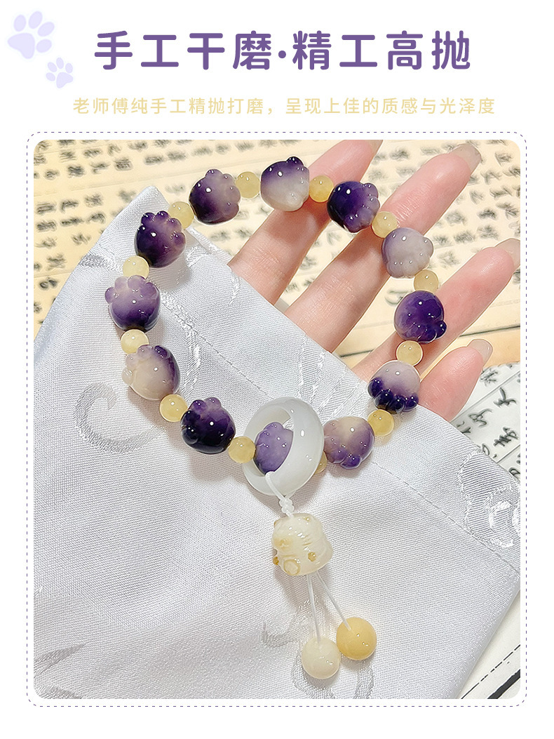 糯米紫雕刻菩提手串猫爪学生手链吊坠菩提子佛珠念珠盘玩手链批发