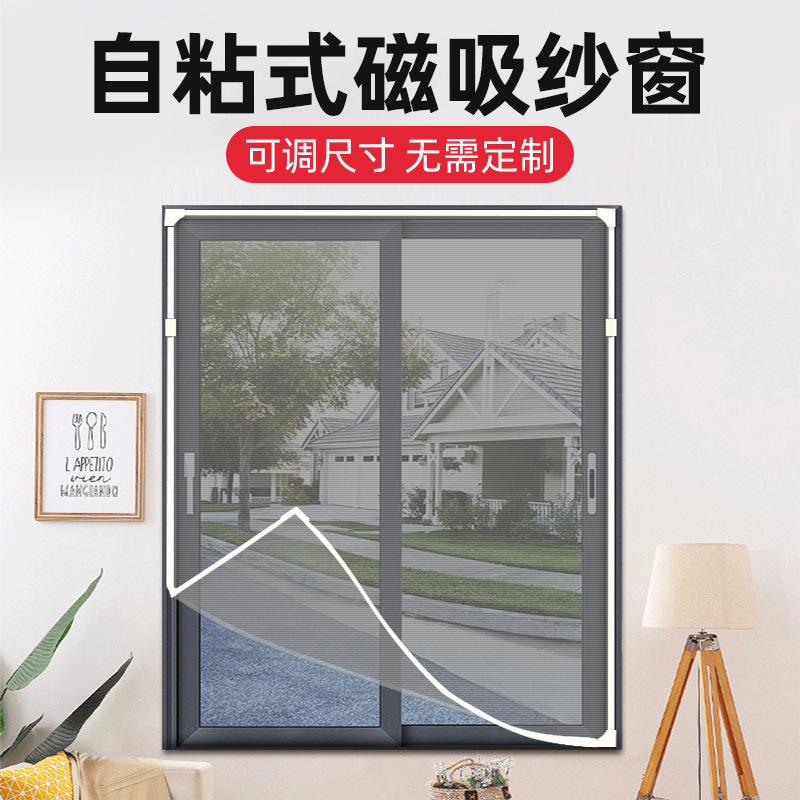 磁性隐形防蚊纱窗网自装家用可拆卸简易粘贴式磁铁纱帘窗户防护网