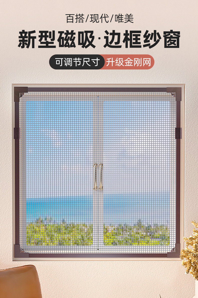 磁性隐形防蚊纱窗网自装家用可拆卸简易粘贴式磁铁纱帘窗户防护网
