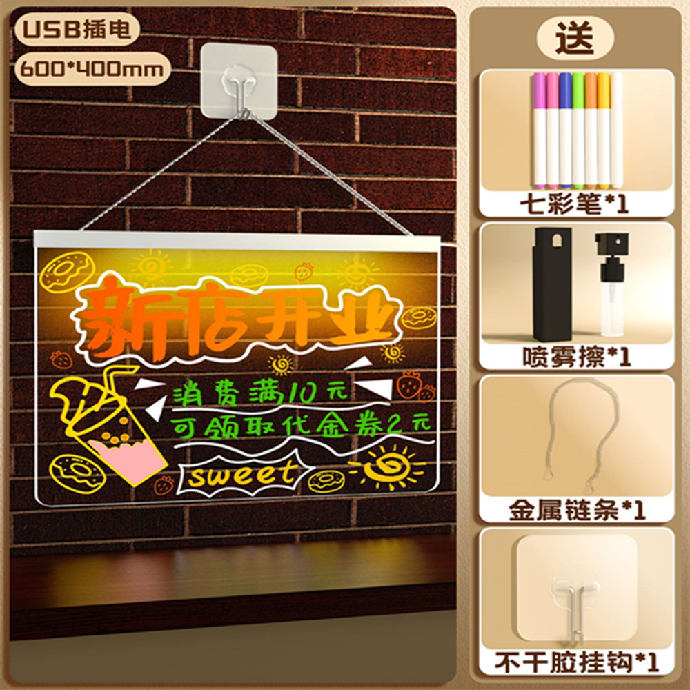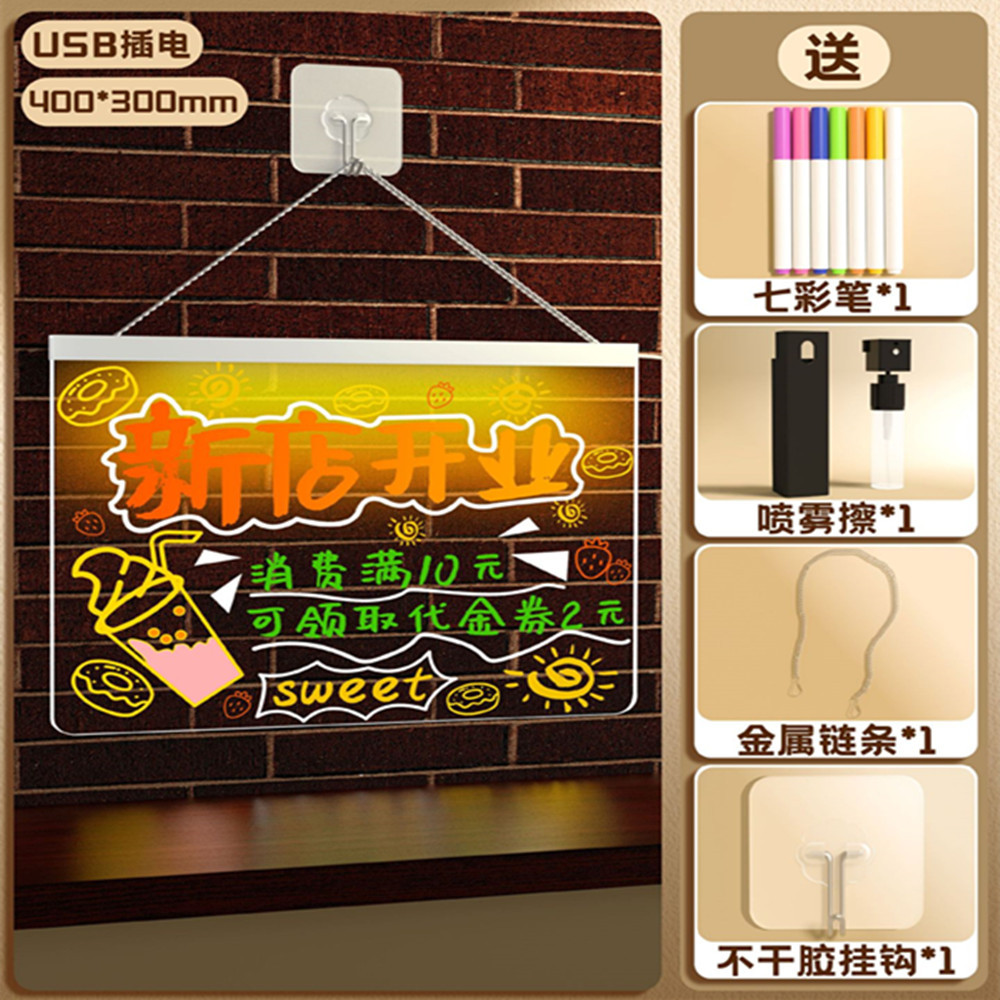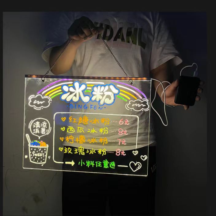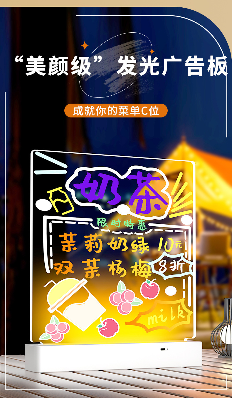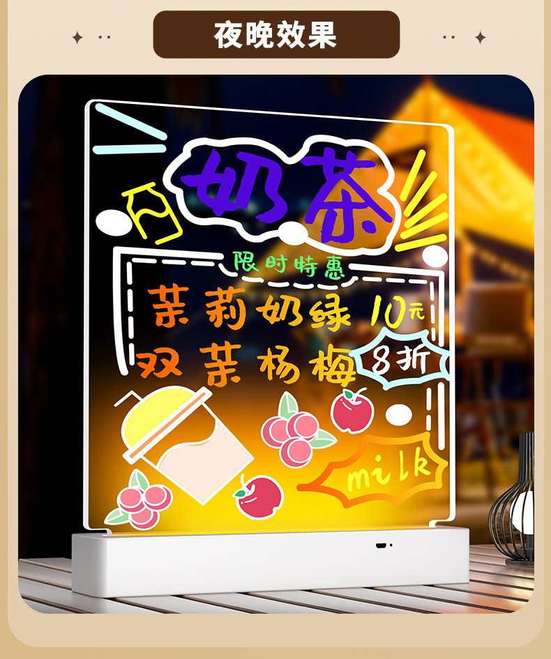 可擦写荧光板桌面充电发光透明亚克力带灯标志摆摊小黑板写价格板