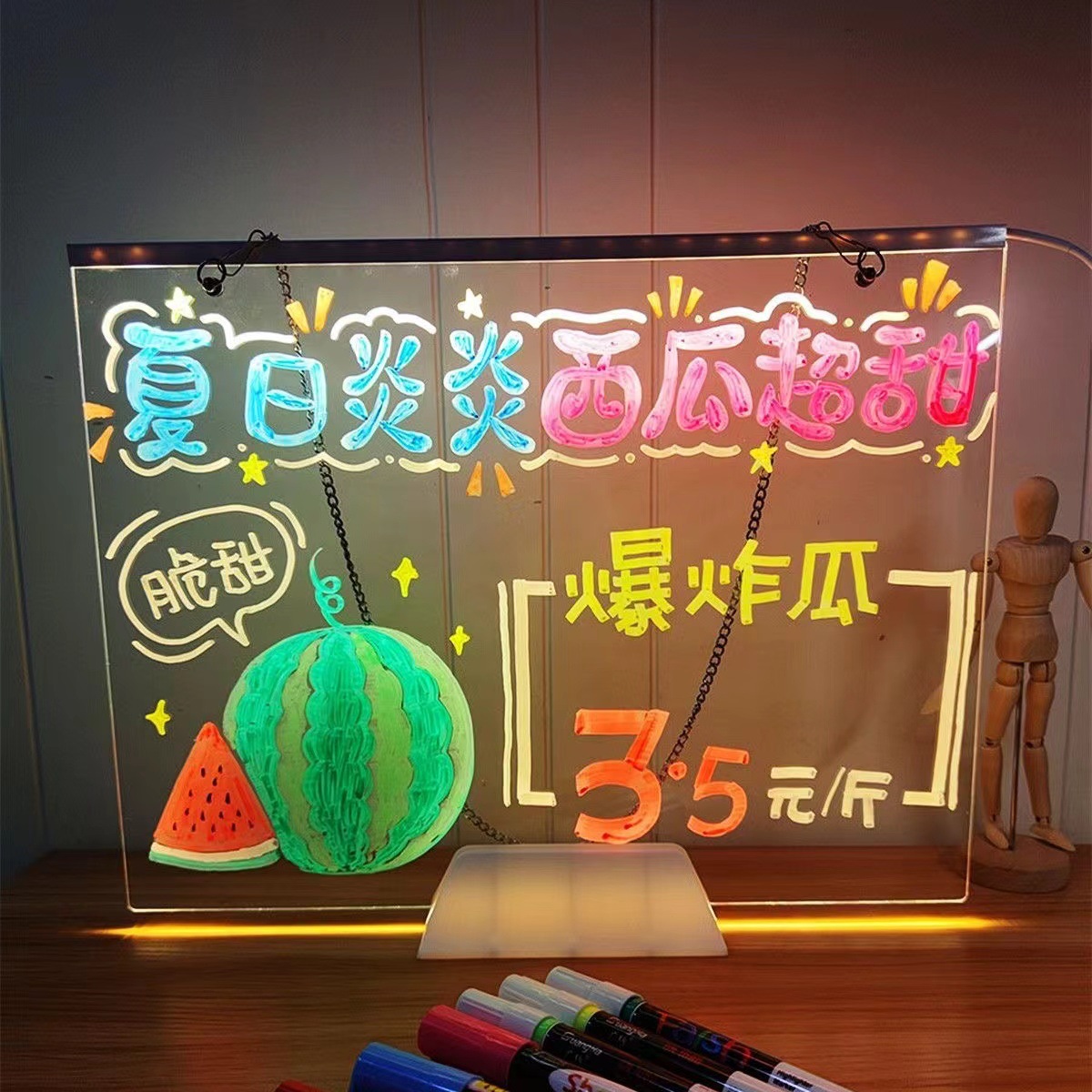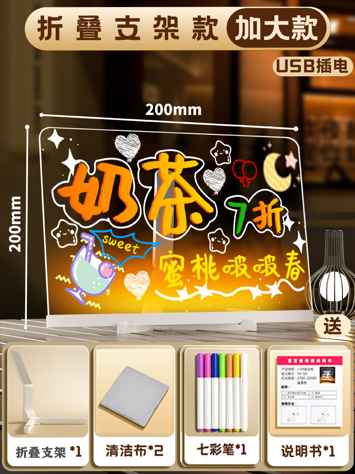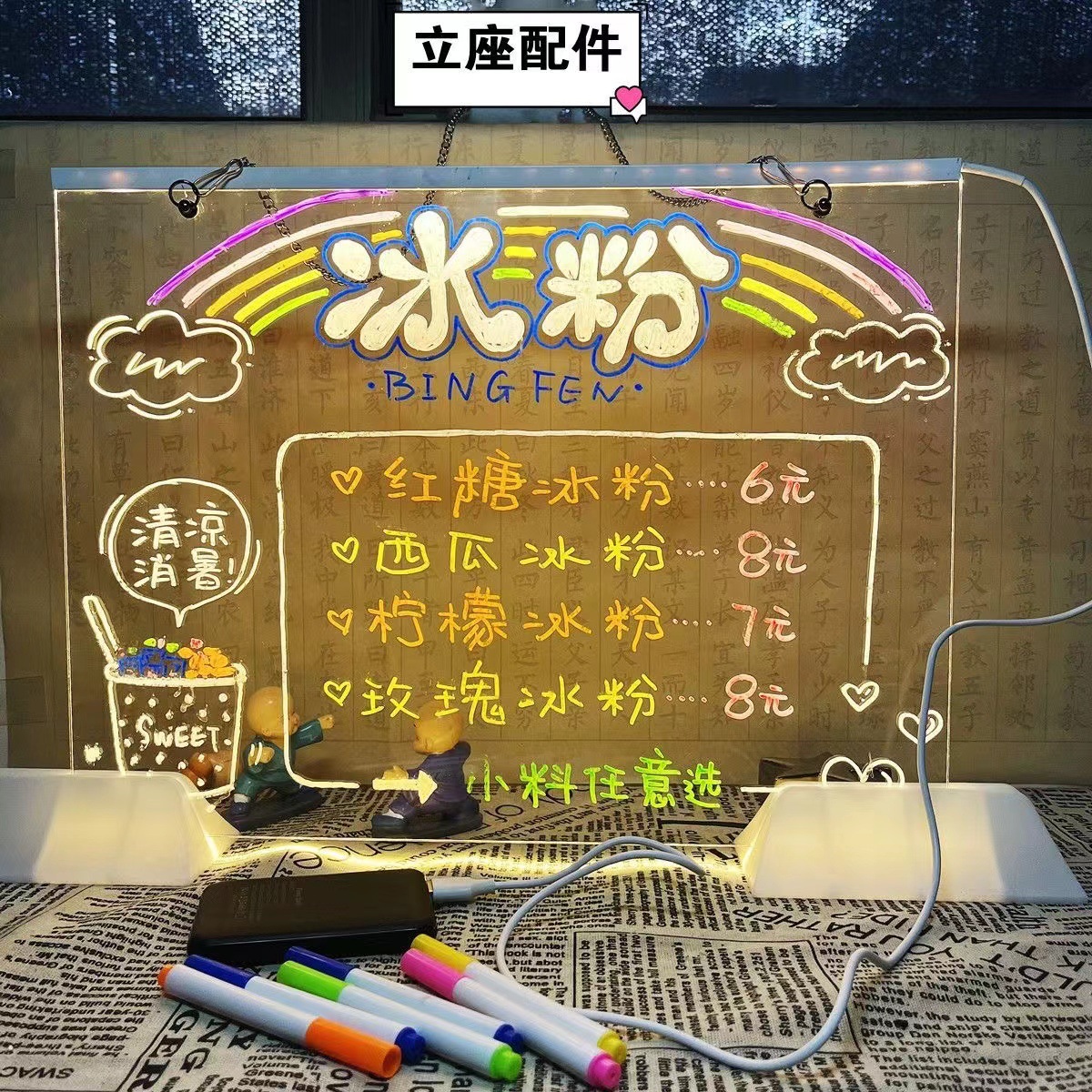 可擦写荧光板桌面充电发光透明亚克力带灯标志摆摊小黑板写价格板