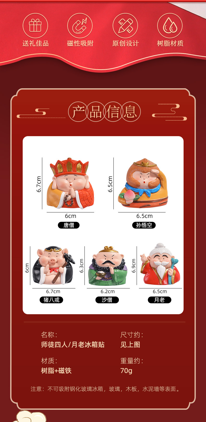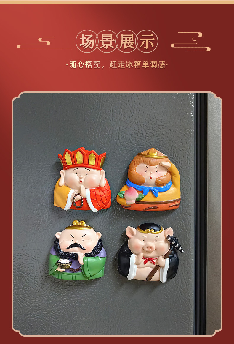 西游记创意冰箱贴3D立体国潮孙悟空唐僧猪八戒Q版摆件桌面小礼物