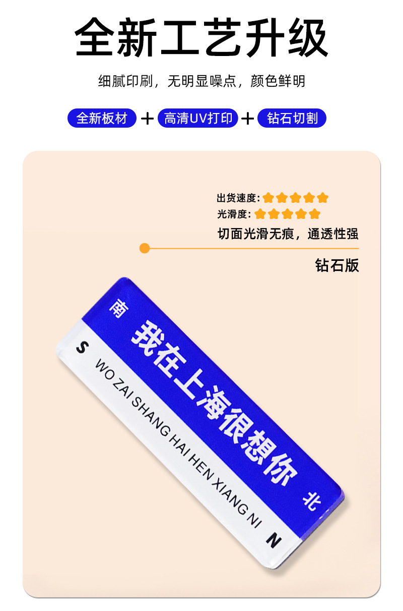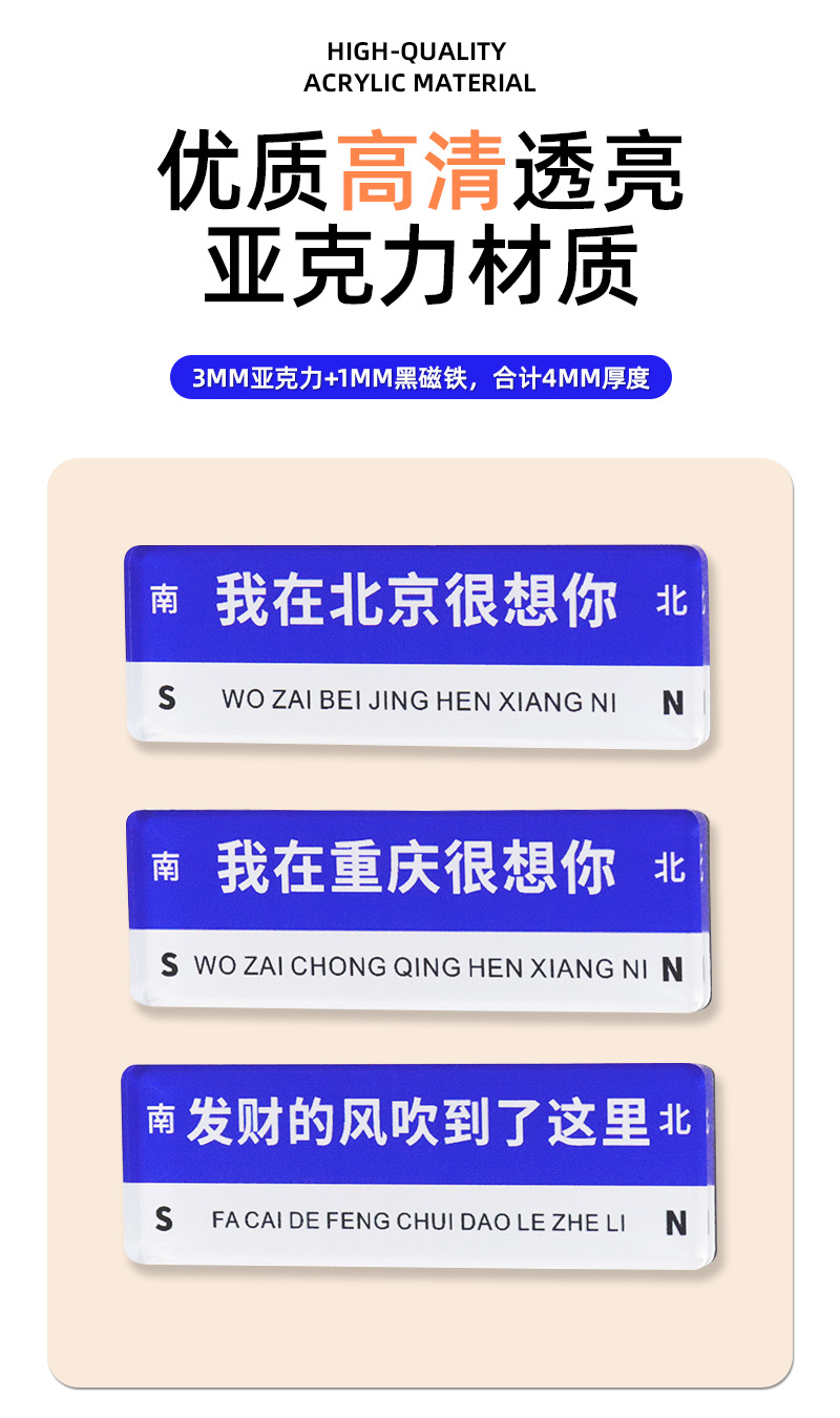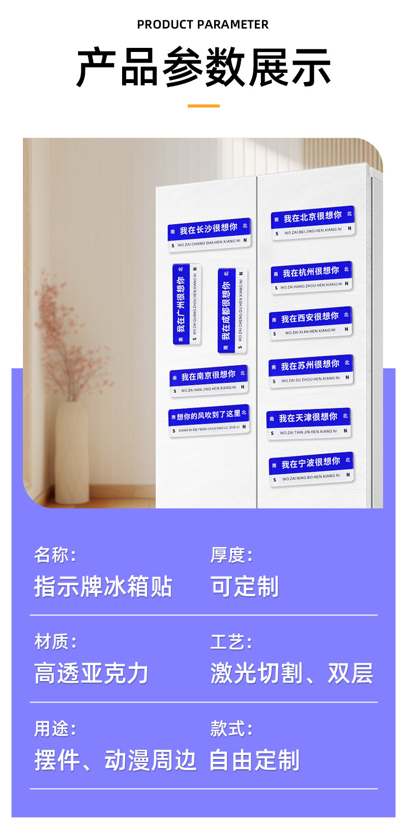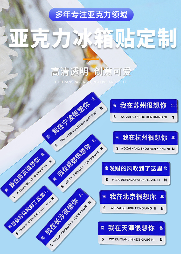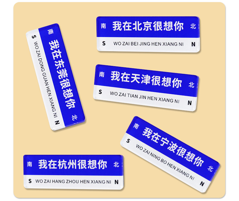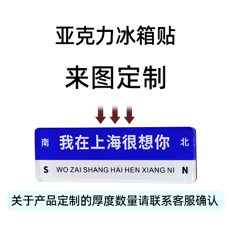 亚克力冰箱贴定制路牌冰箱贴很想你路牌冰箱贴磁力贴吸城市冰箱贴