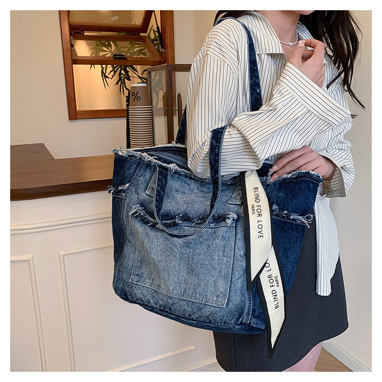 小众高级感牛仔布托特包女2025新款大容量通勤单肩手提包2025新款