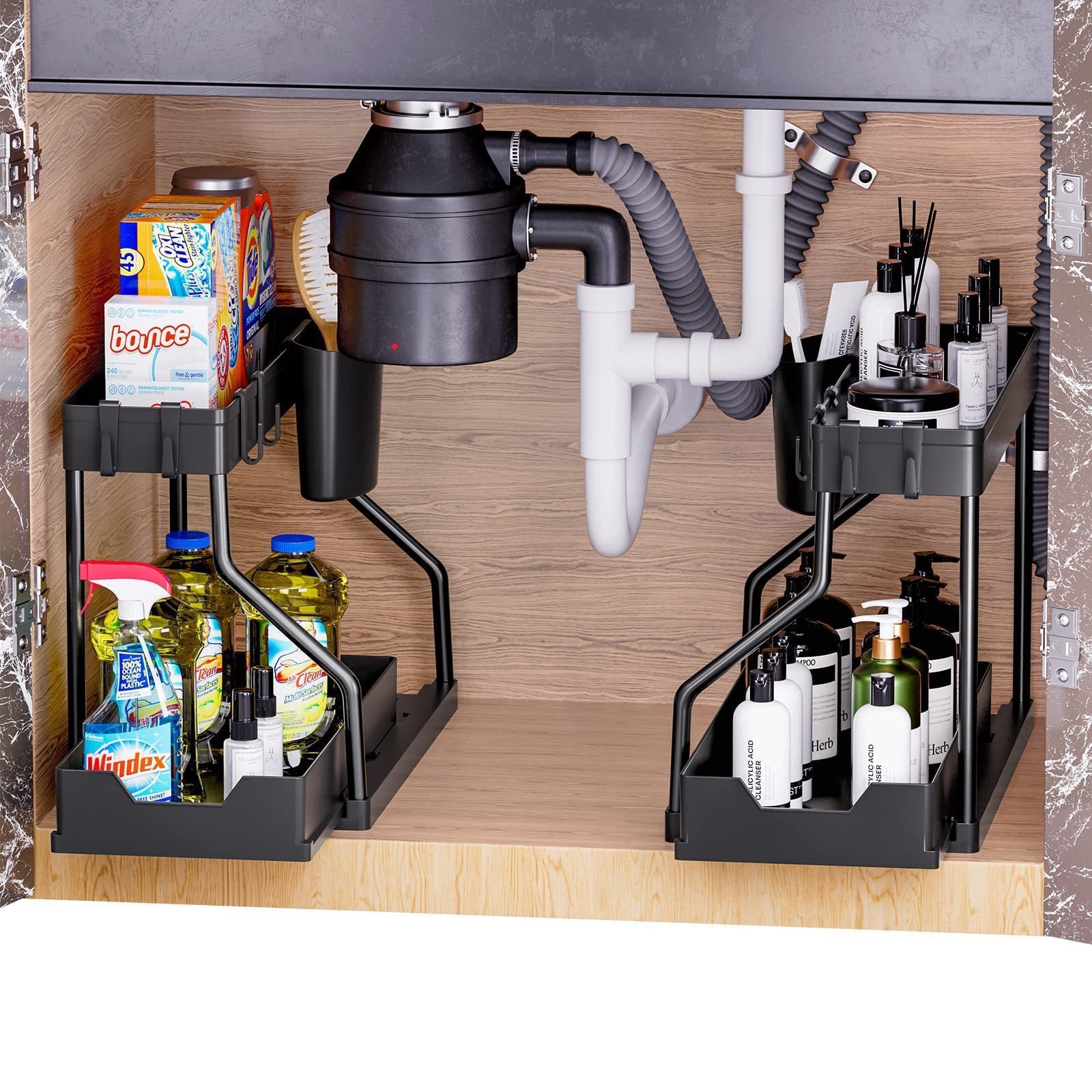 新款杂物架厨房浴室下水R型置物架双层收纳盒型滑动存储架