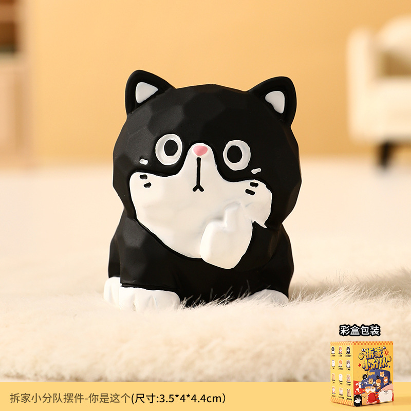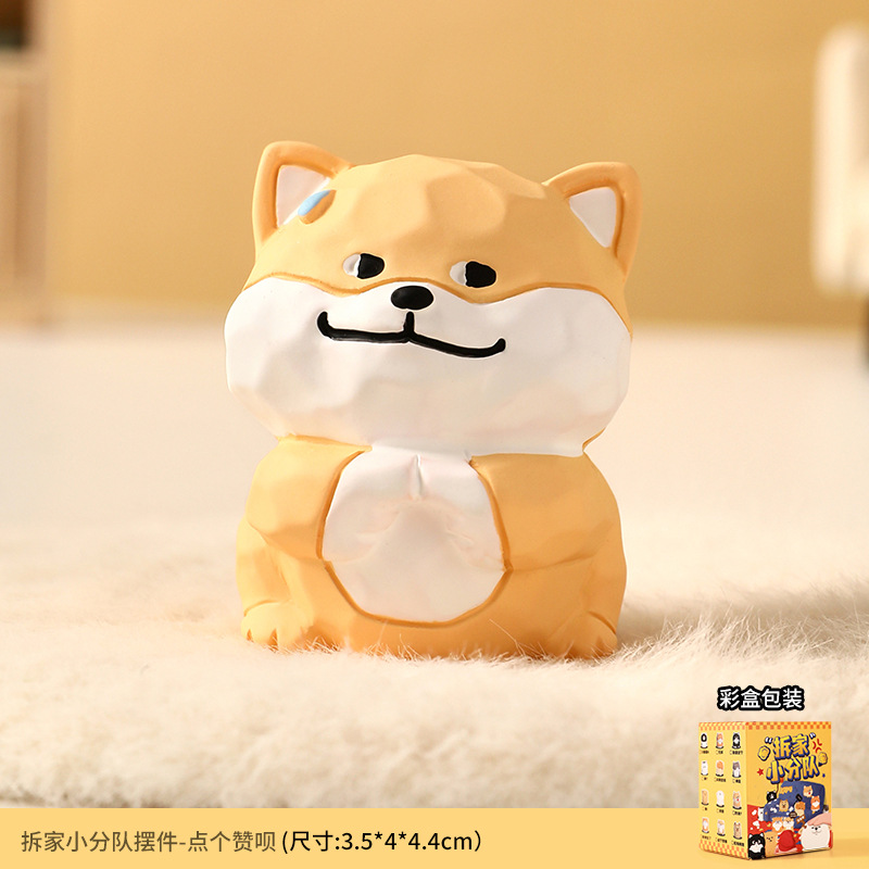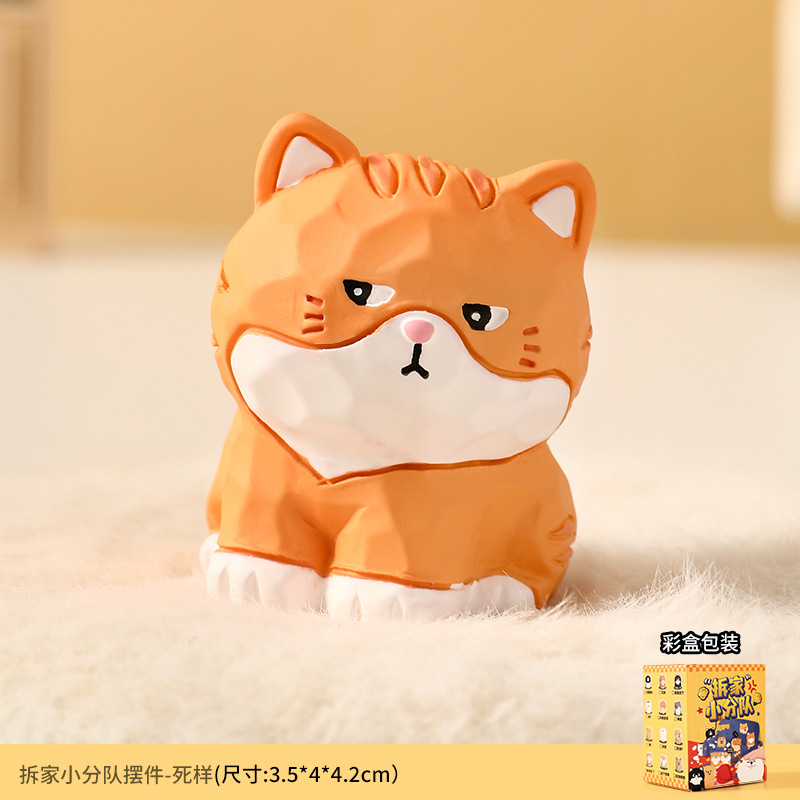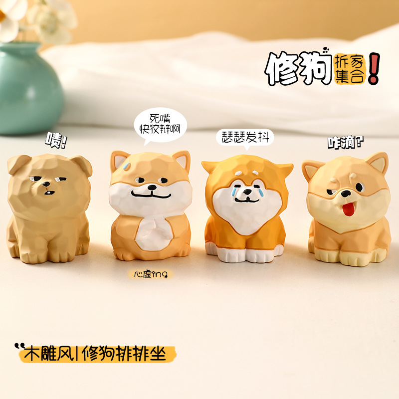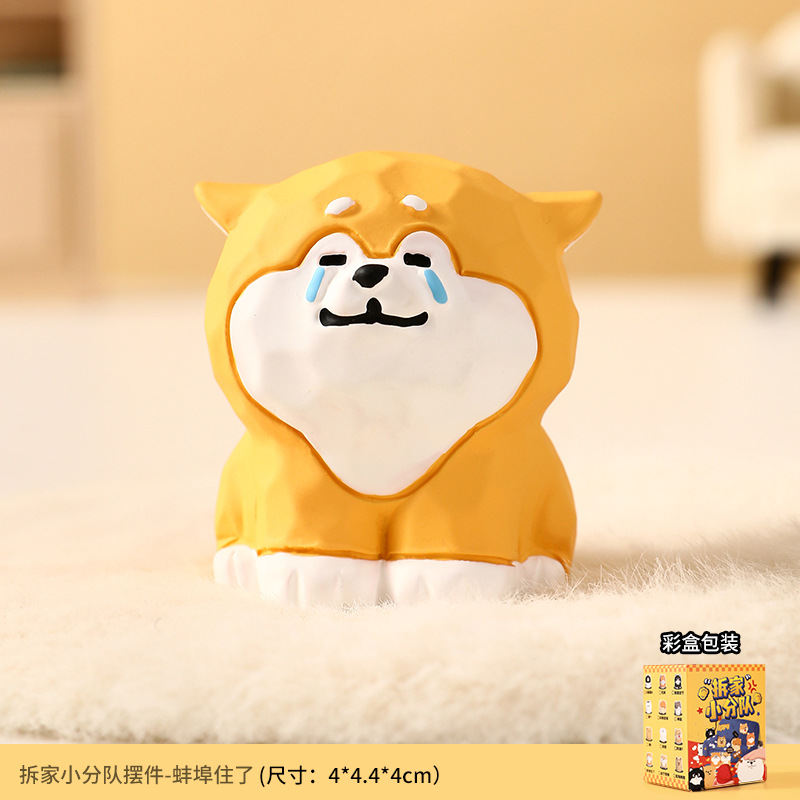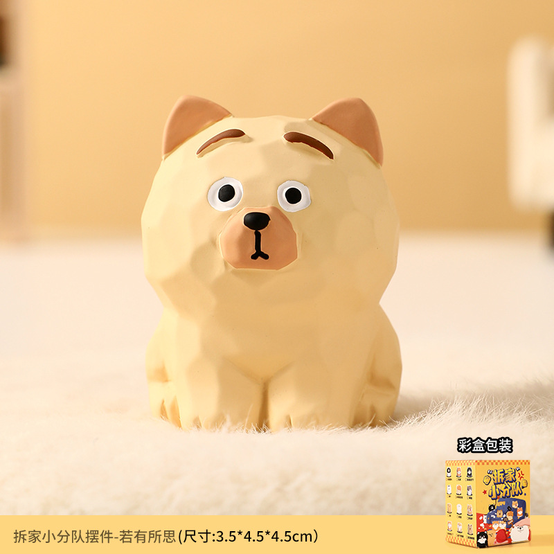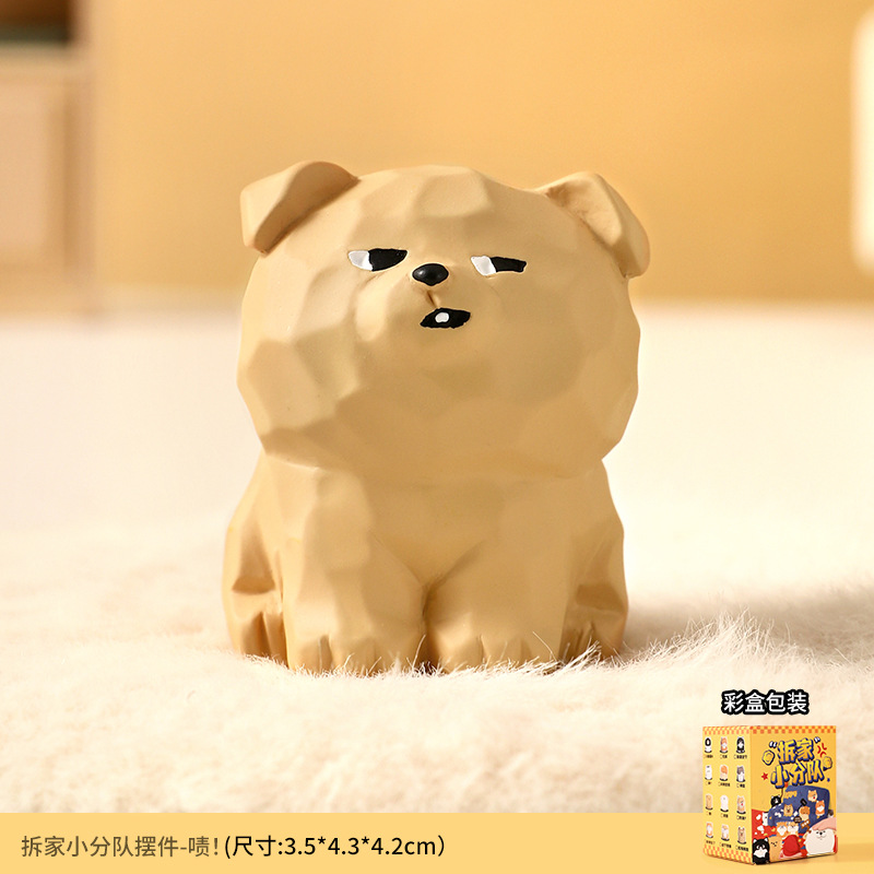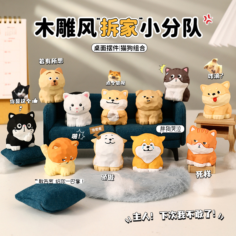 原创木雕风拆家小队可爱摆件高级感小众树脂工艺品创意桌面装饰品