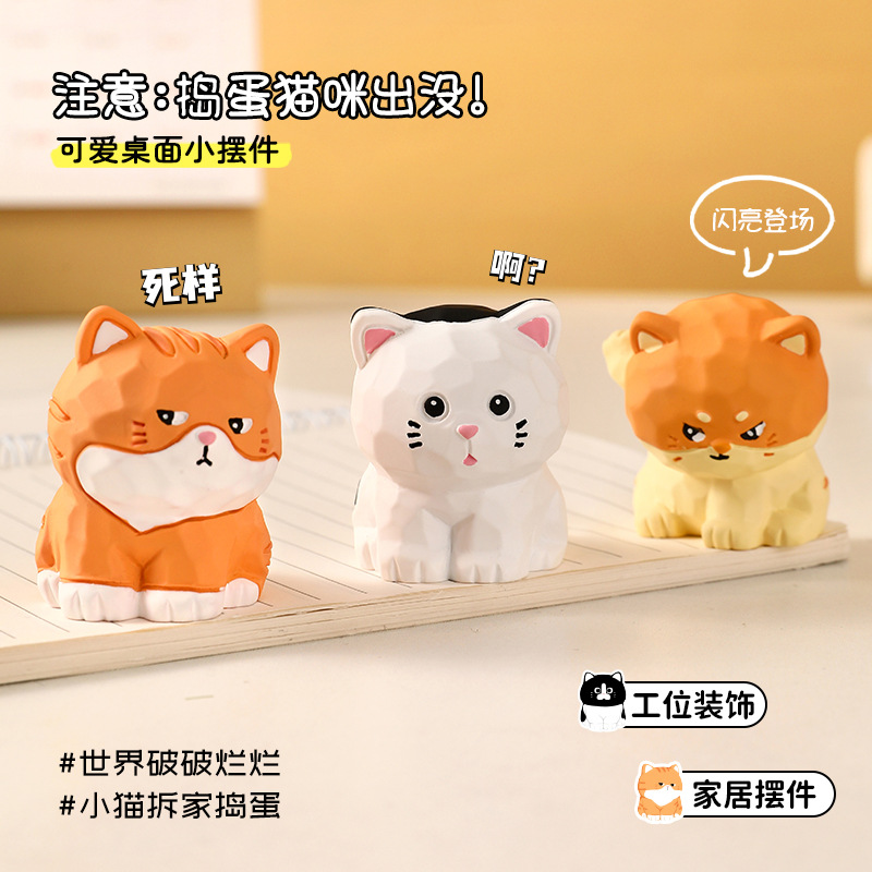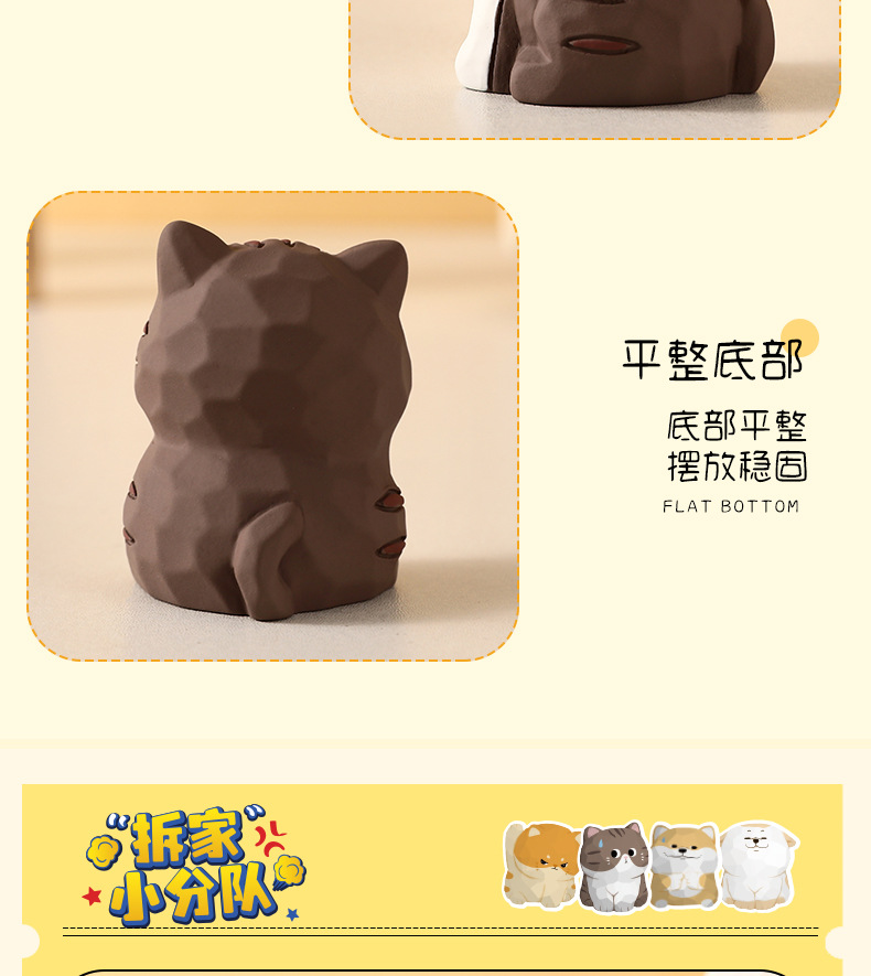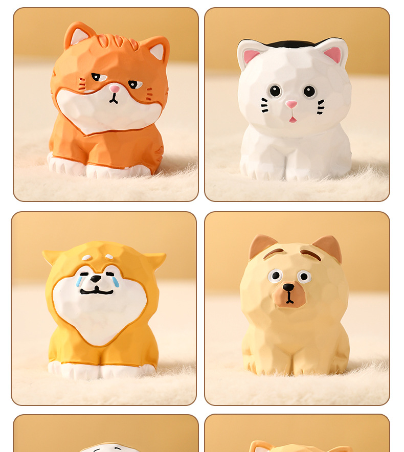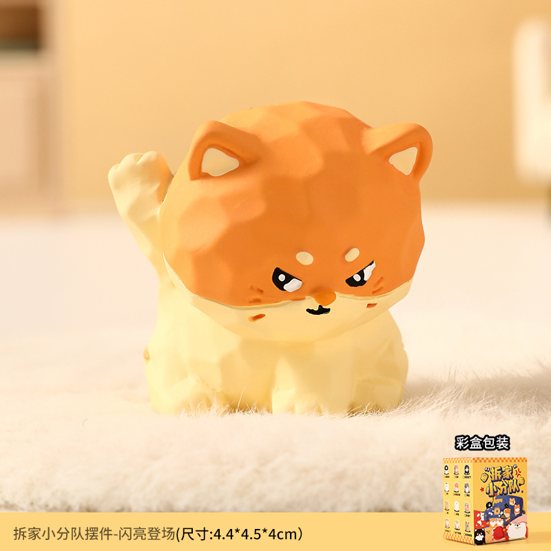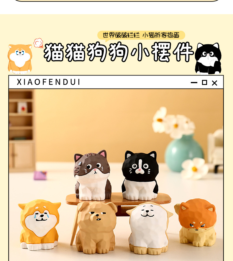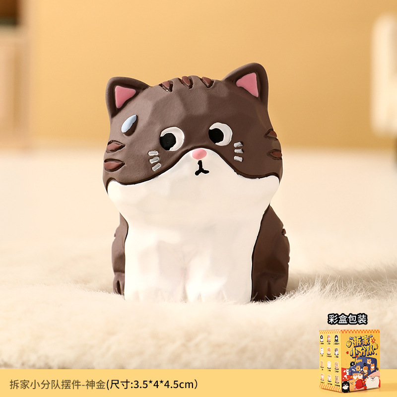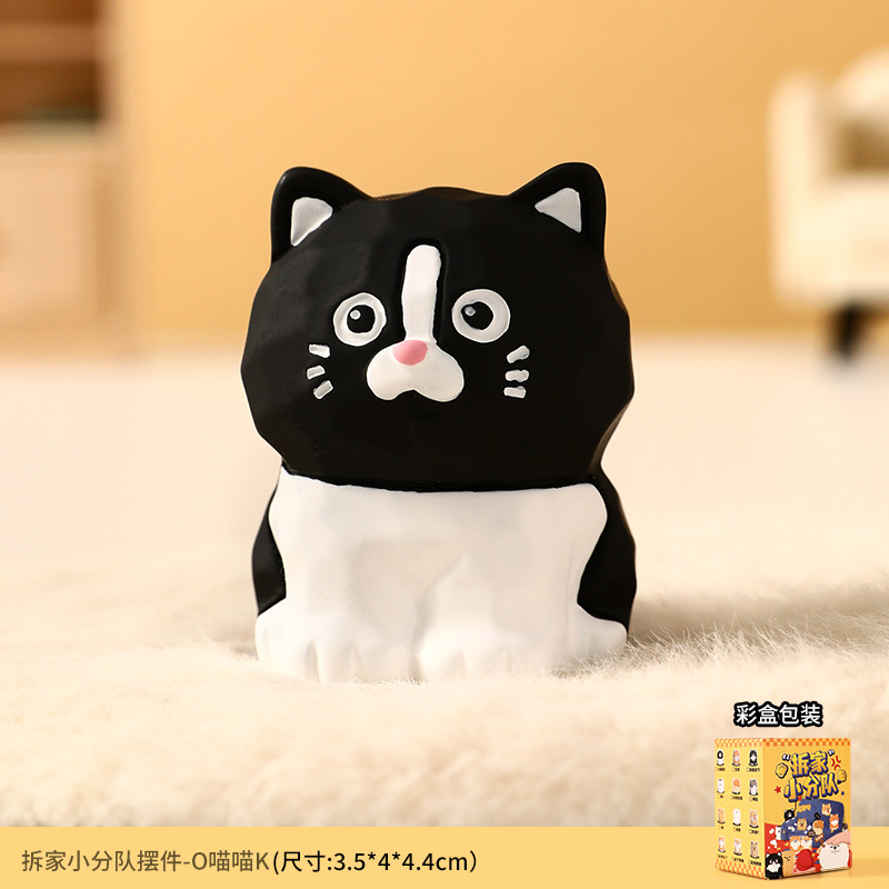 原创木雕风拆家小队可爱摆件高级感小众树脂工艺品创意桌面装饰品