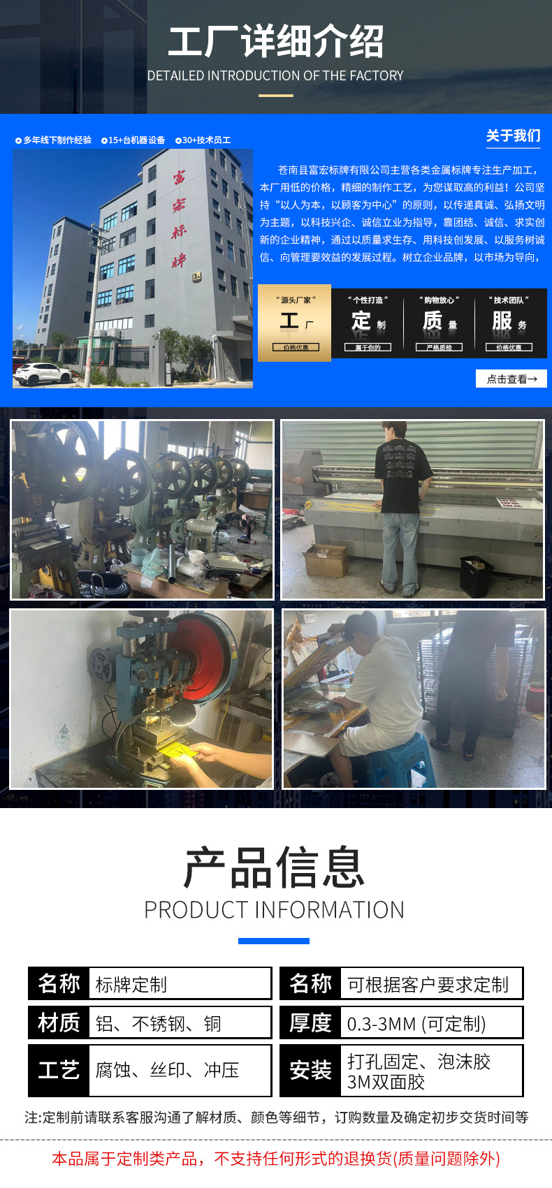 金属标牌定制 腐蚀丝印机械设备铝牌定做不锈钢标识铭牌可印logo