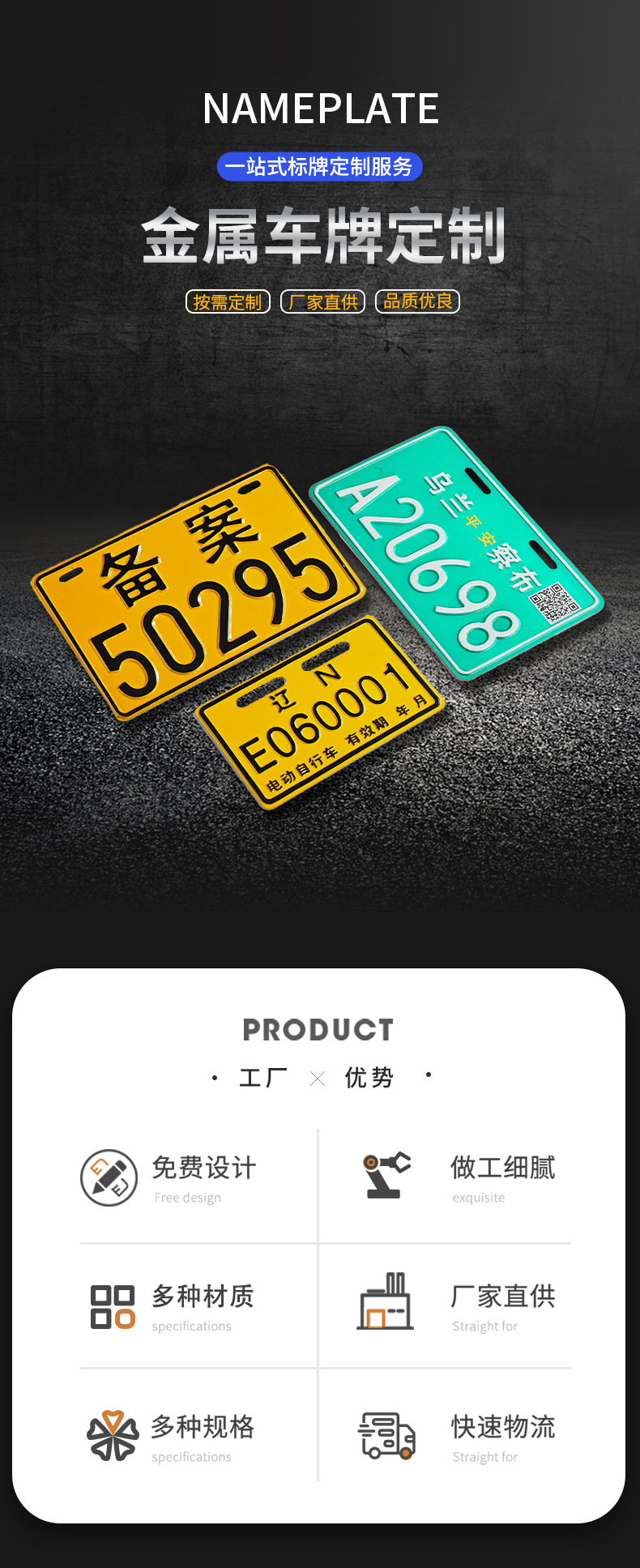 金属铭牌定制不锈钢标牌定做时尚汽车车牌订制logo小商标电动车牌