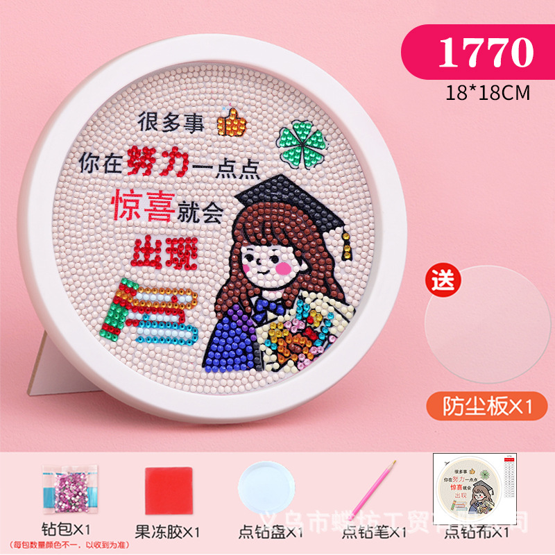 带框励志钻石画批发儿童diy手工材料包钻石贴画学生礼物相框摆件