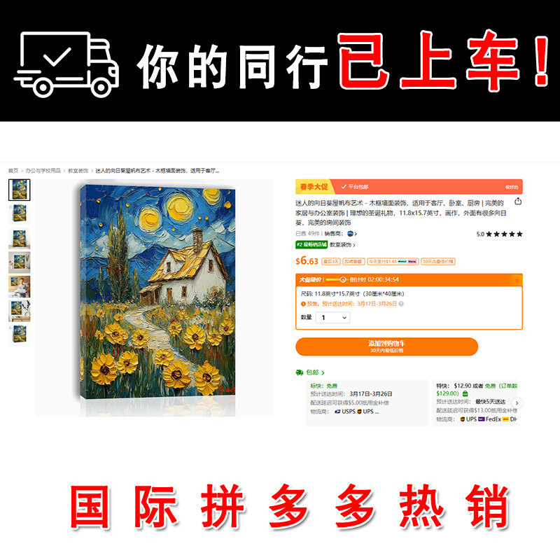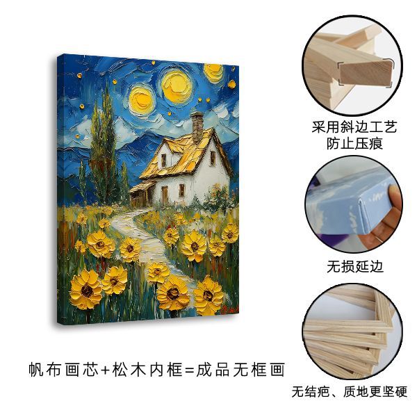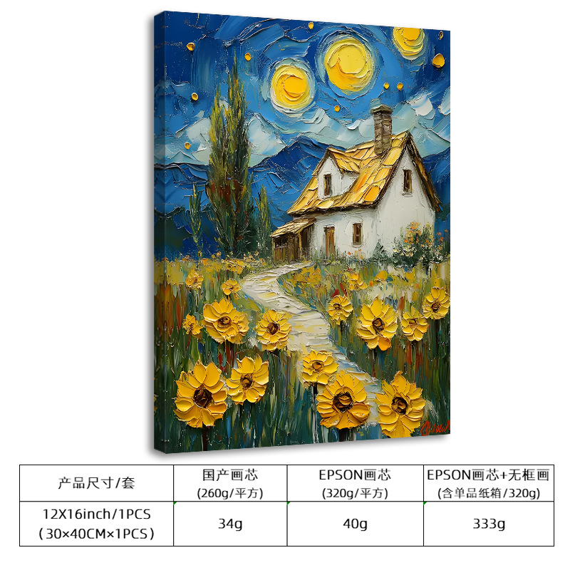 跨境热销水彩向日葵儿童卧室挂画帆布喷绘涂鸦艺术现代教室装饰画