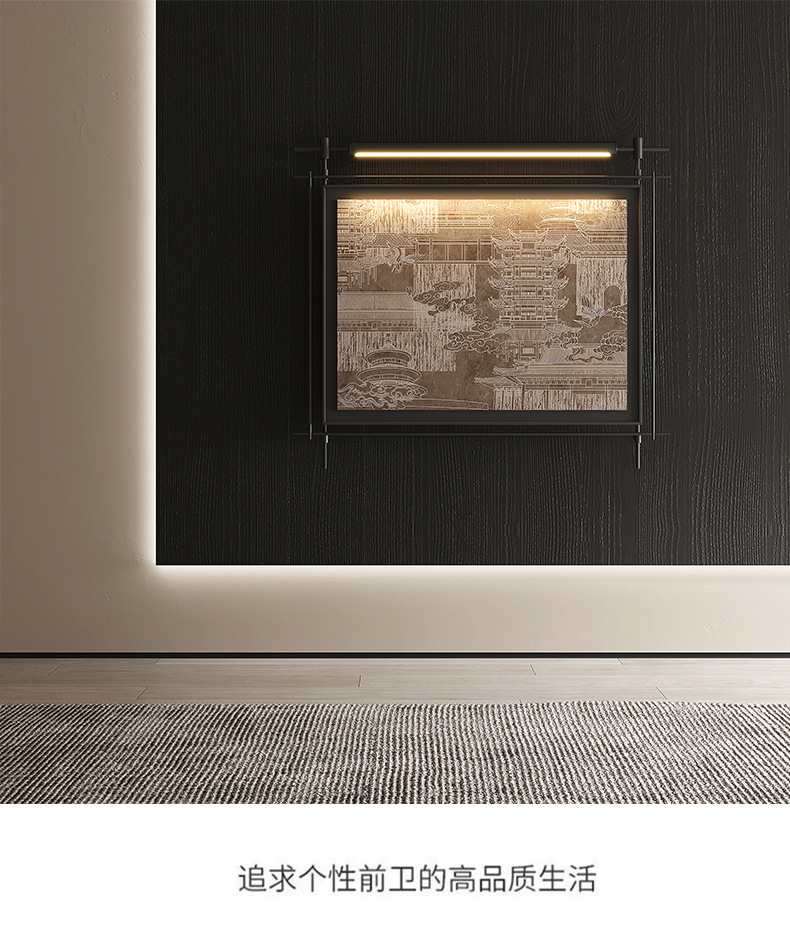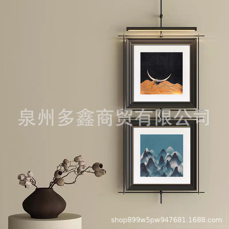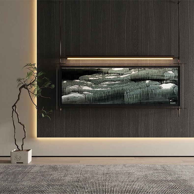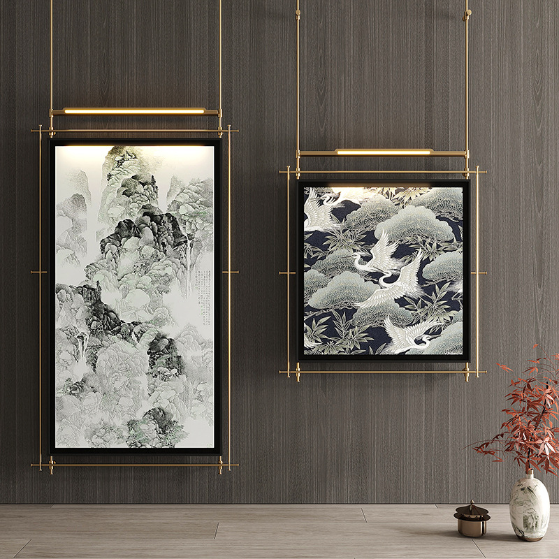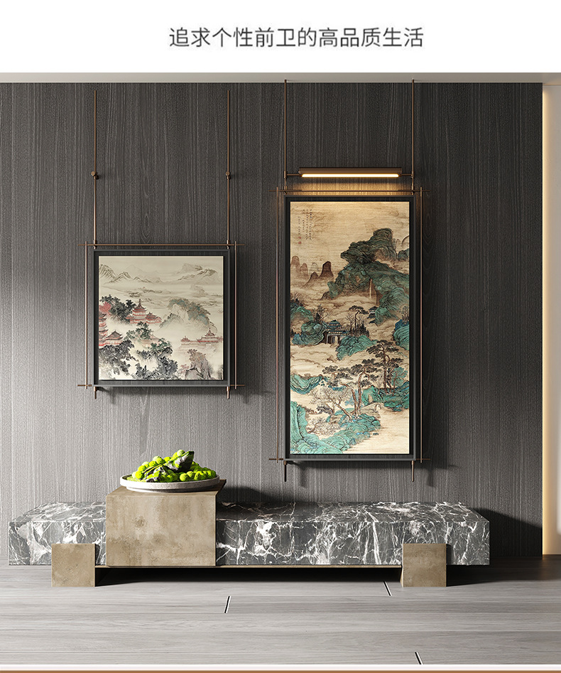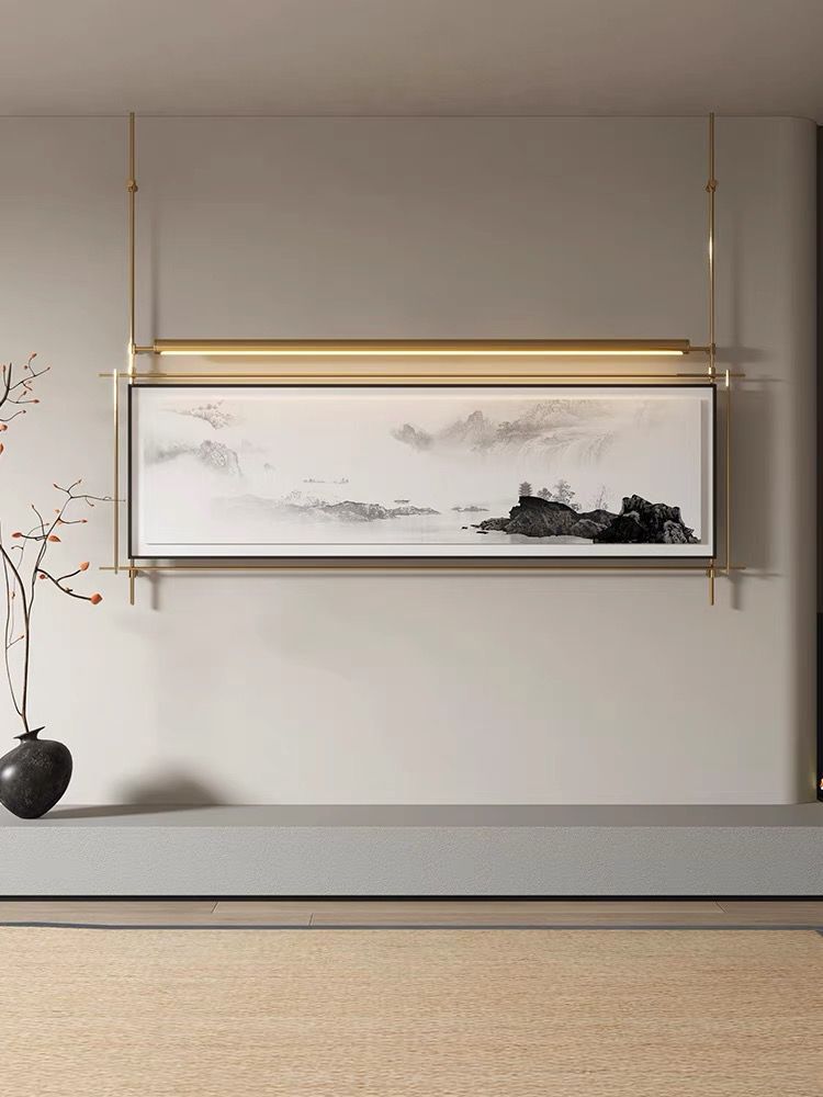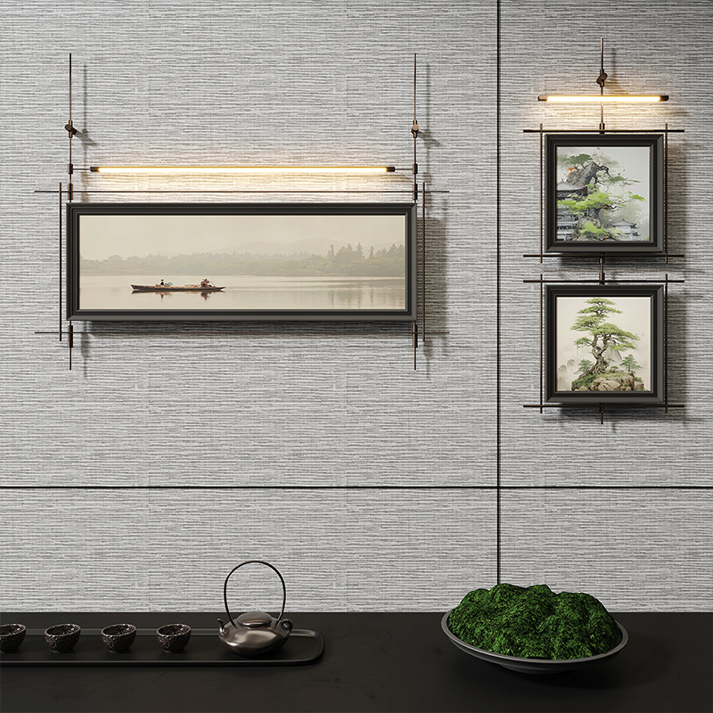 轻奢客厅装饰画仛寂风新款山水壁画沙发背景墙挂画高级感壁灯发光