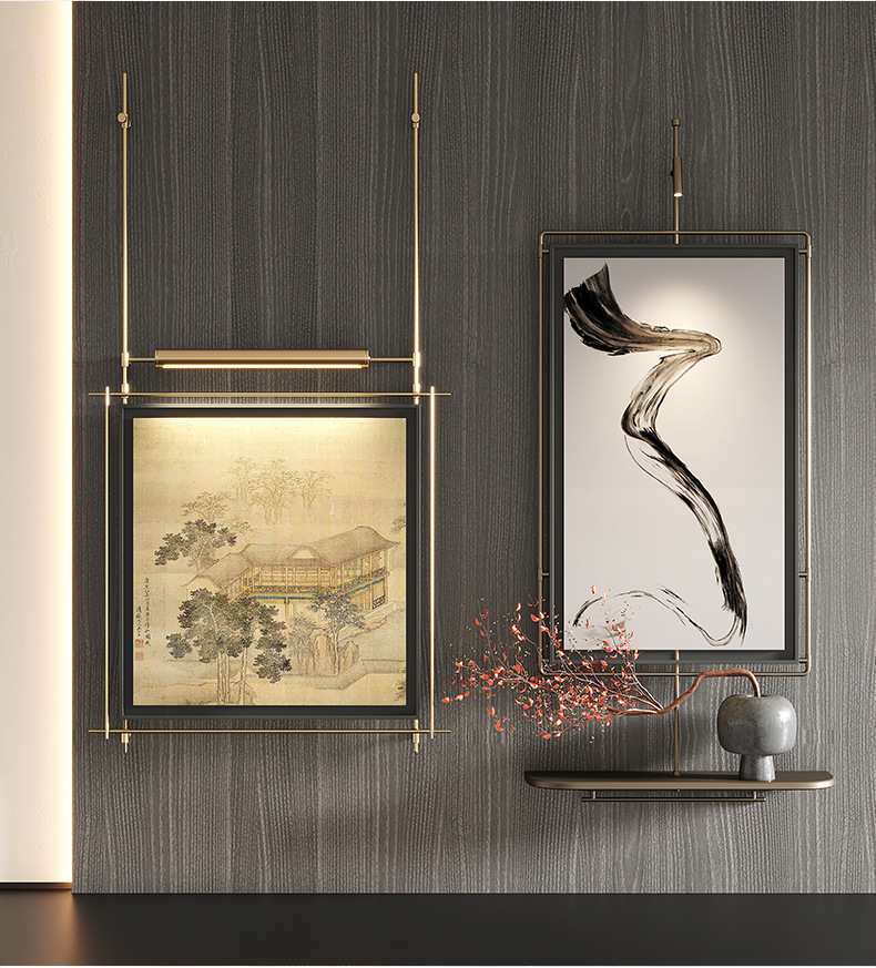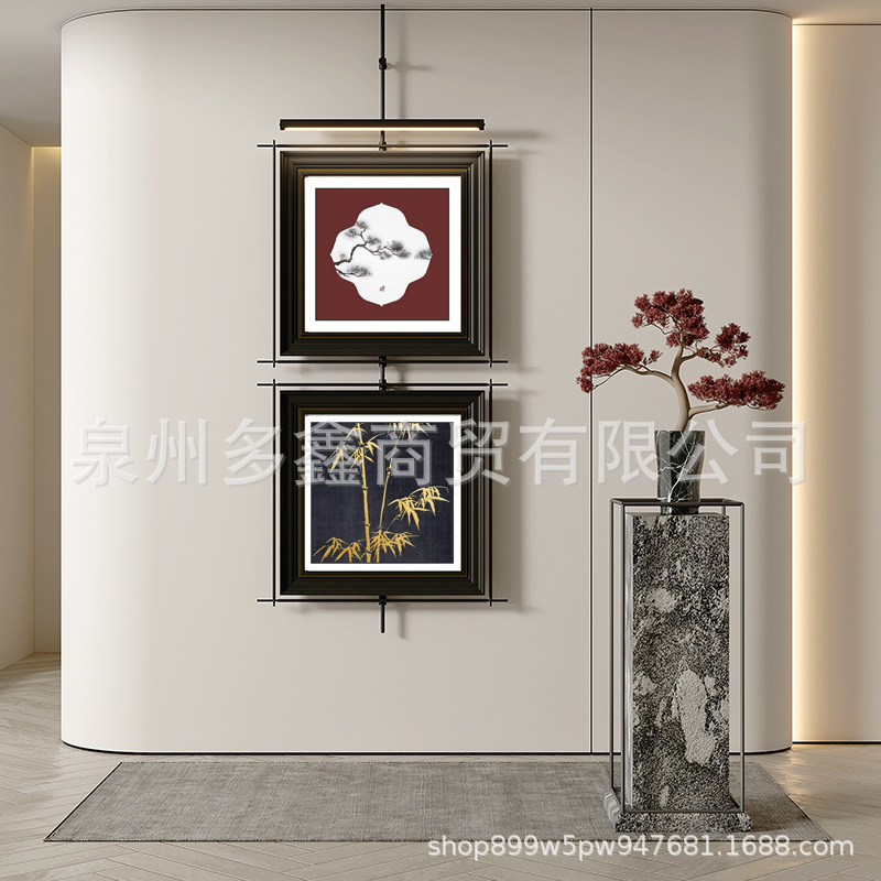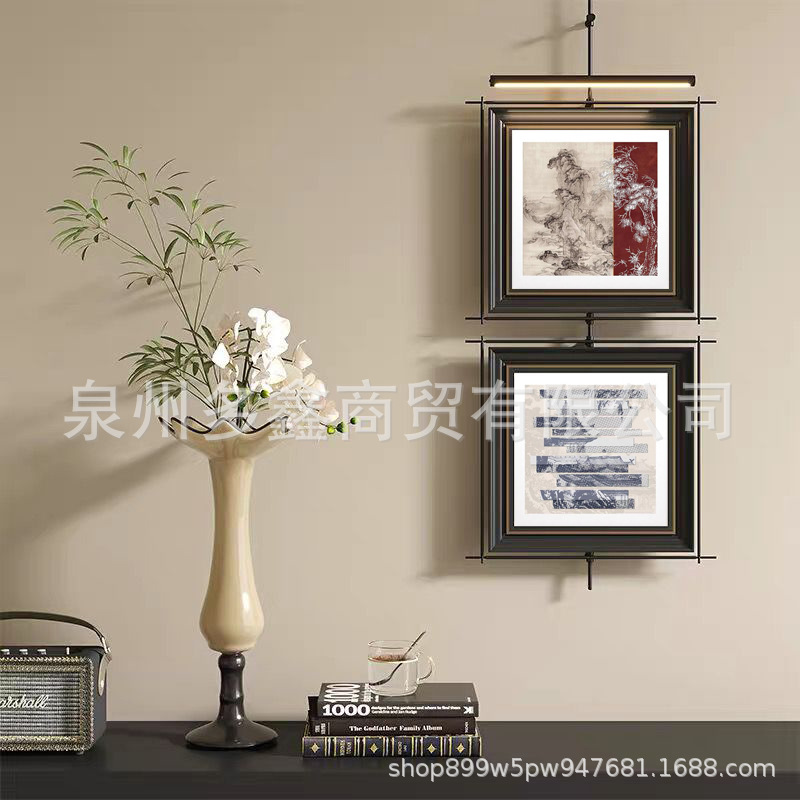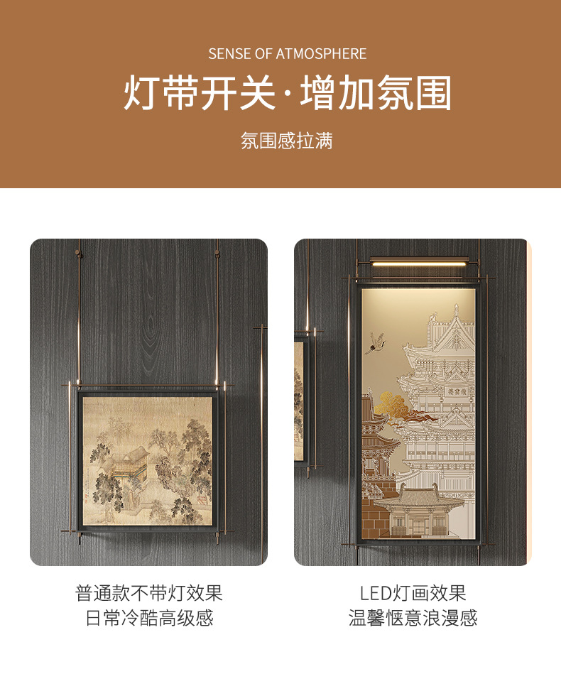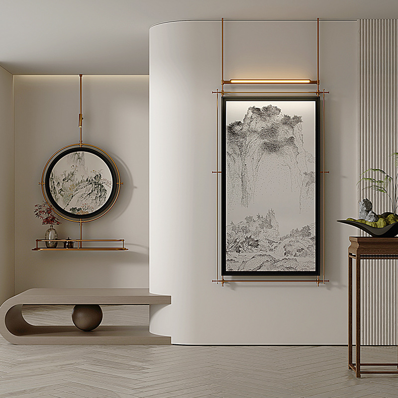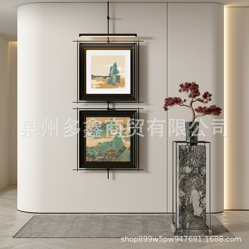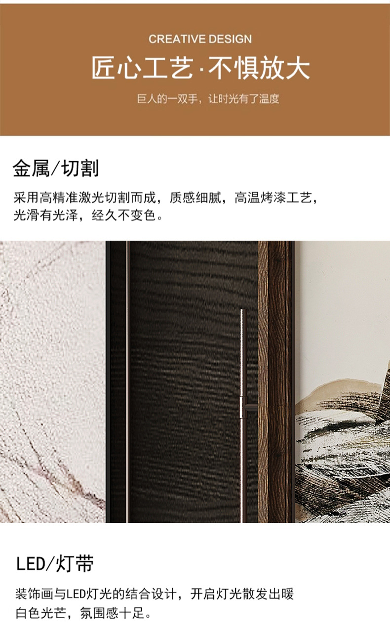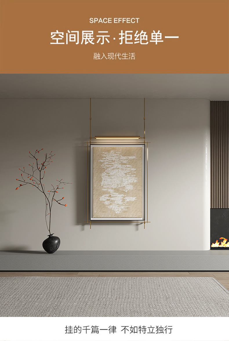 轻奢客厅装饰画仛寂风新款山水壁画沙发背景墙挂画高级感壁灯发光