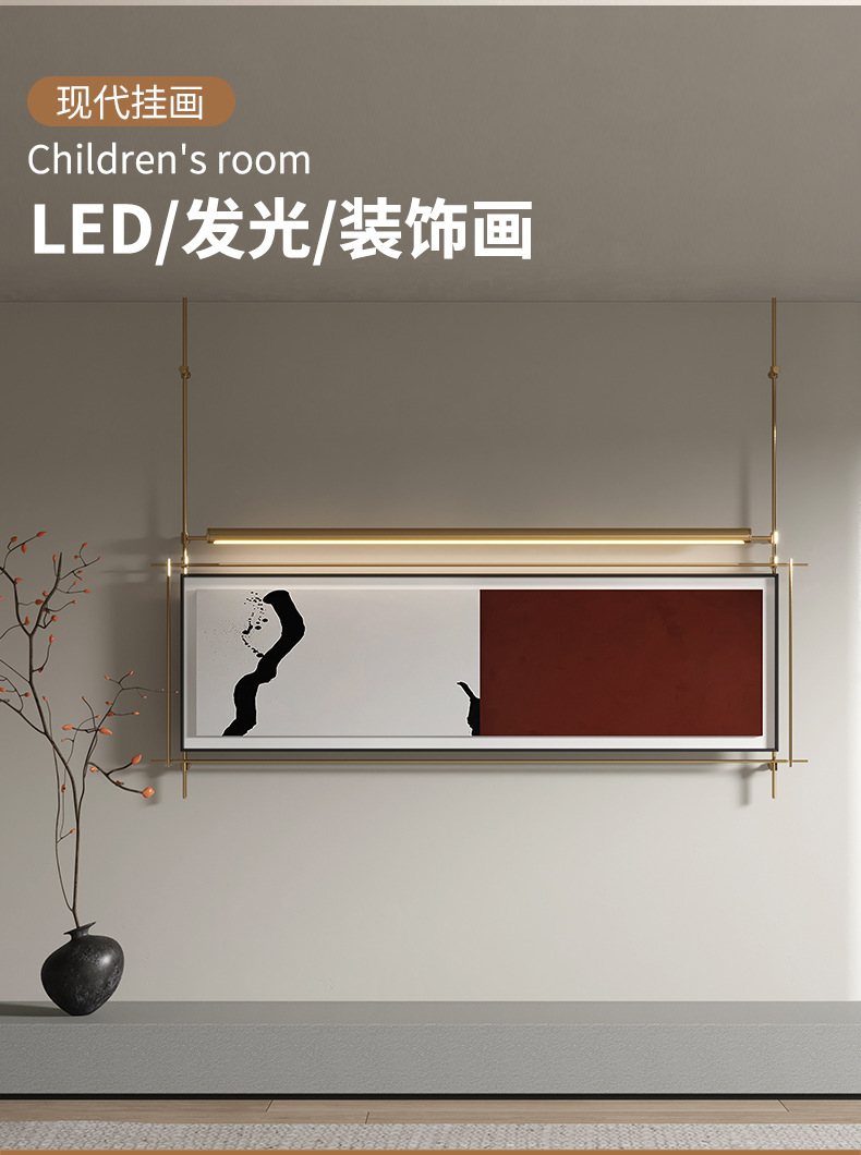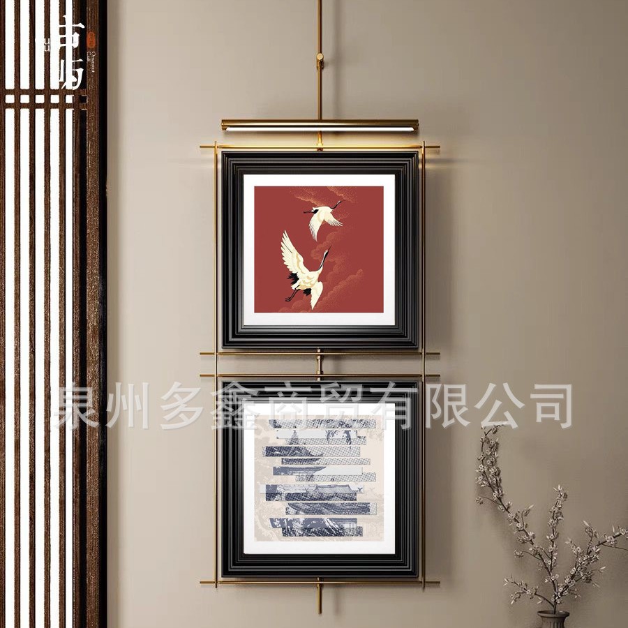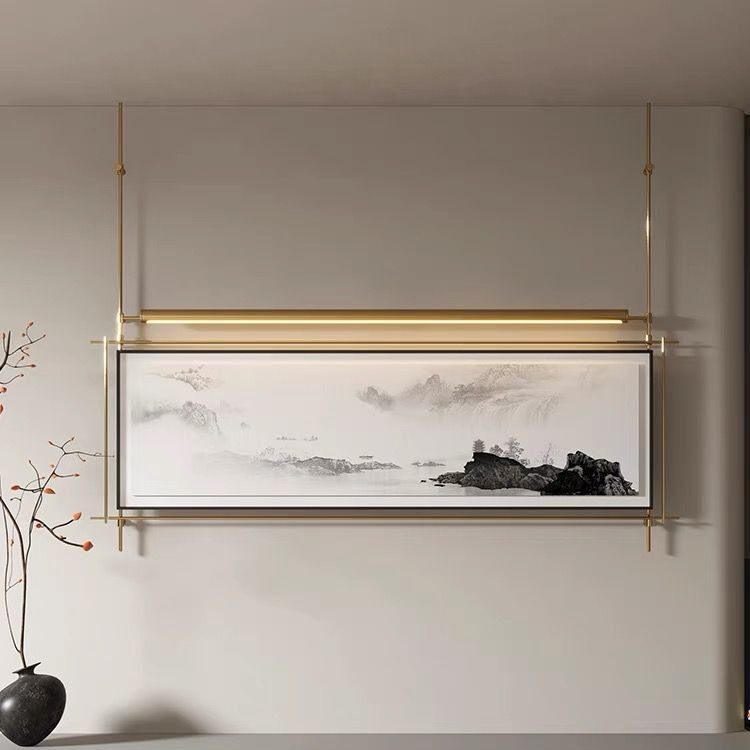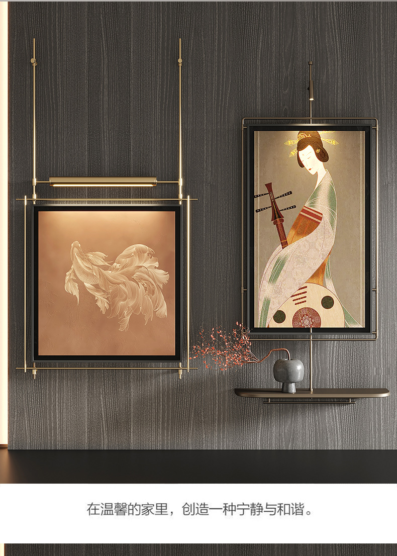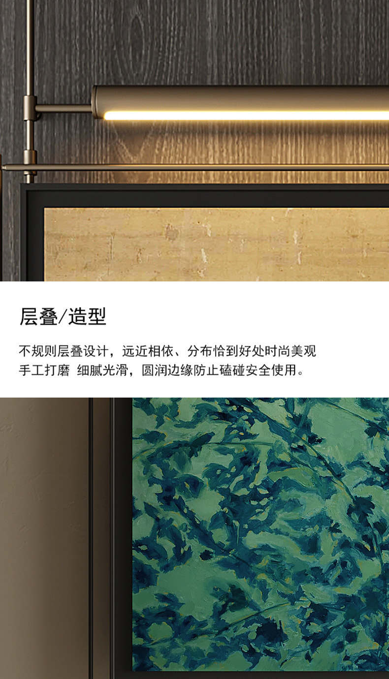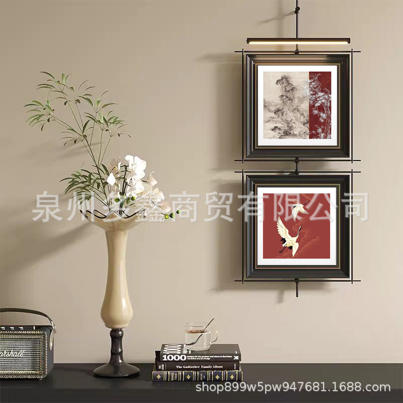 轻奢客厅装饰画仛寂风新款山水壁画沙发背景墙挂画高级感壁灯发光
