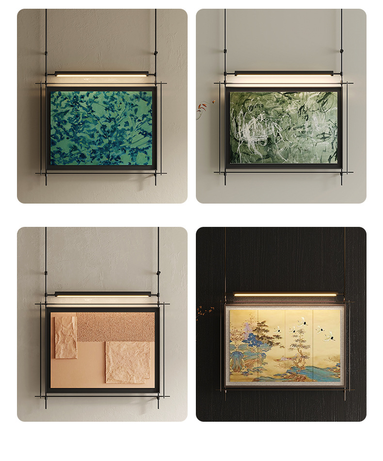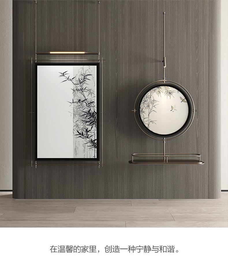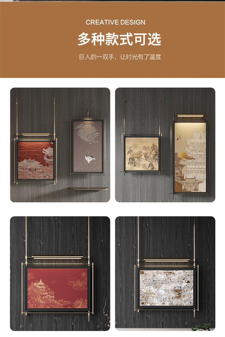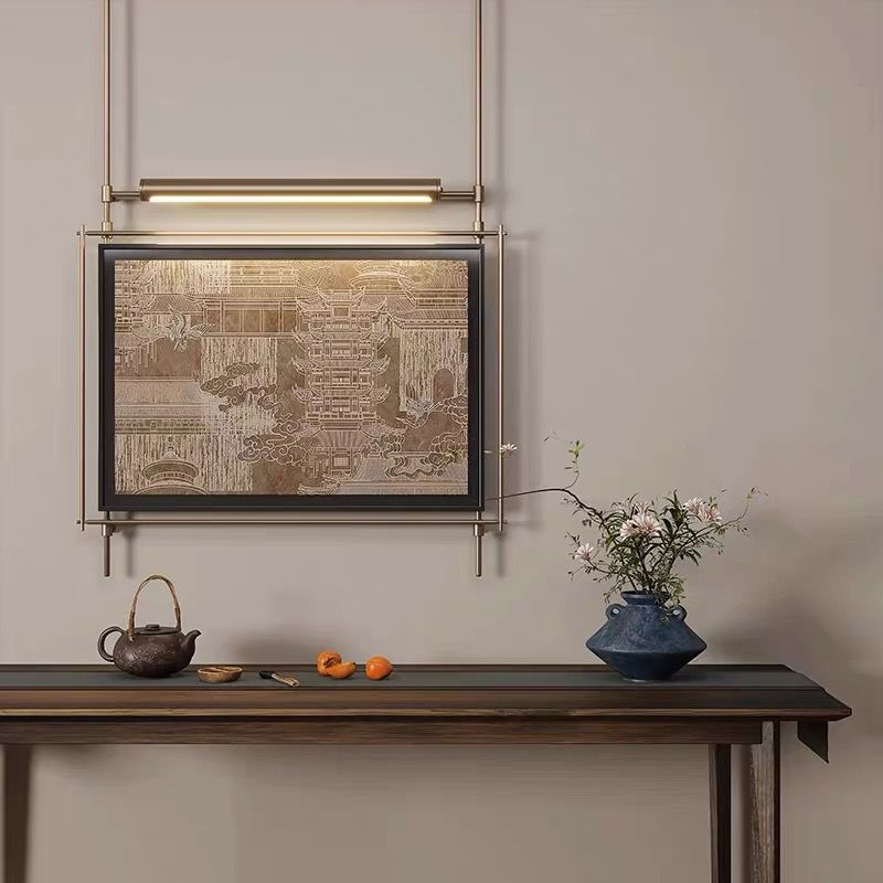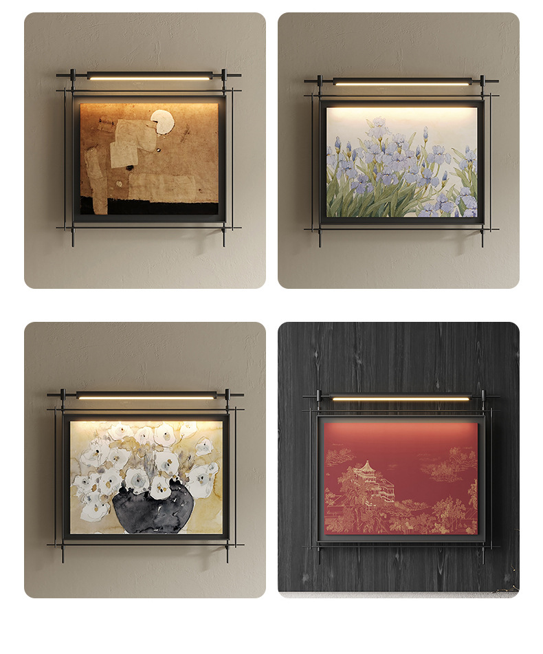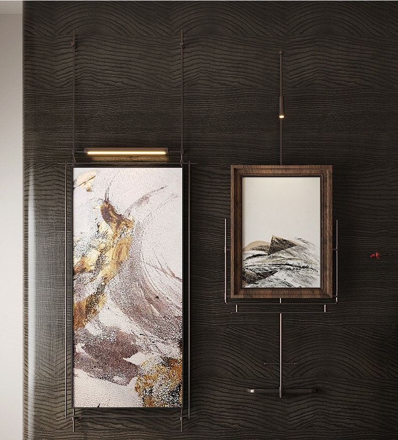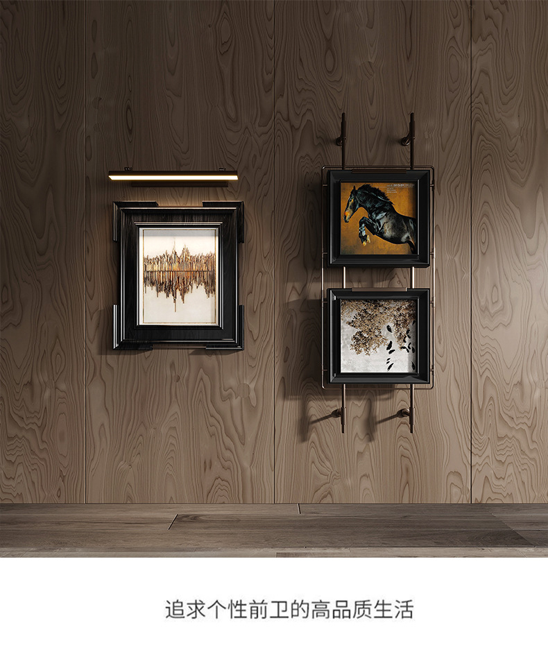 轻奢客厅装饰画仛寂风新款山水壁画沙发背景墙挂画高级感壁灯发光