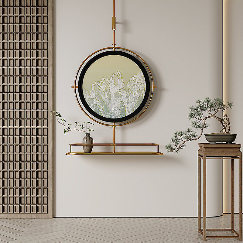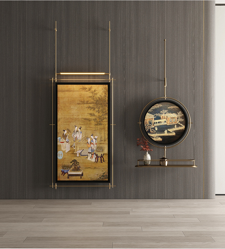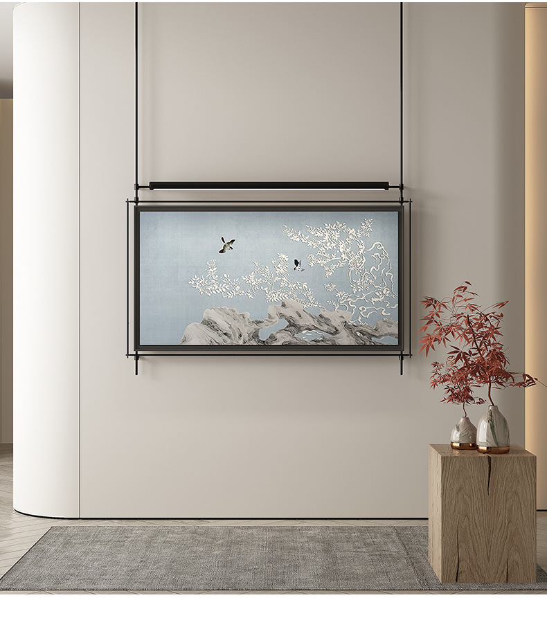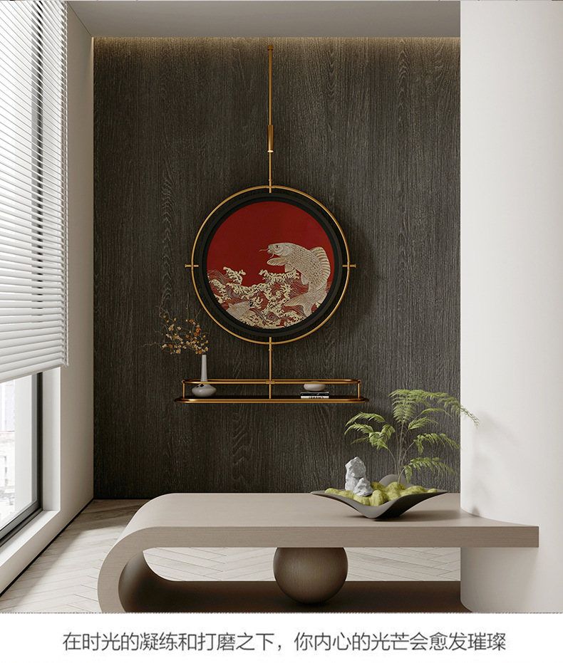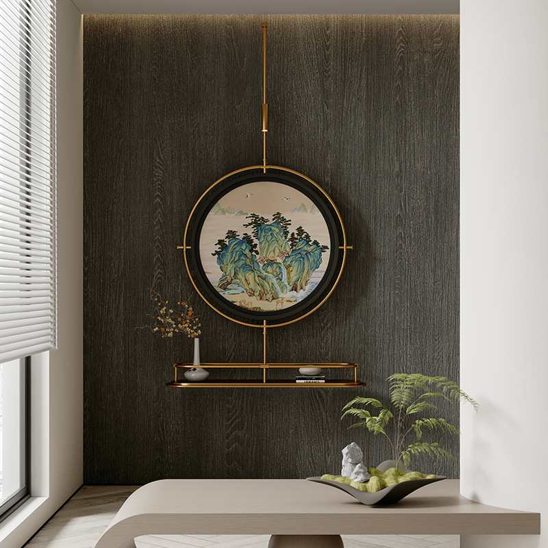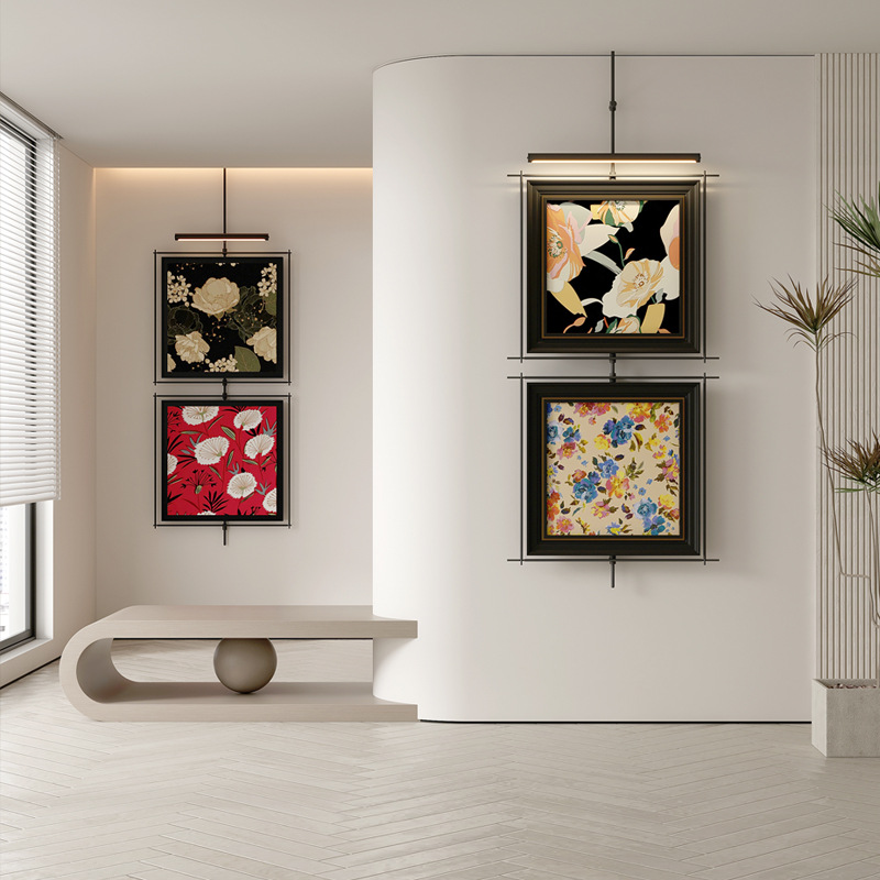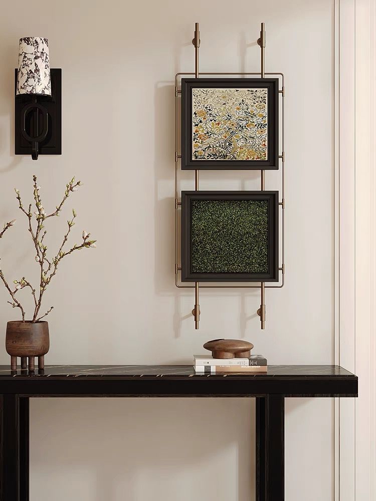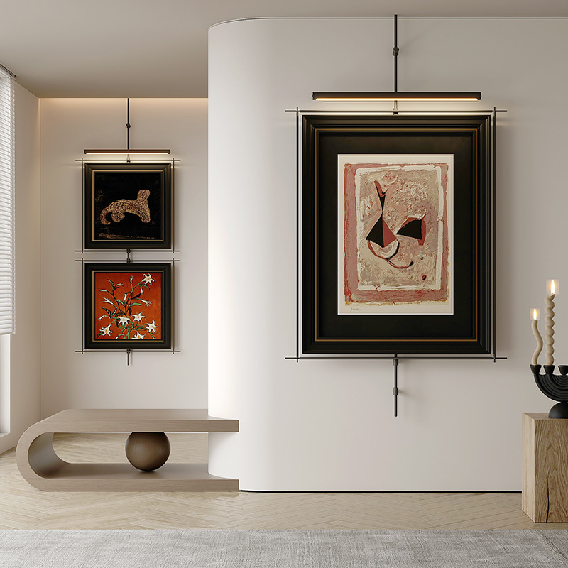 轻奢客厅装饰画仛寂风新款山水壁画沙发背景墙挂画高级感壁灯发光