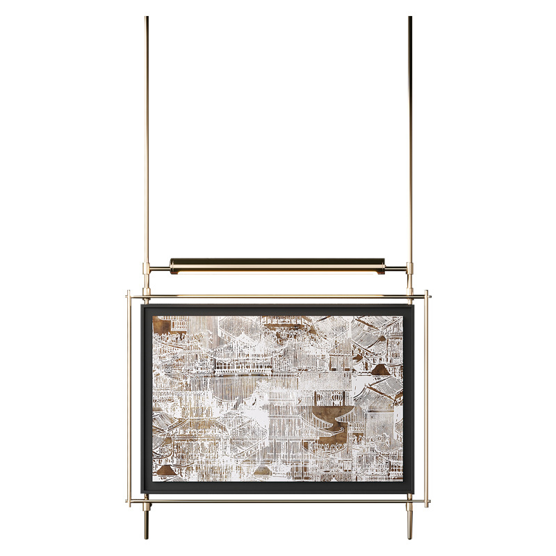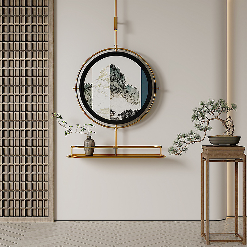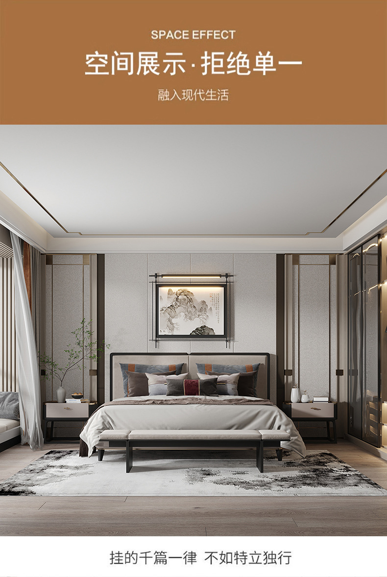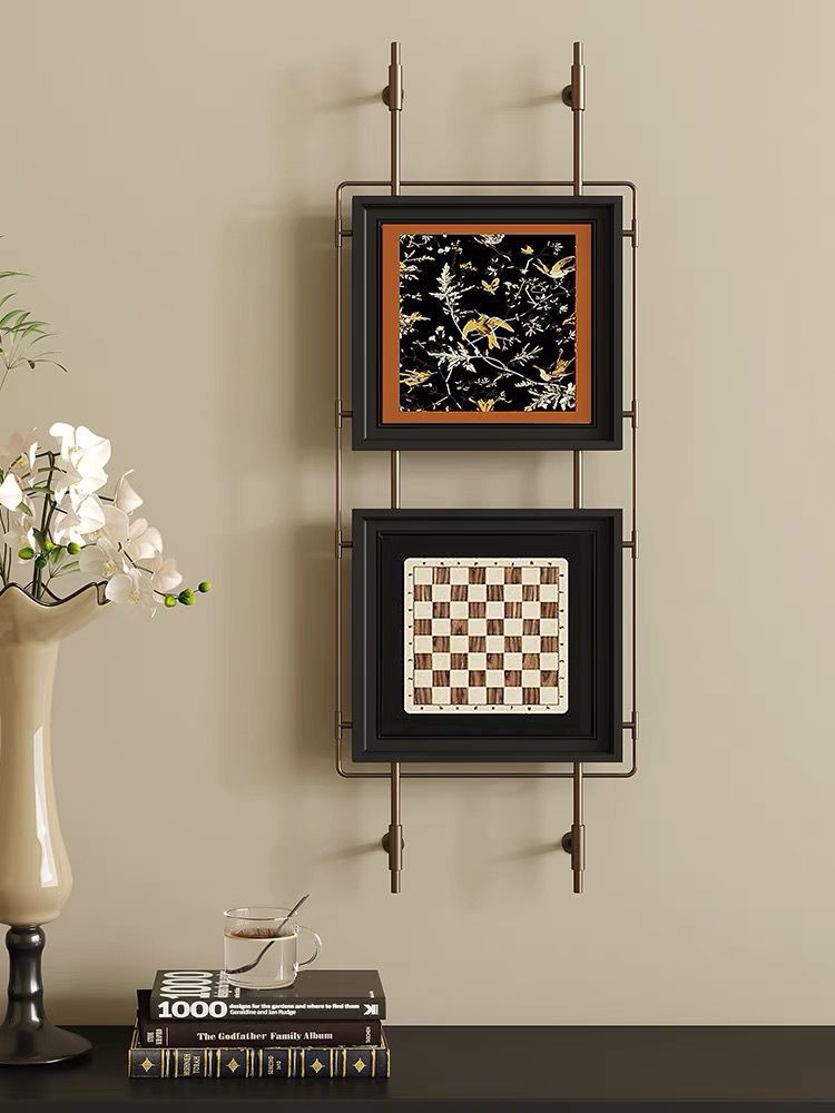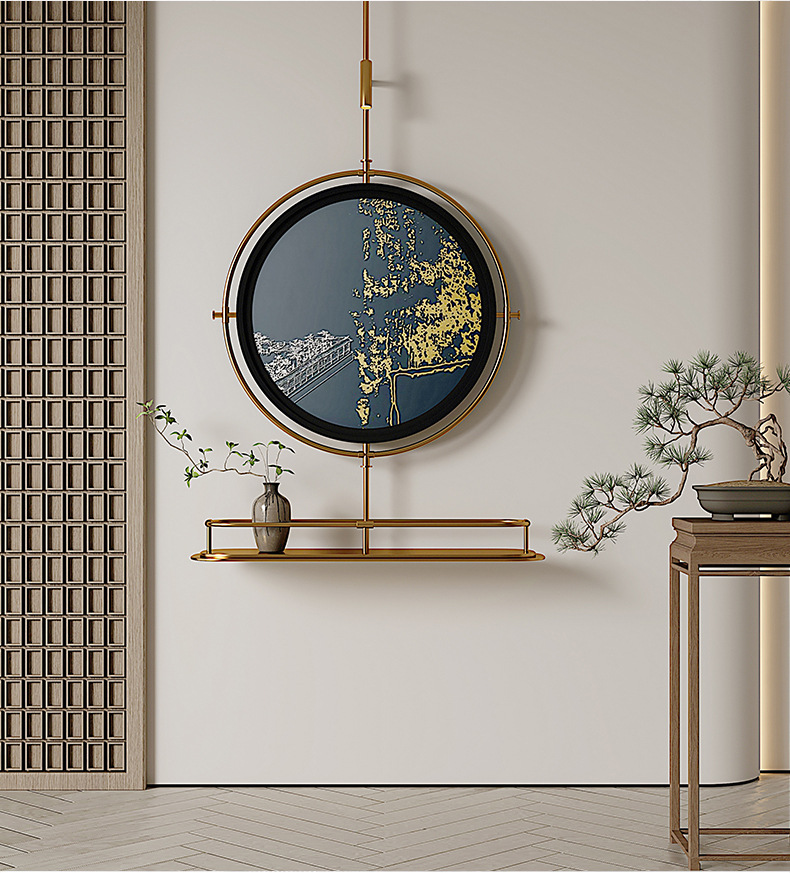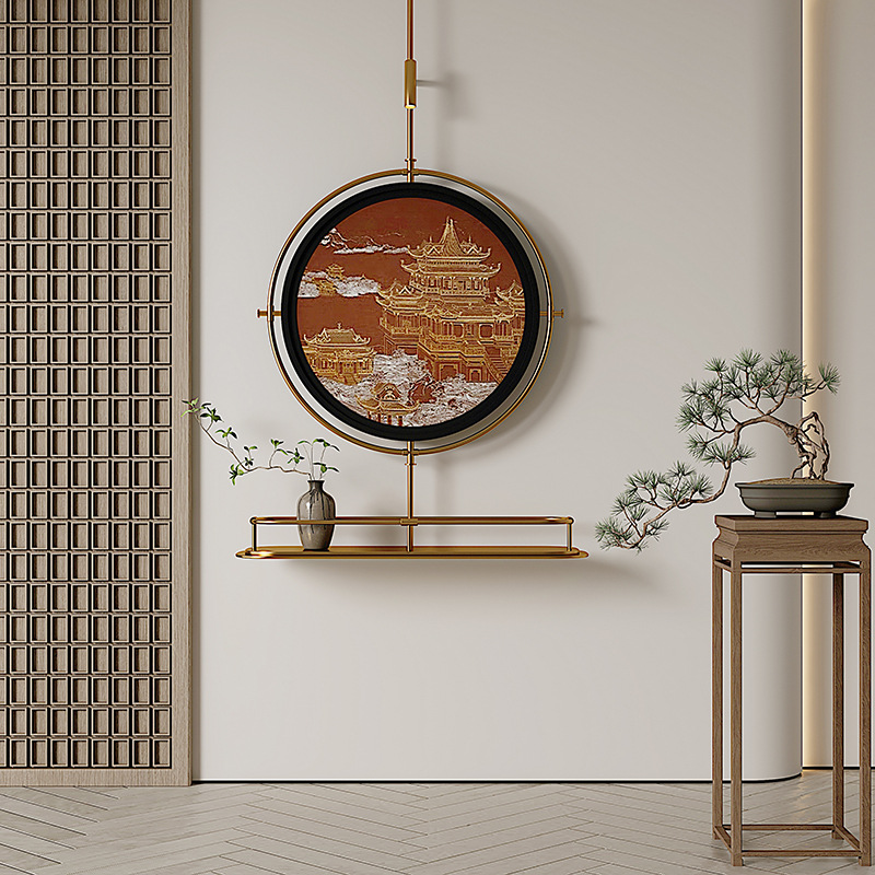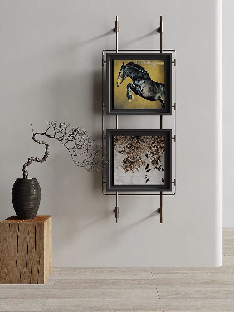 轻奢客厅装饰画仛寂风新款山水壁画沙发背景墙挂画高级感壁灯发光