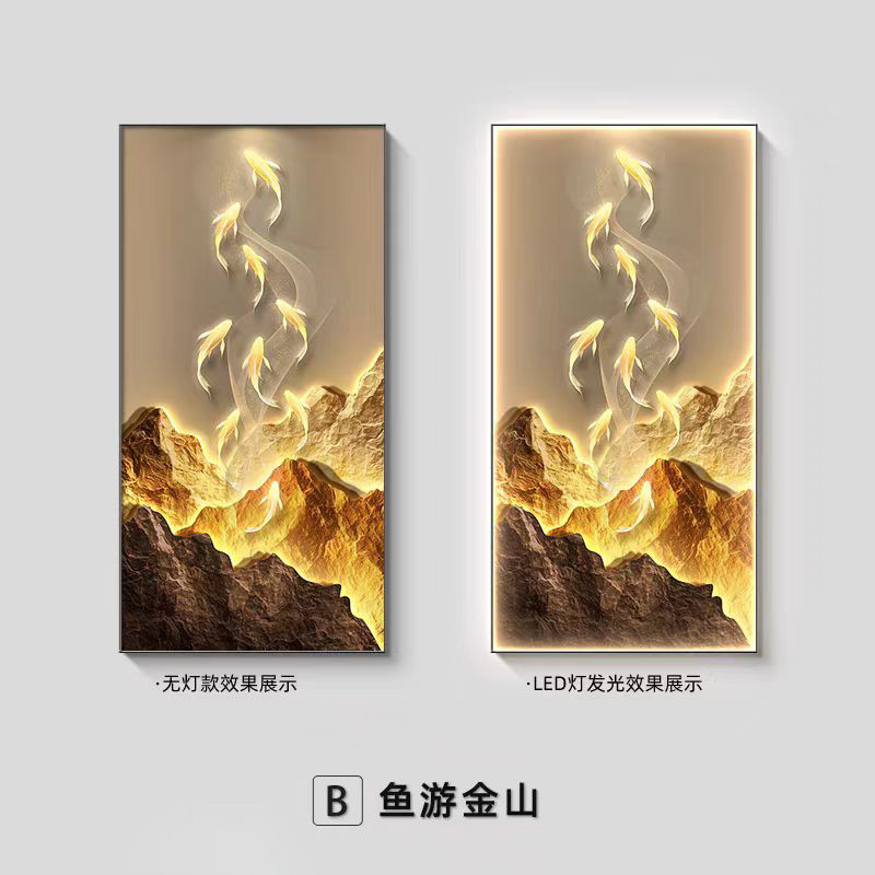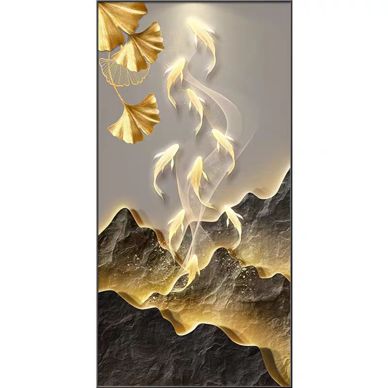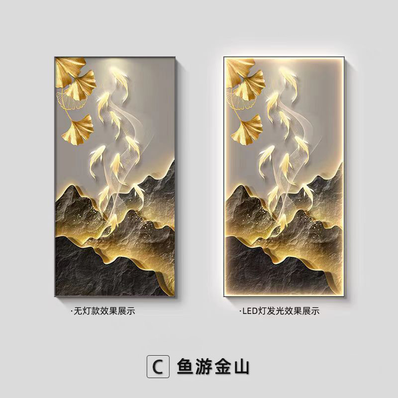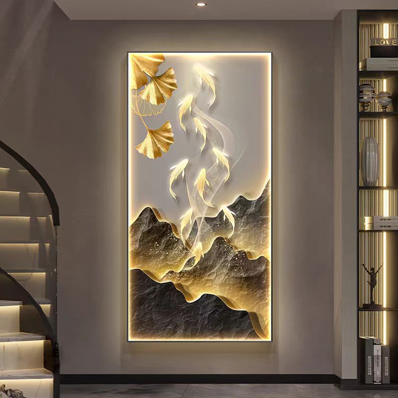 九鱼图玄关装饰画新中式高端走廊过道壁画灯画入户正对门客厅挂画
