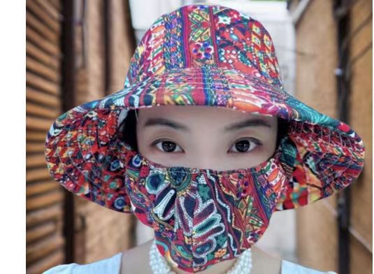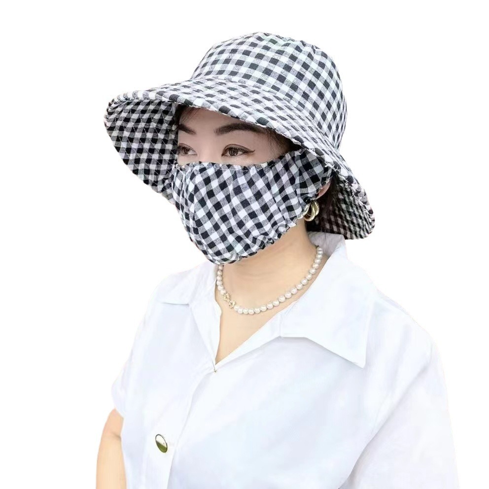 防晒口罩一体帽子批发户外夏季女骑车农活遮阳遮脸太阳帽子采茶帽