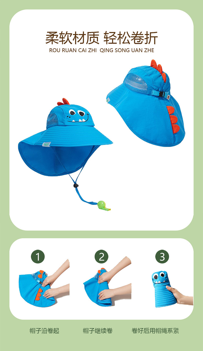 夏季儿童遮阳帽男女童防紫外线防晒帽子外出沙滩帽大帽檐渔夫帽