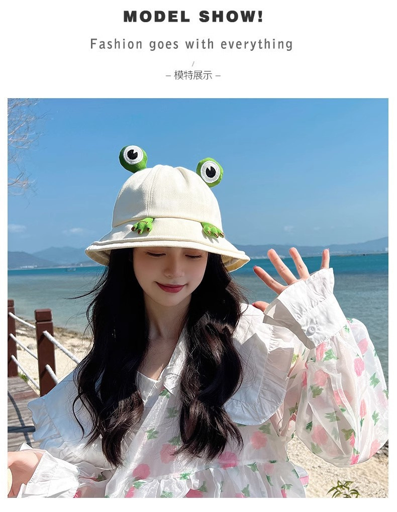小青蛙渔夫帽春秋季女款个性甜美帽子休闲百搭日系潮透气遮阳防晒