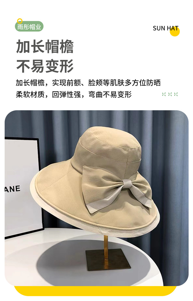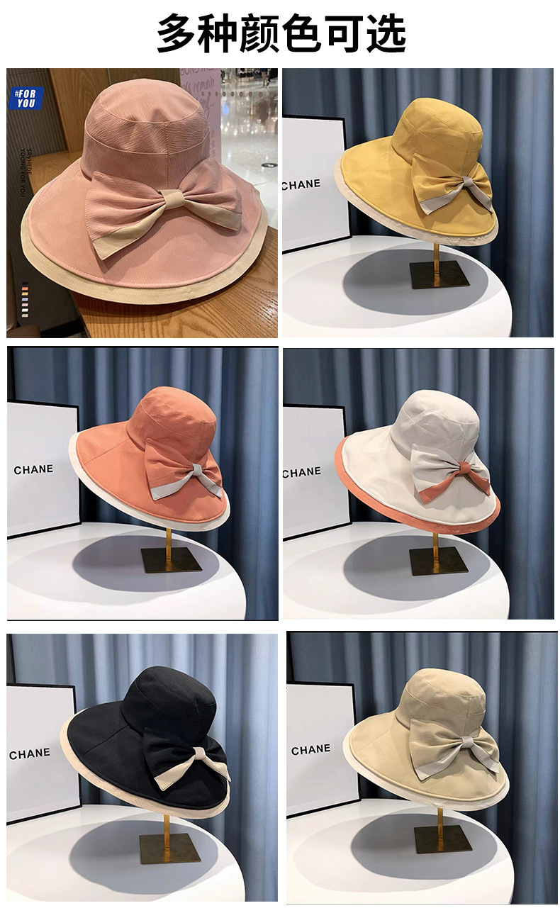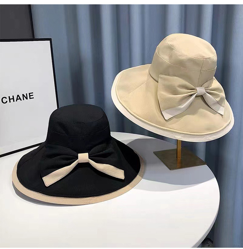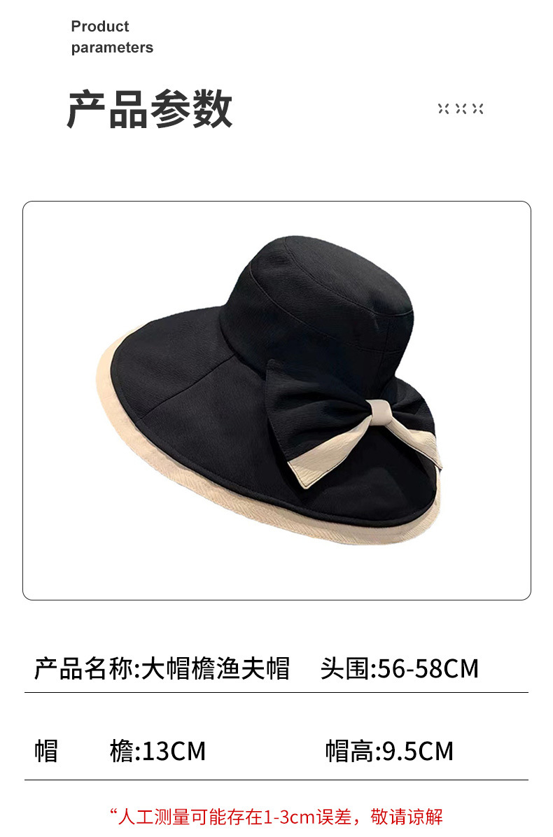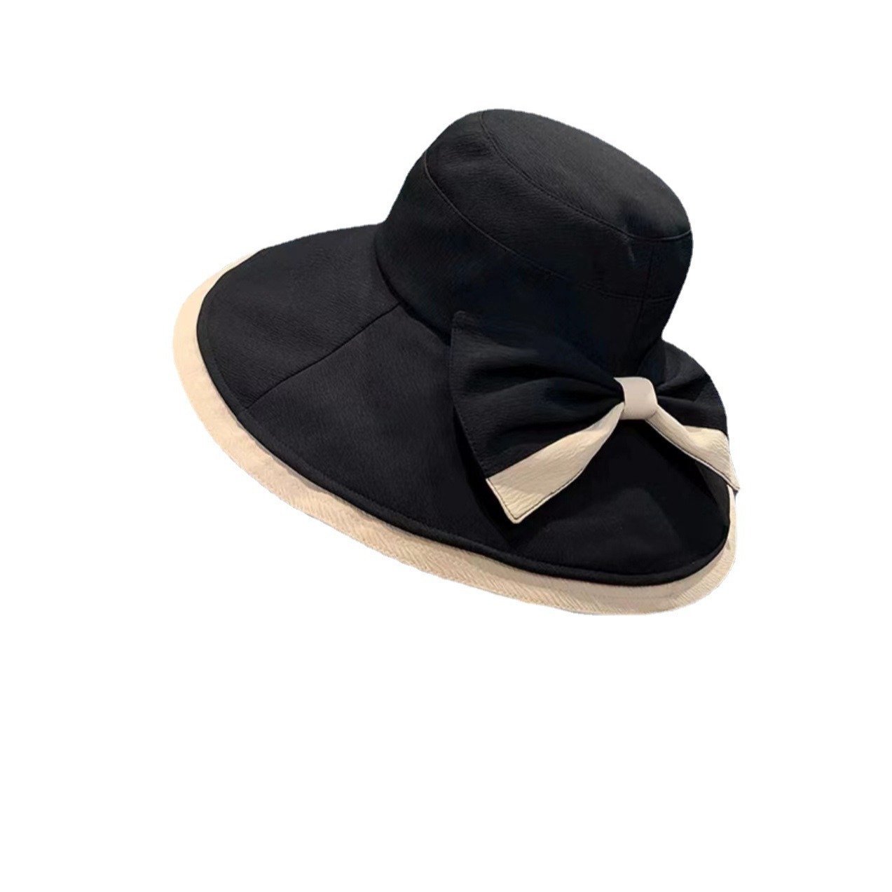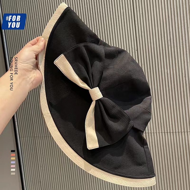 蝴蝶结大帽檐渔夫帽女新款黑胶防晒帽子可折叠时尚太阳帽遮阳帽