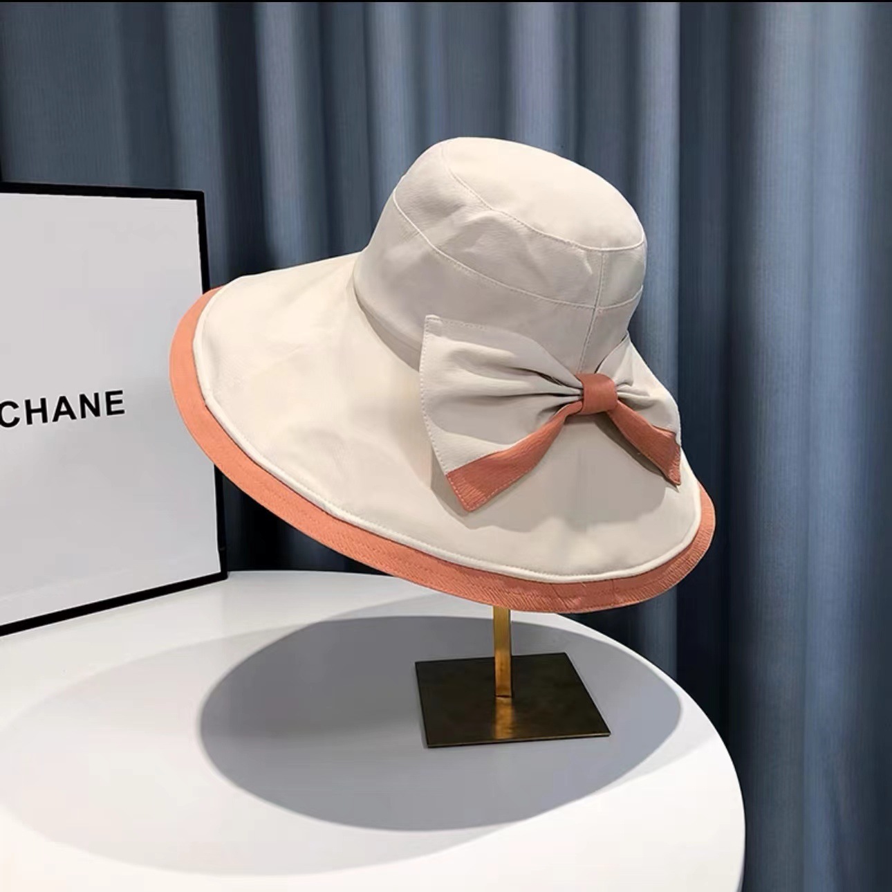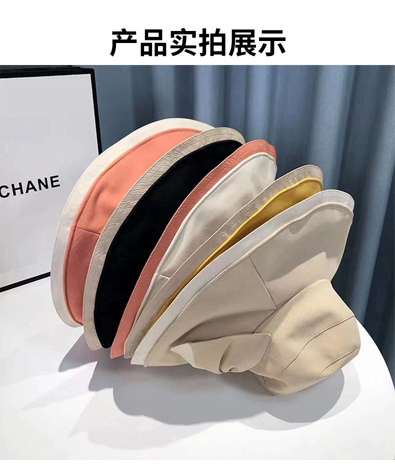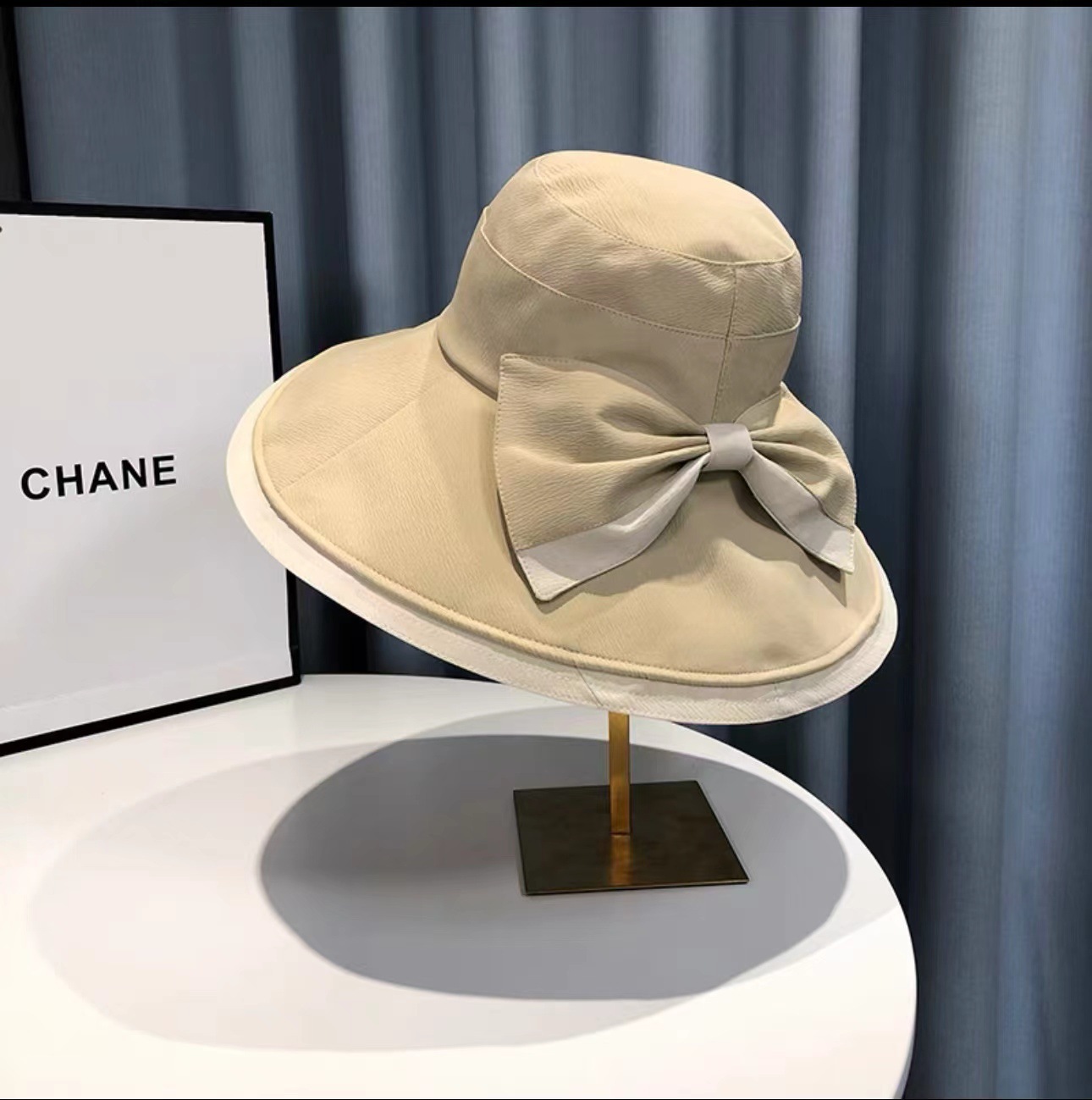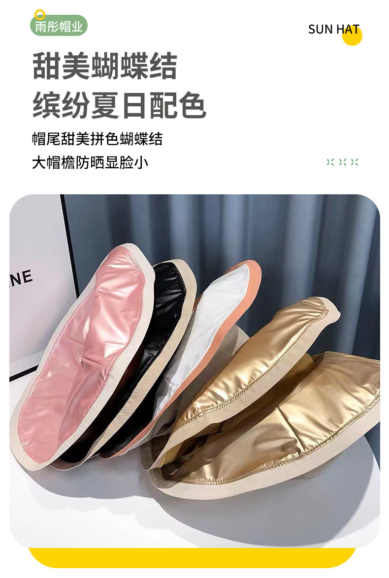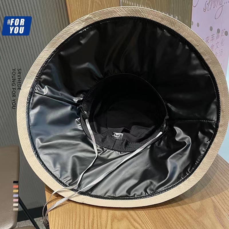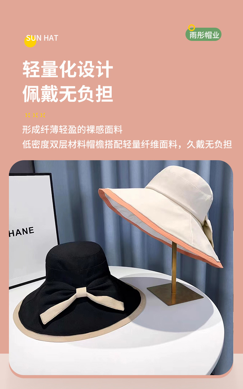 蝴蝶结大帽檐渔夫帽女新款黑胶防晒帽子可折叠时尚太阳帽遮阳帽