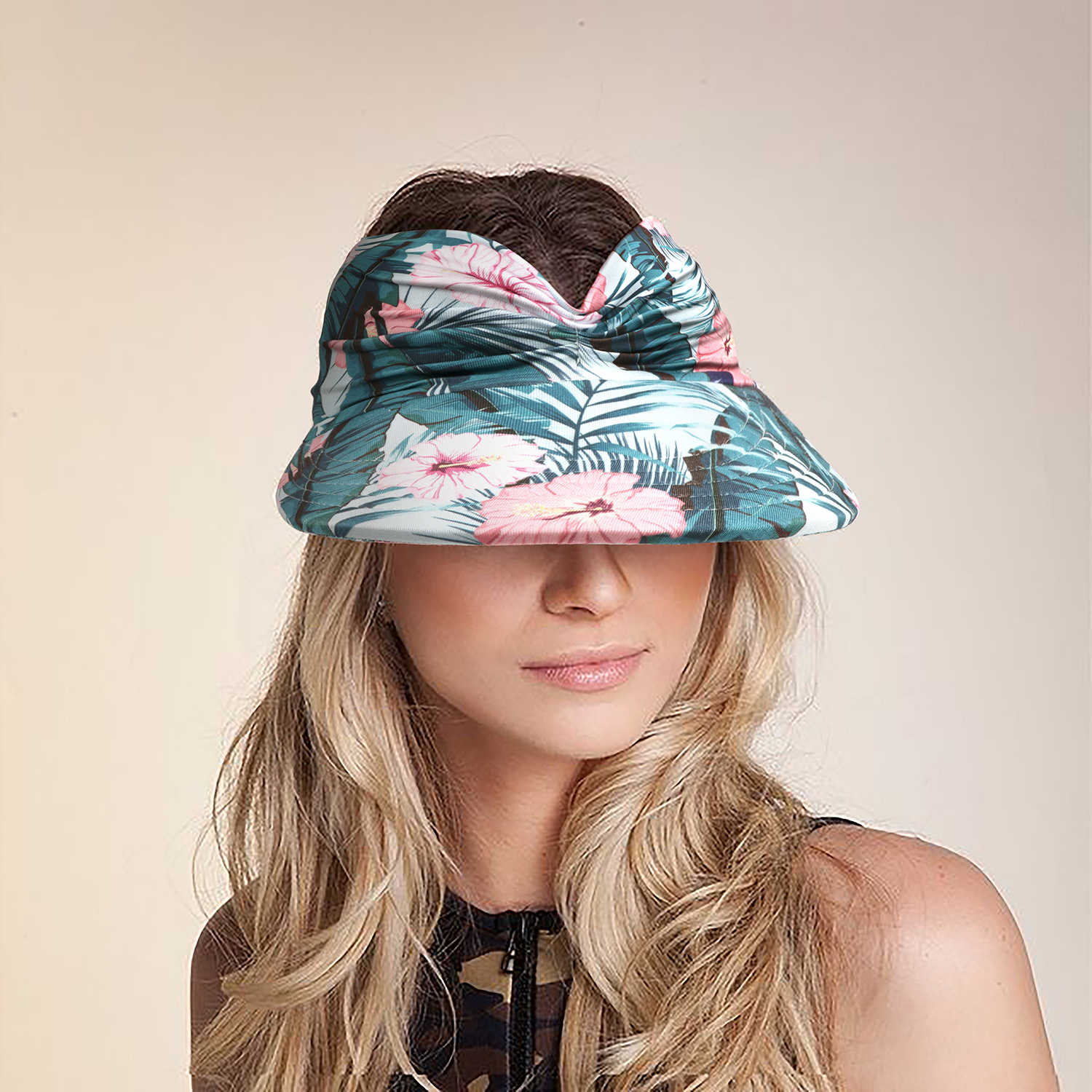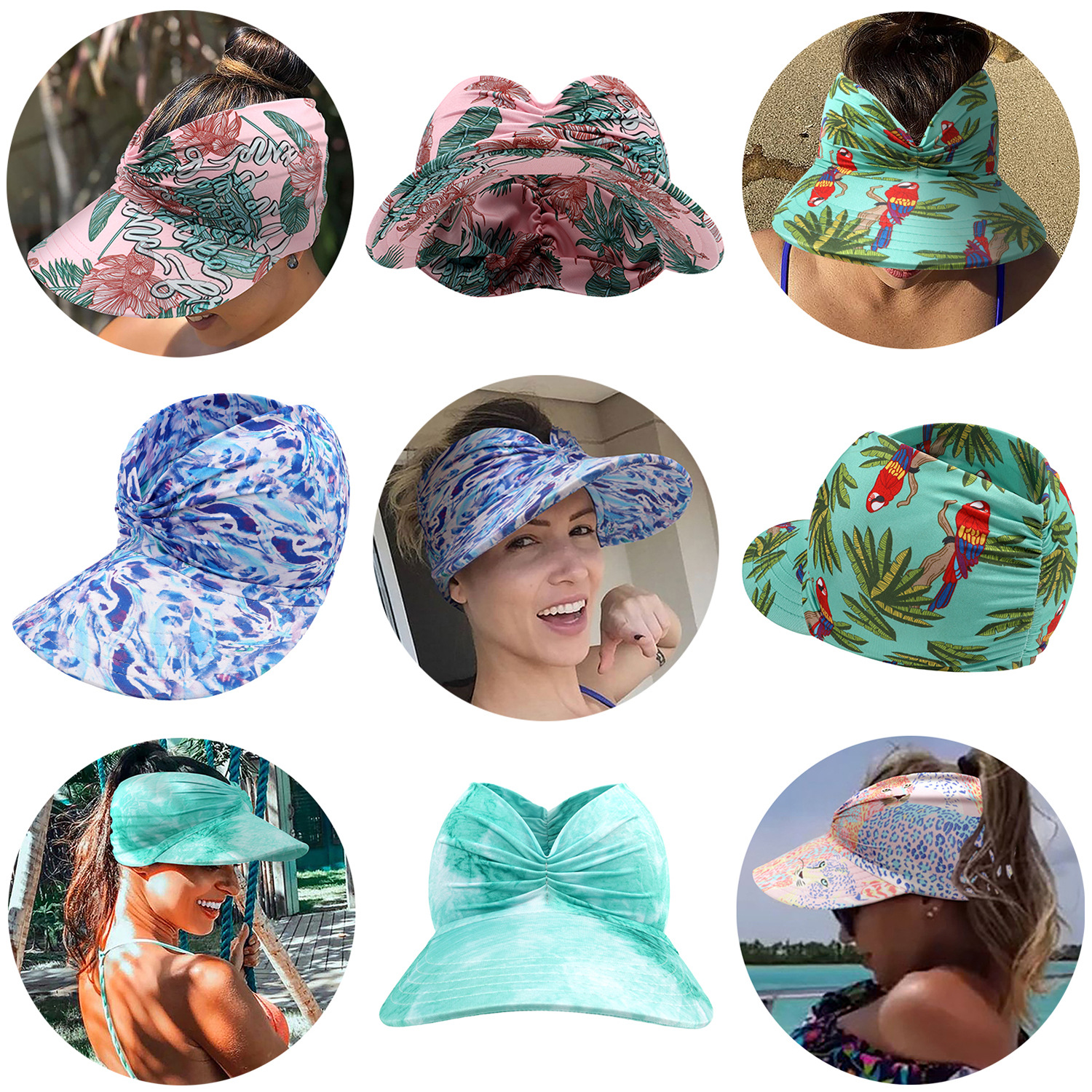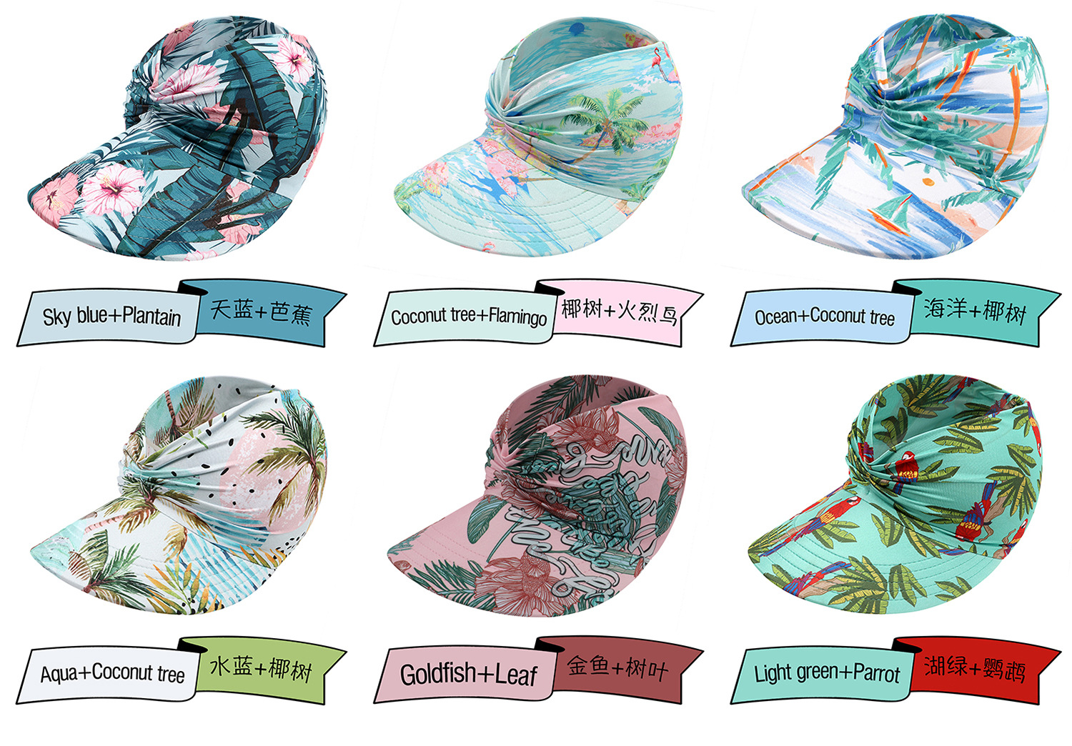 欧美夏季新款女士印花太阳帽防晒紫外线大帽檐遮脸户外游泳空顶帽