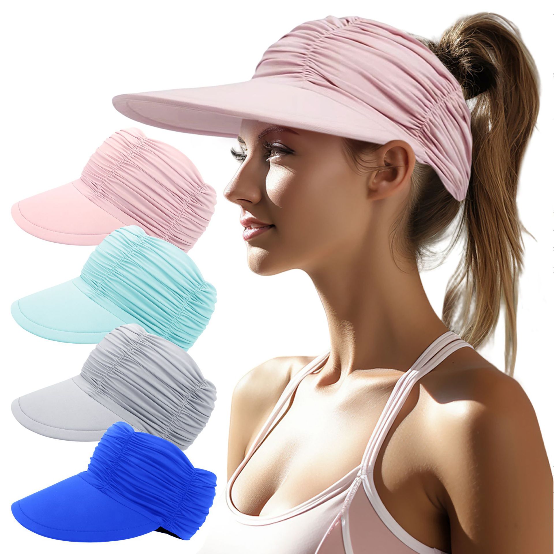 欧美夏季新款女士遮阳帽女防紫外线冰感材质大帽檐户外运动空顶帽