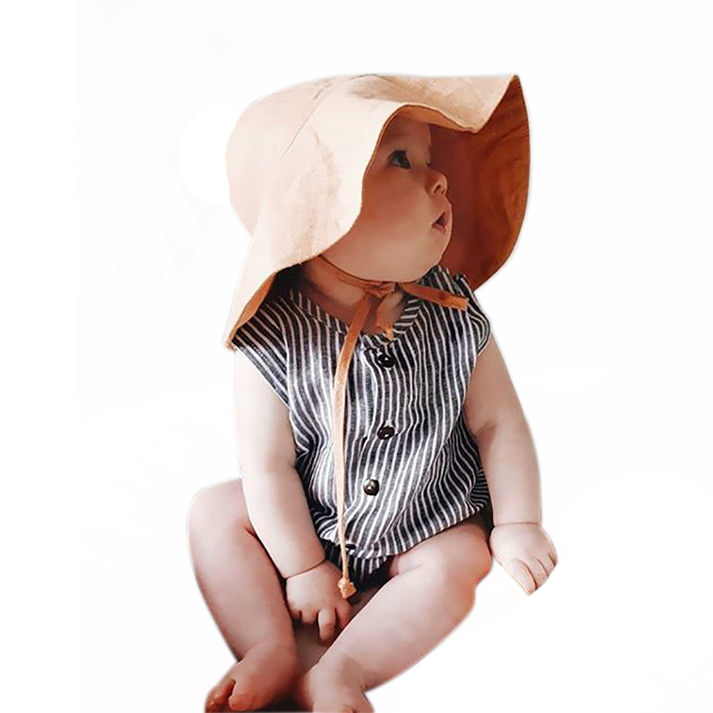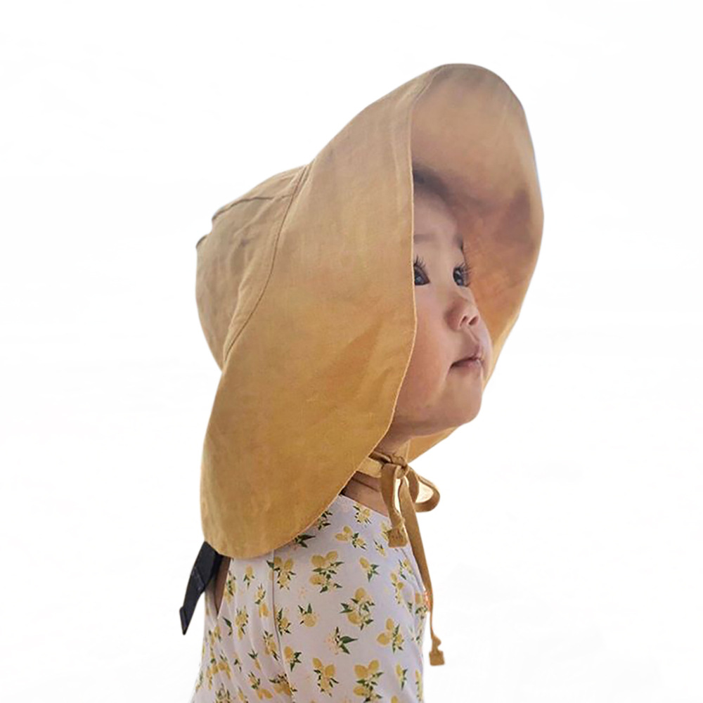 欧美夏季新款小儿童遮阳帽婴幼儿户外大帽檐盆帽棉麻透气防晒帽