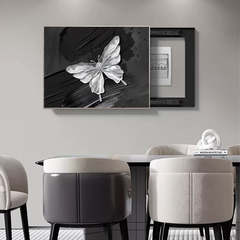 铝合金电表箱装饰画黑白新款蝴蝶配电箱盖板遮挡画电箱盒客厅挂画