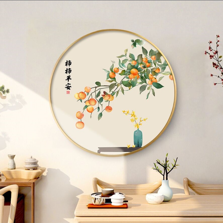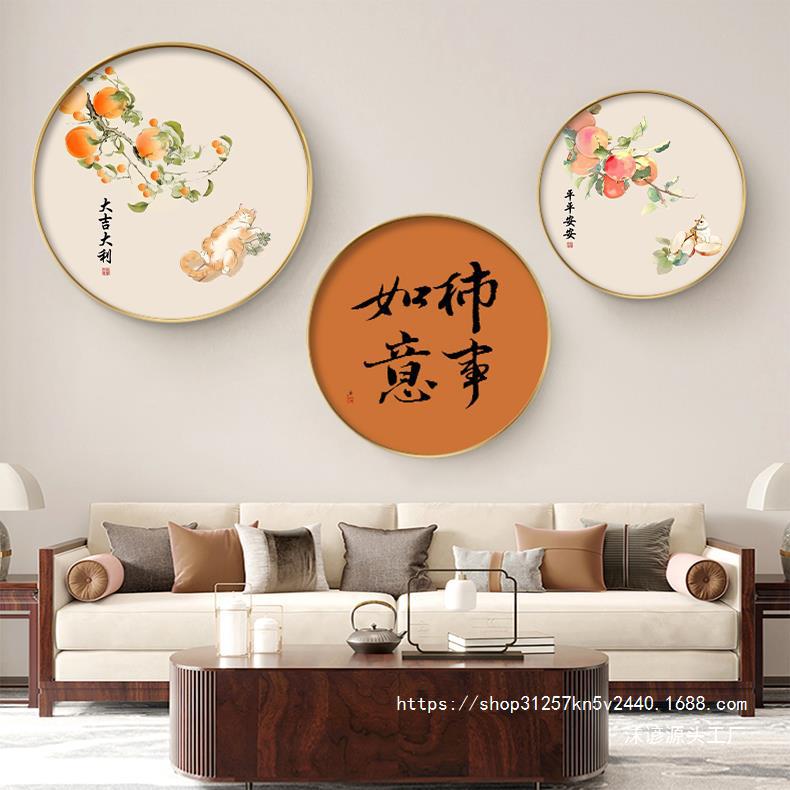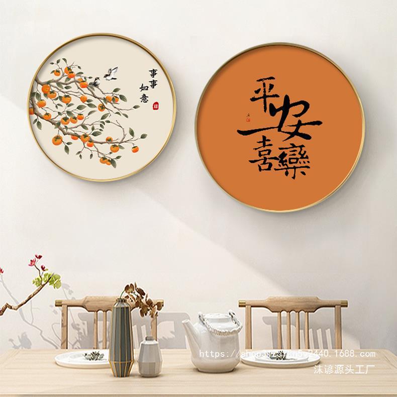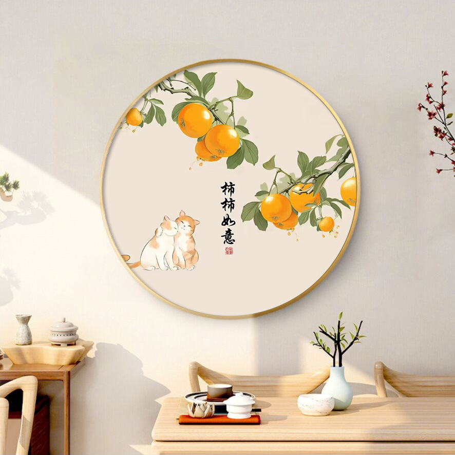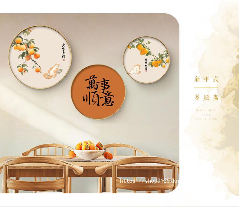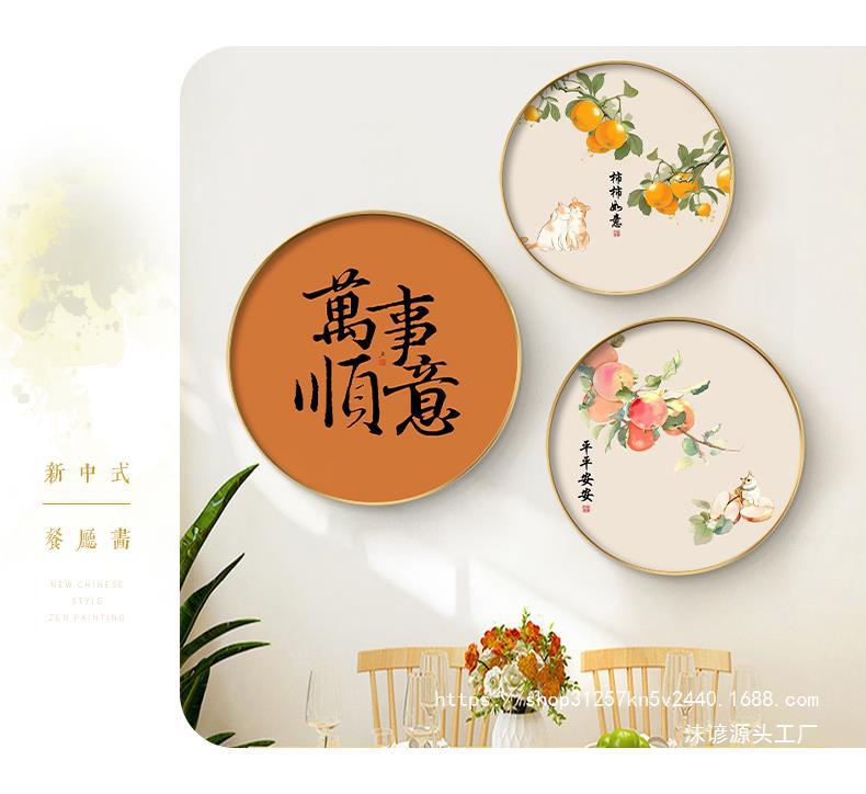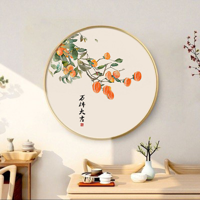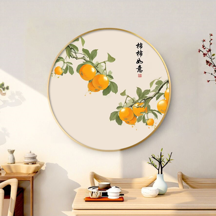 新中式餐厅装饰画饭厅墙面壁画客厅沙发背景墙挂画圆形柿柿如意画