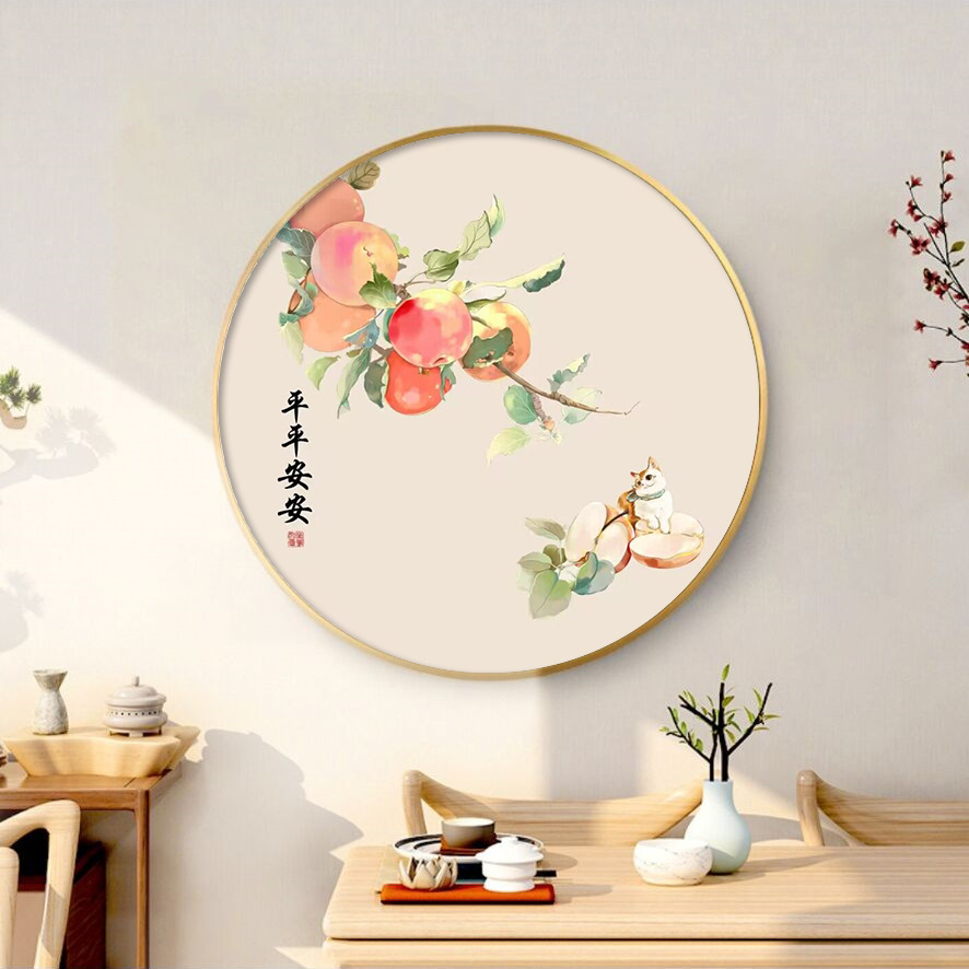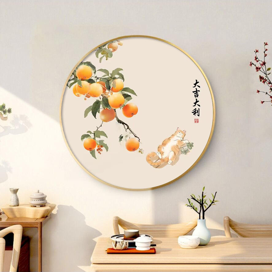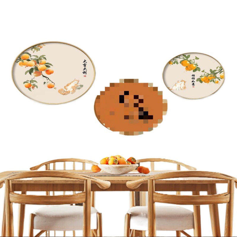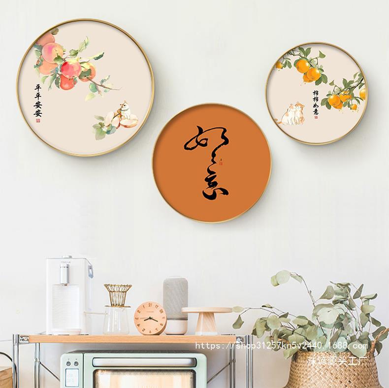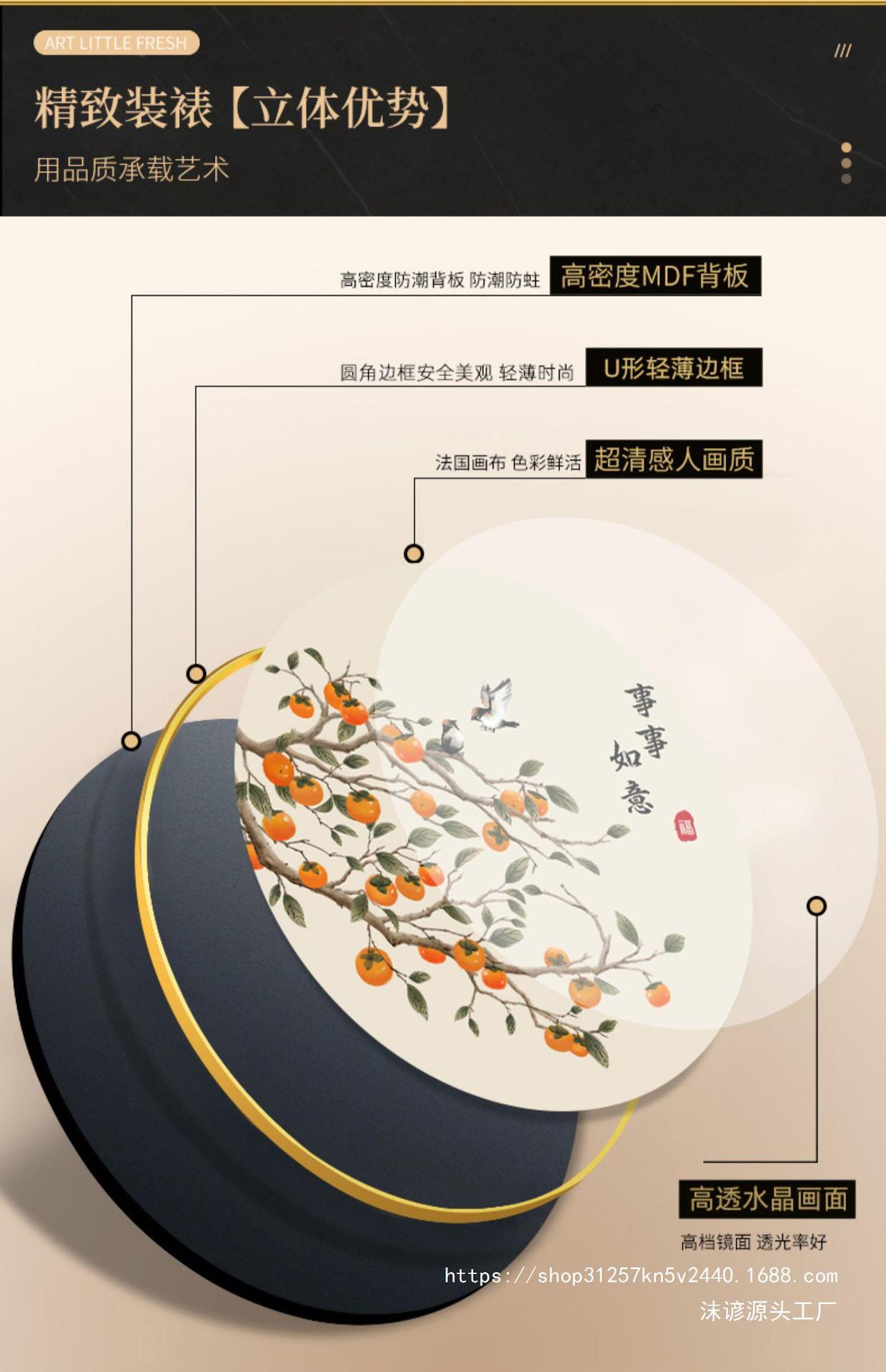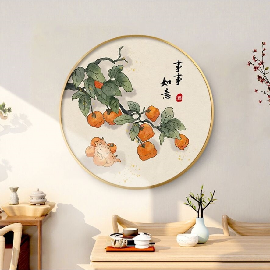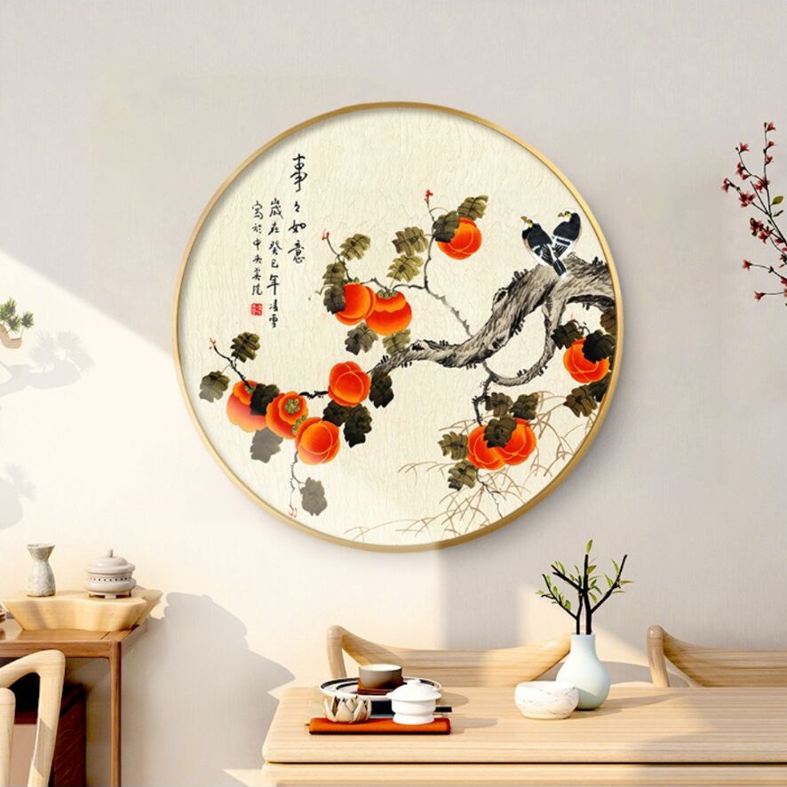 新中式餐厅装饰画饭厅墙面壁画客厅沙发背景墙挂画圆形柿柿如意画