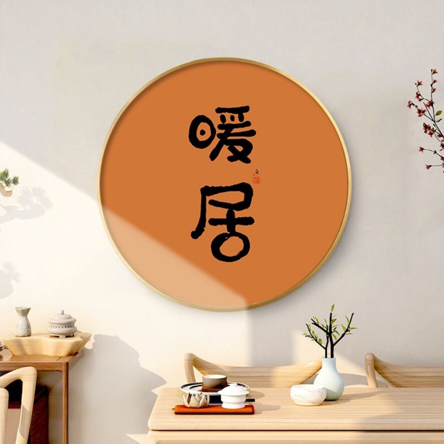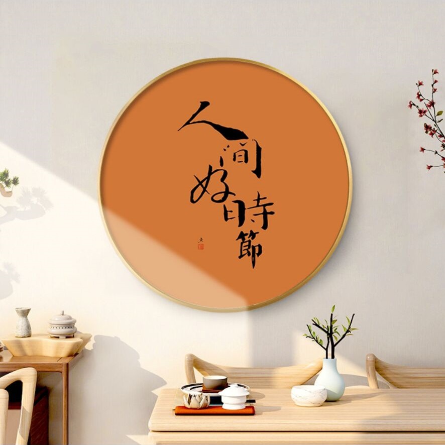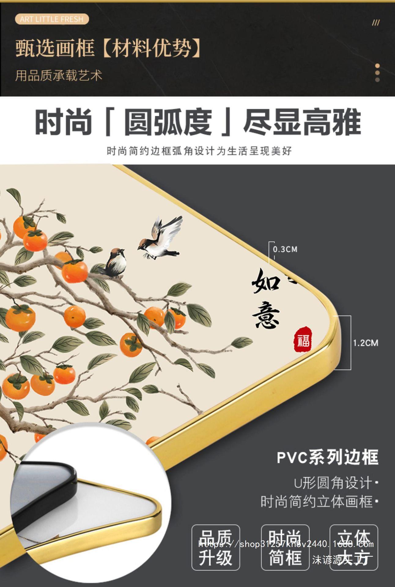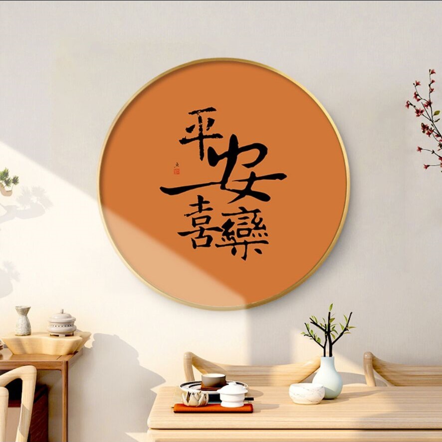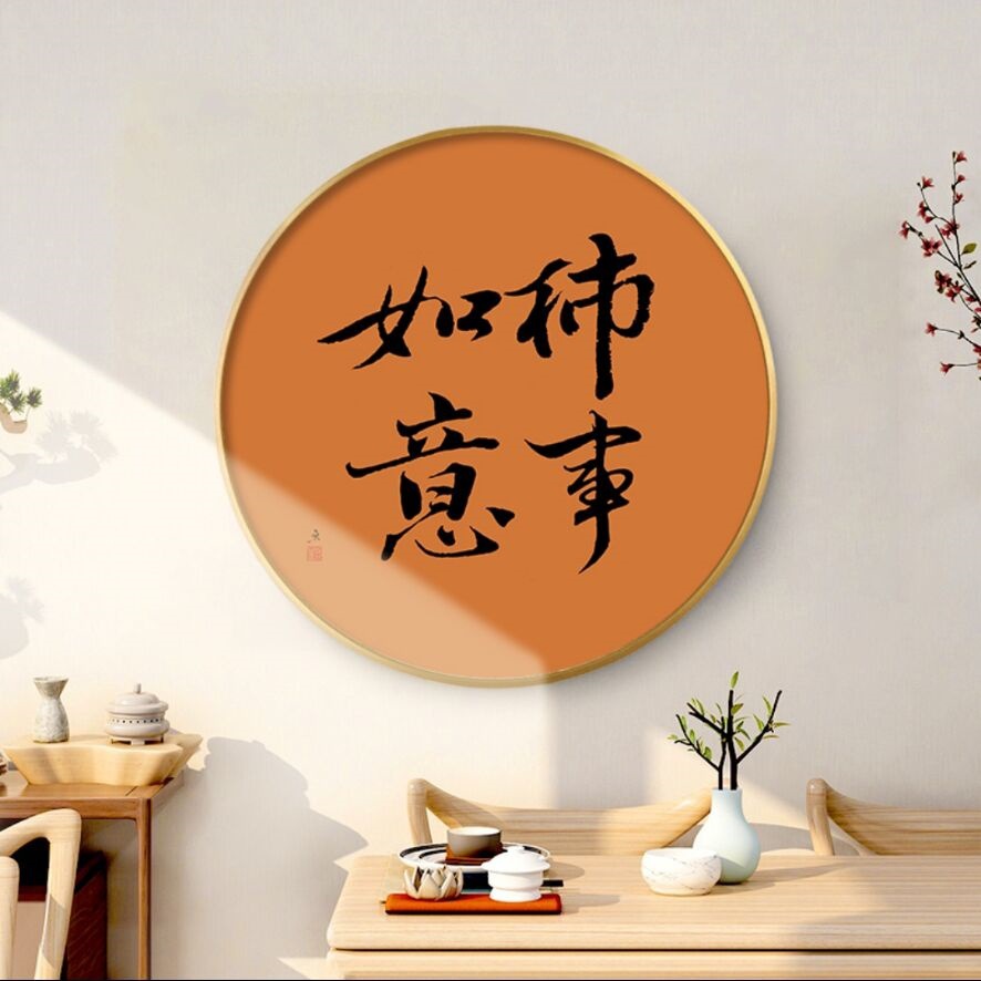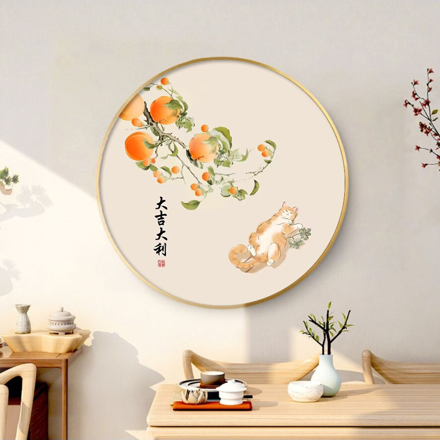新中式餐厅装饰画饭厅墙面壁画客厅沙发背景墙挂画圆形柿柿如意画