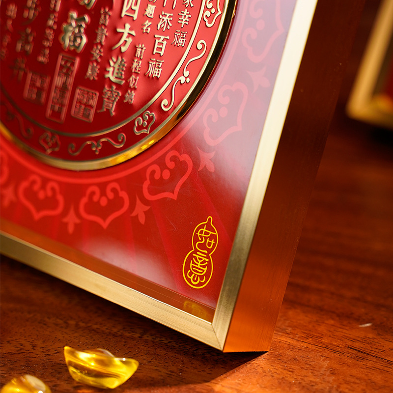 天官赐福摆台天官赐福字画摆件办公室桌面装饰乔迁玄关柜红色挂画