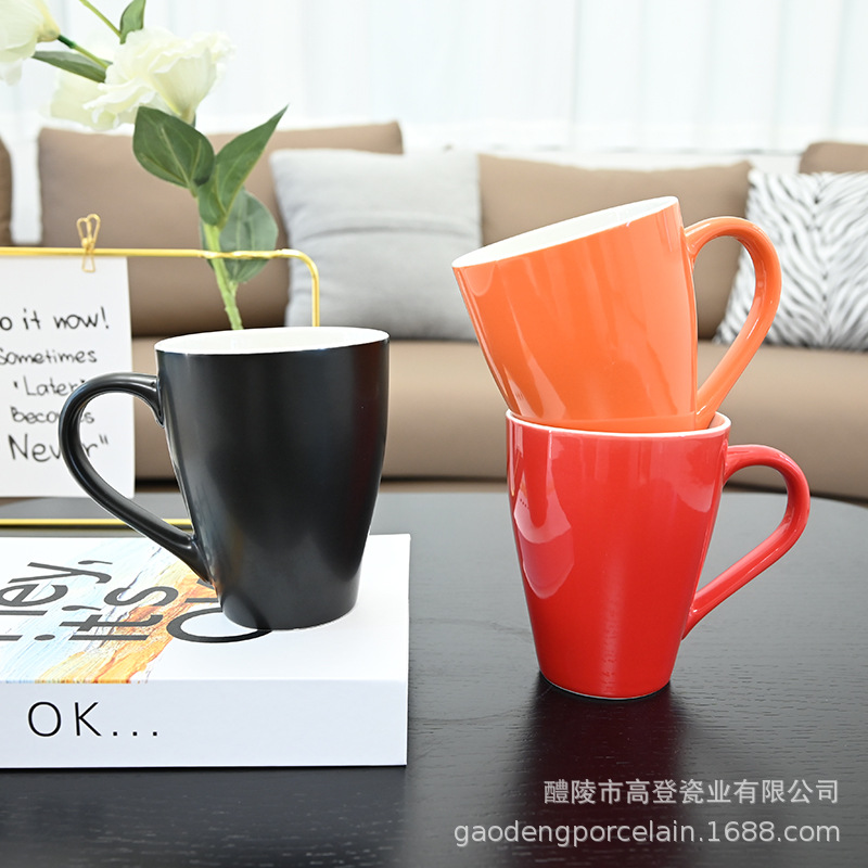 色釉陶瓷果汁杯可印LOGO文字水杯多色马克杯家用宾馆水杯刻字批发