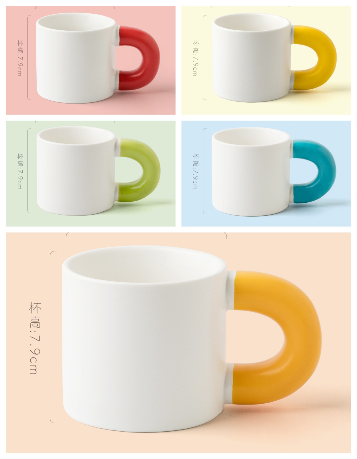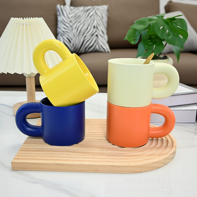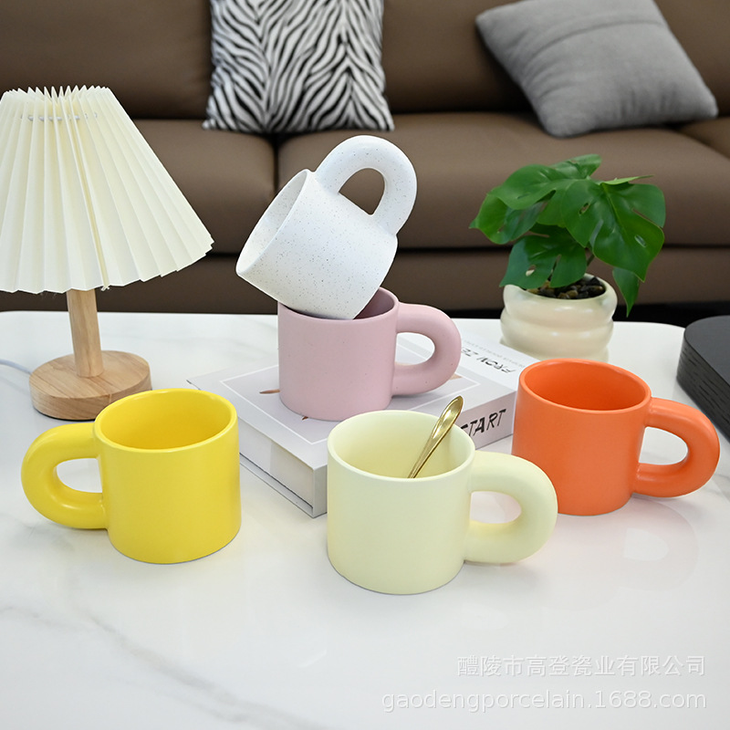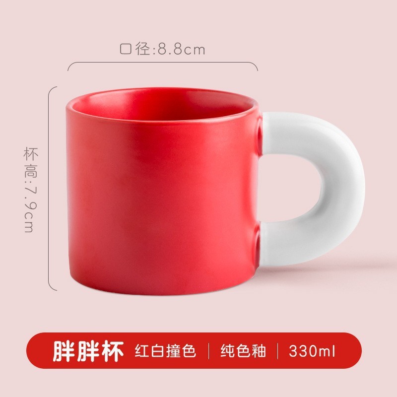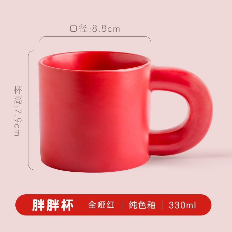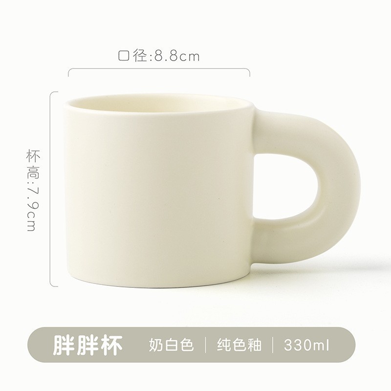 胖胖陶瓷马克杯可印LOGO简约家用大耳朵手柄水杯咖啡酒店礼品杯子