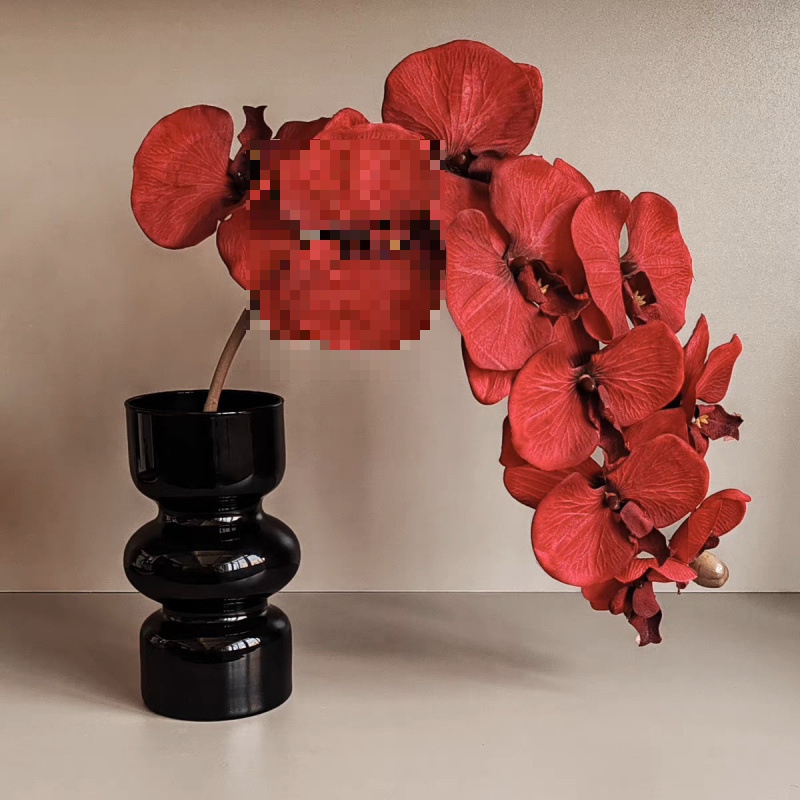 风黑色花瓶客厅插花轻奢小众高级感复古玻璃中古水培鲜花摆件