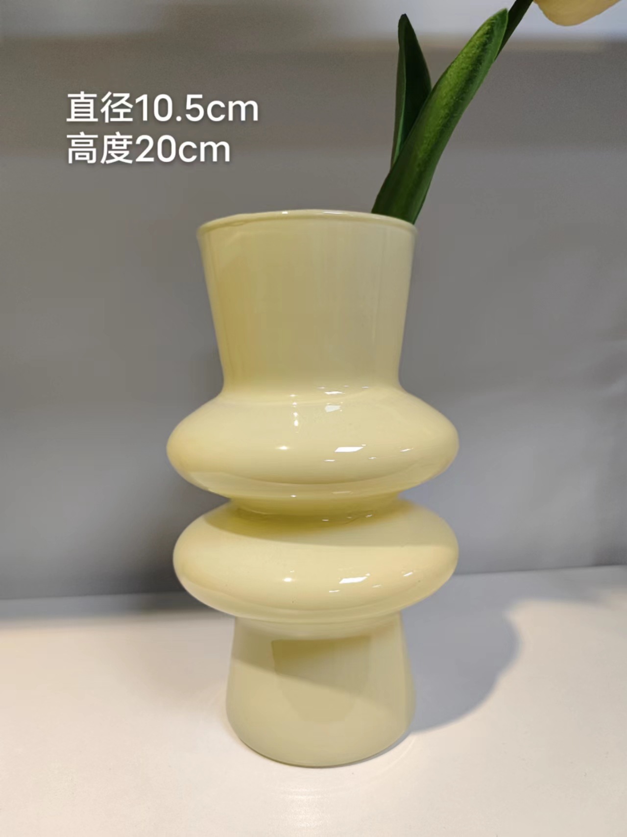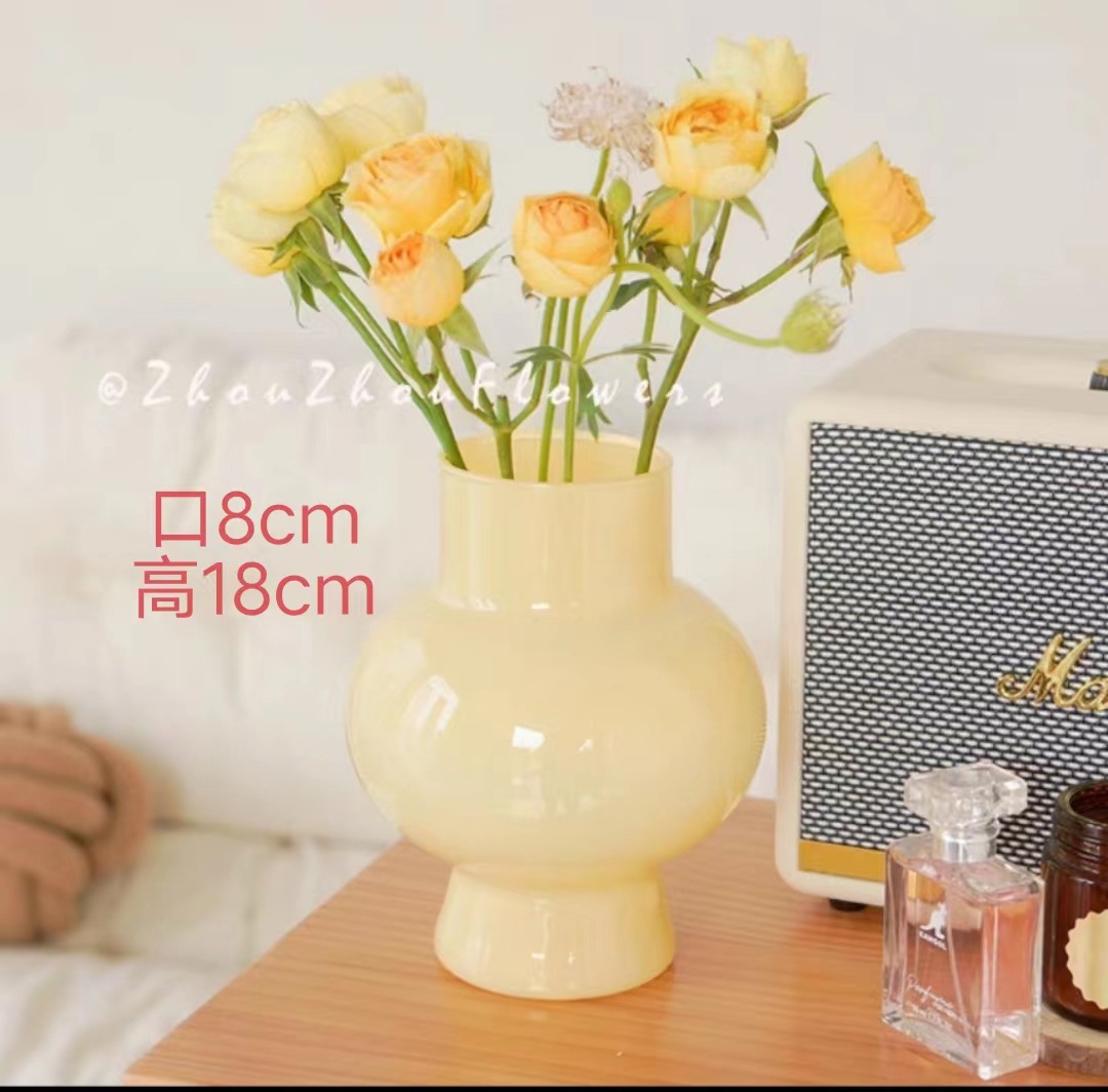高级感中古芬顿奶油花瓶玻璃水养鲜花富贵竹玫瑰百合家居客厅插花
