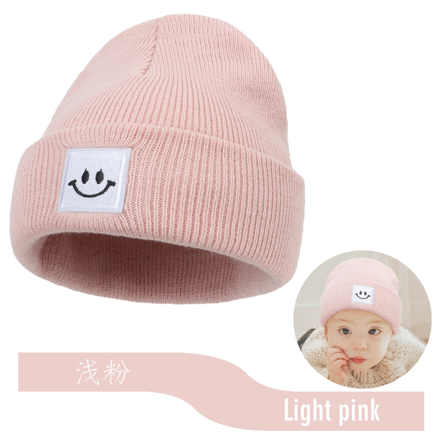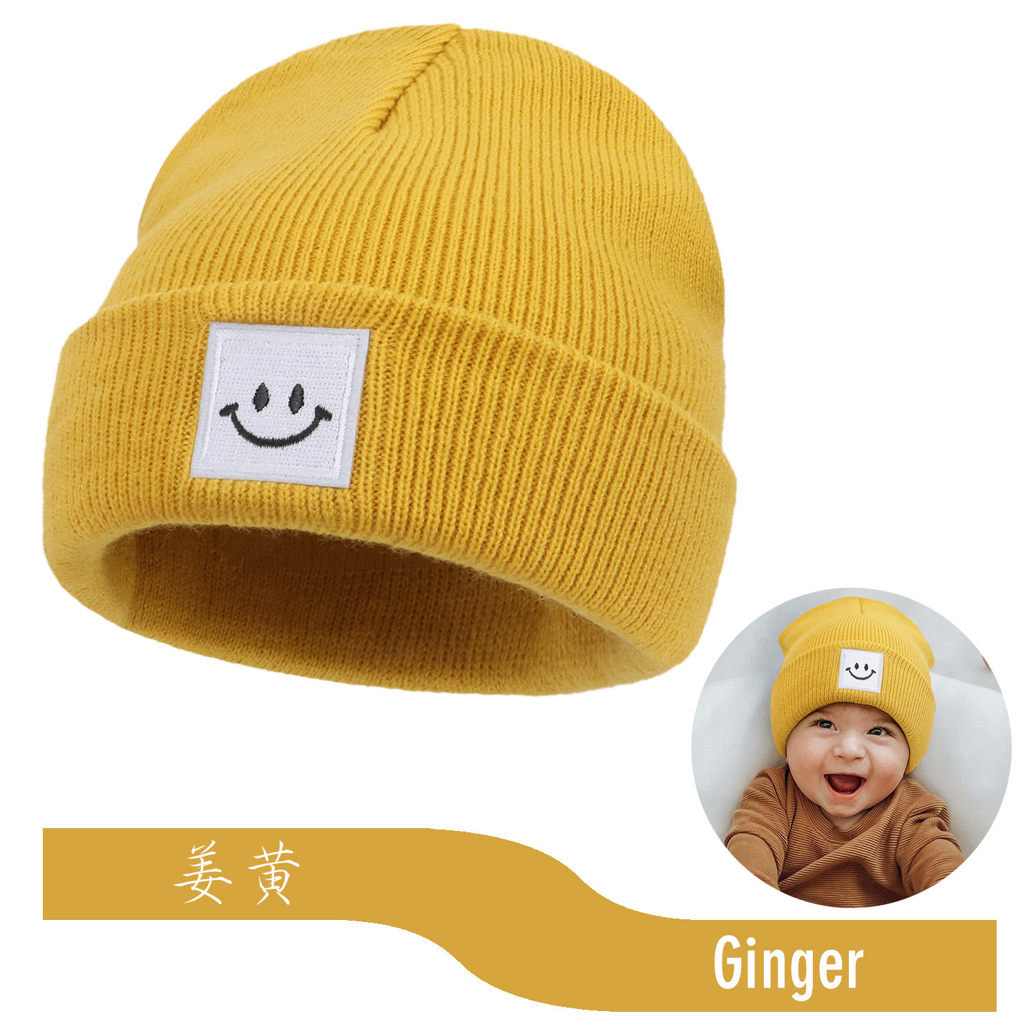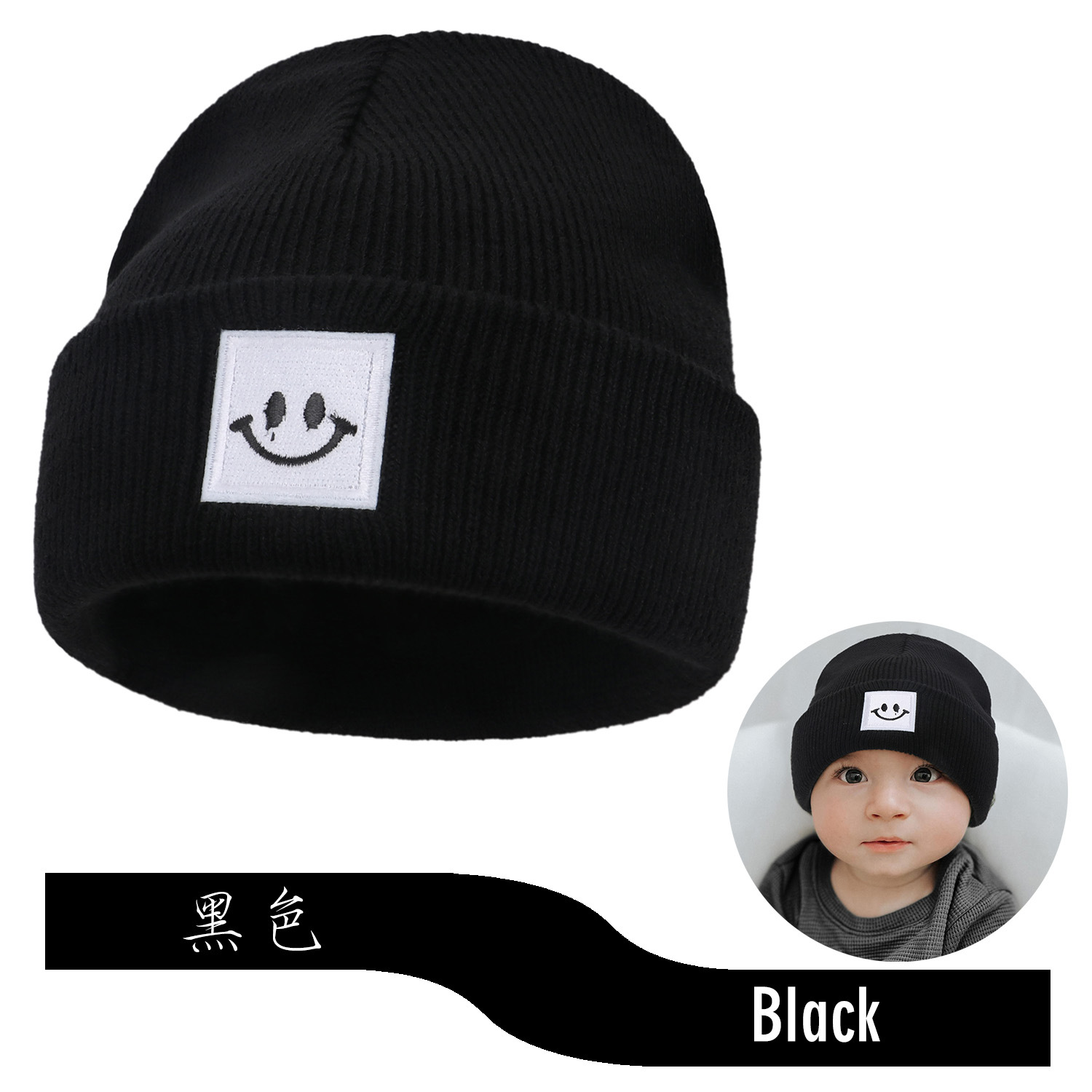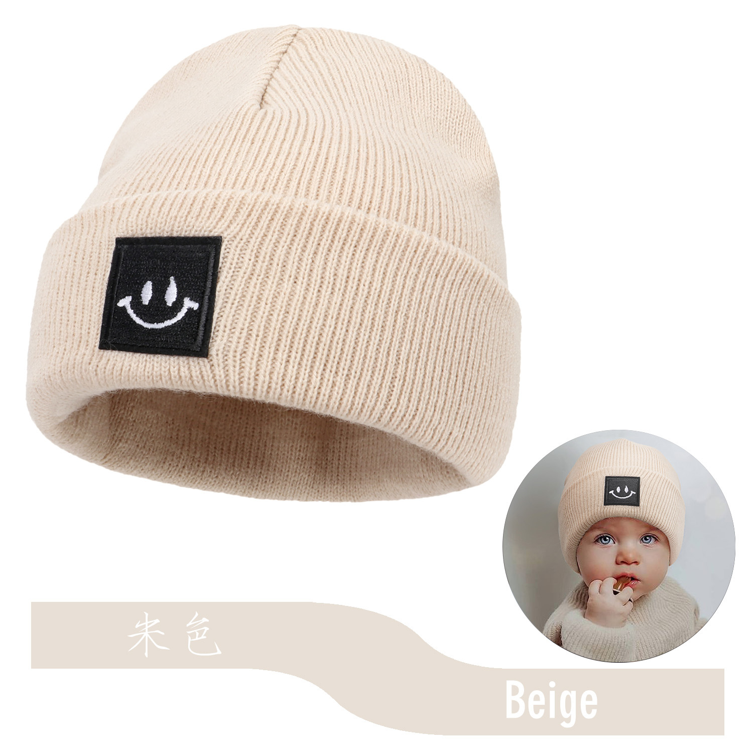 婴儿笑脸宝宝针织帽 儿童百搭毛线帽可爱微笑图案套头帽秋冬童帽