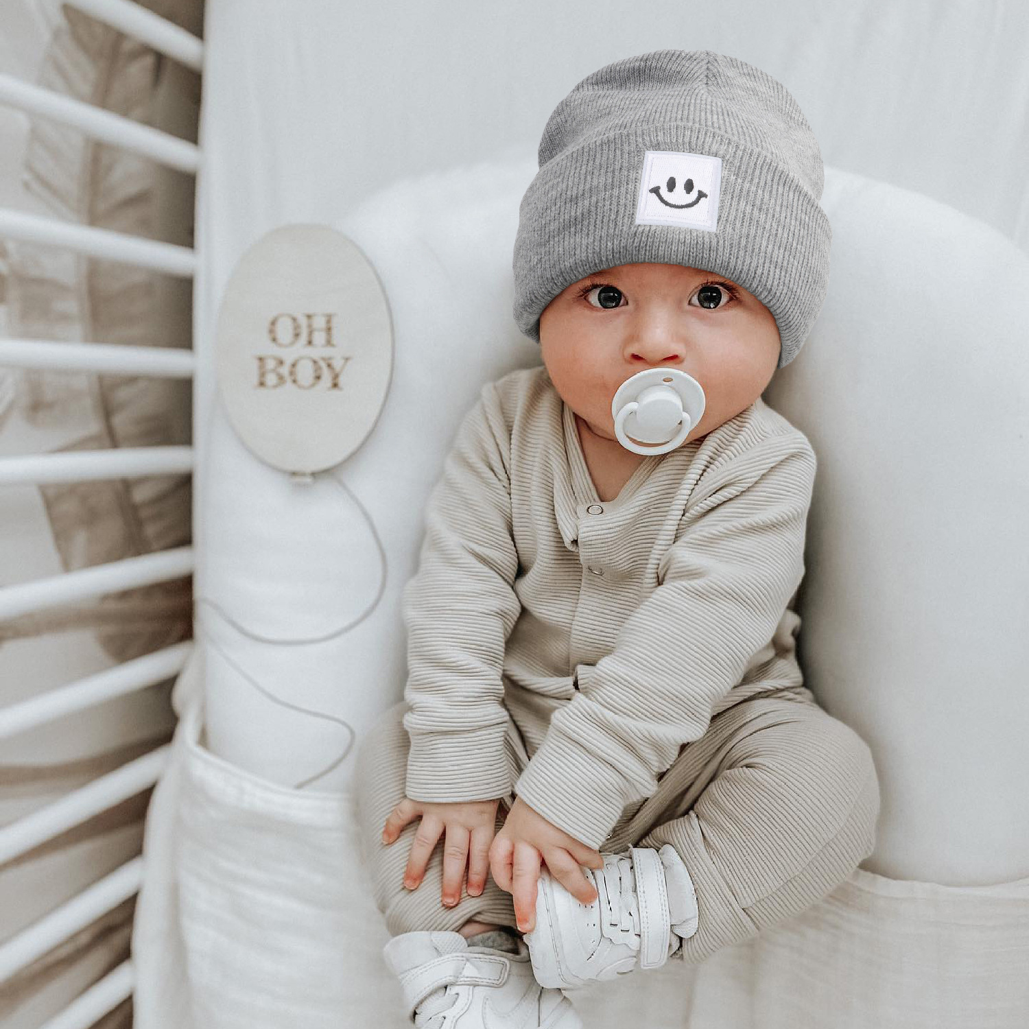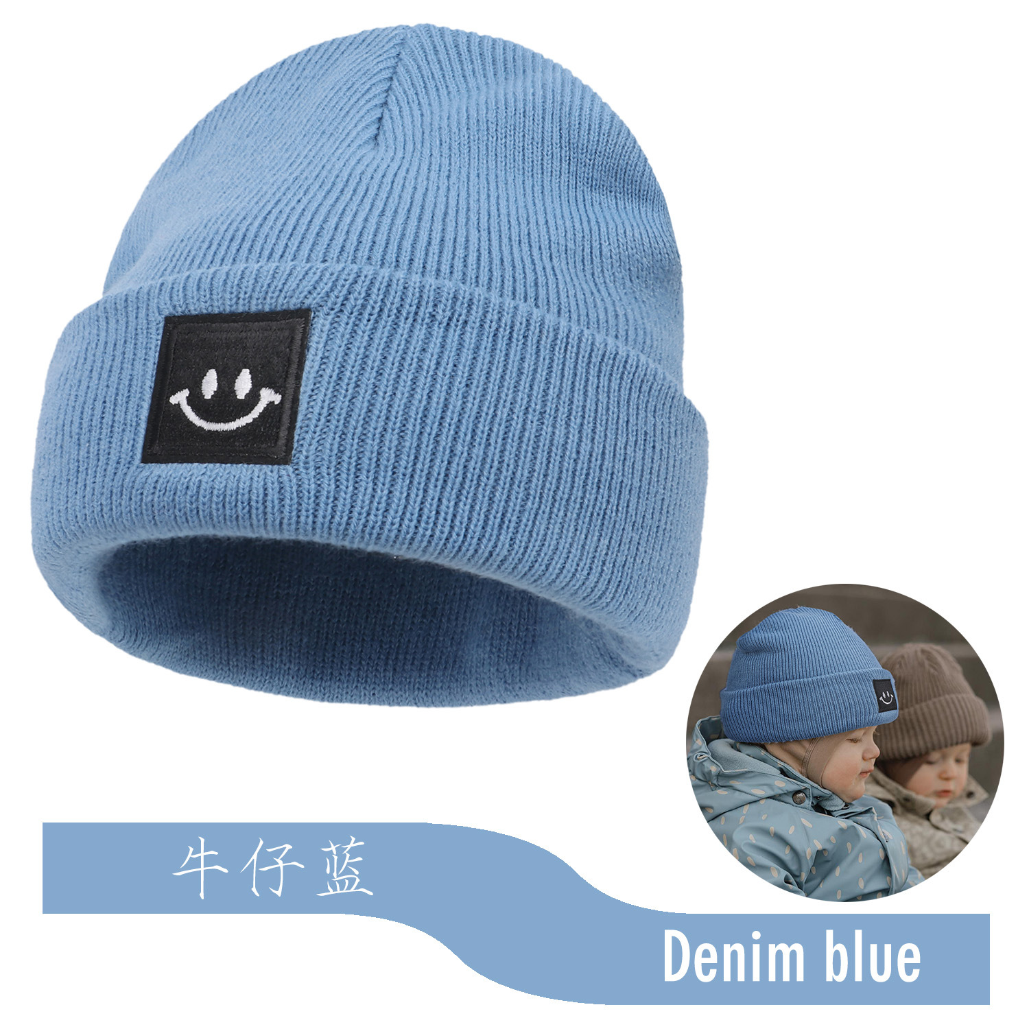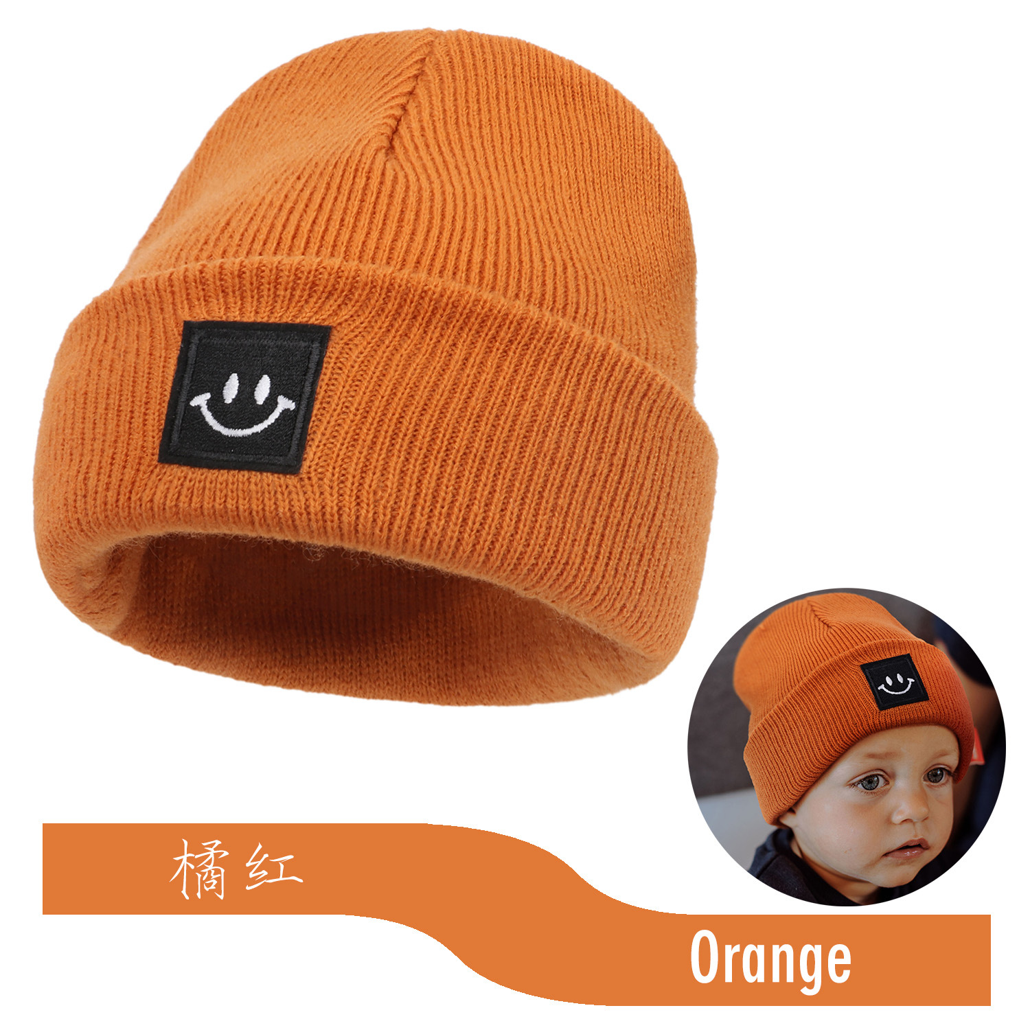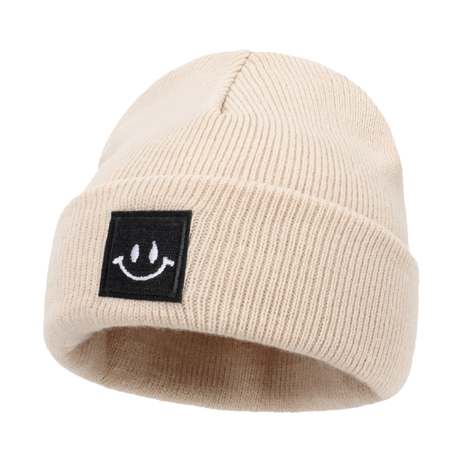 婴儿笑脸宝宝针织帽 儿童百搭毛线帽可爱微笑图案套头帽秋冬童帽