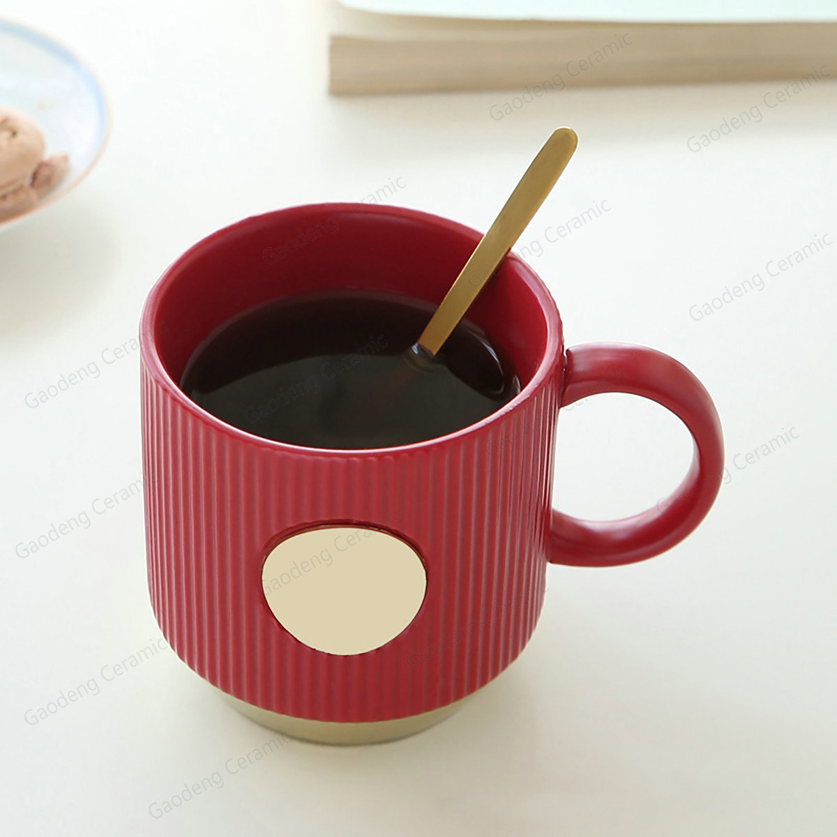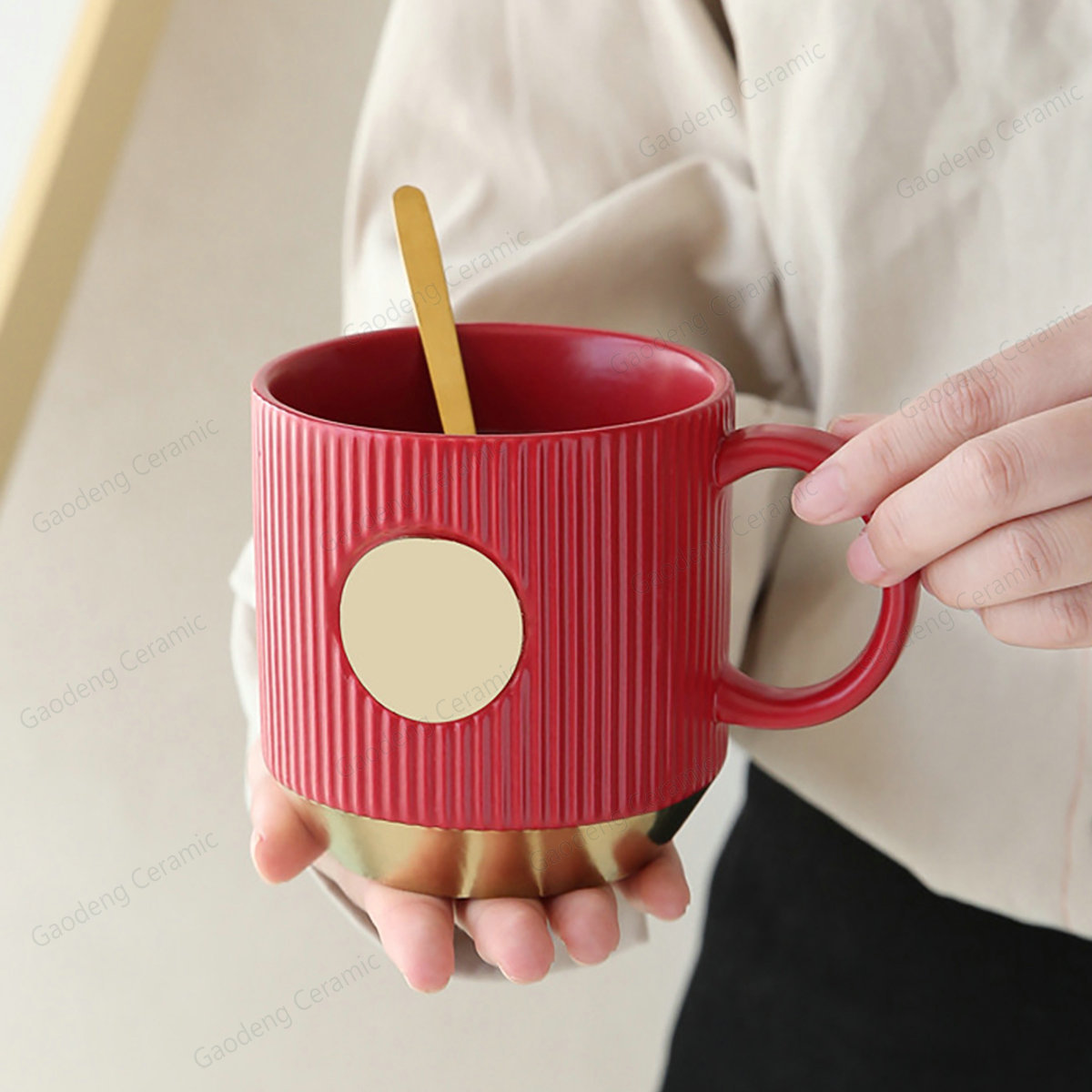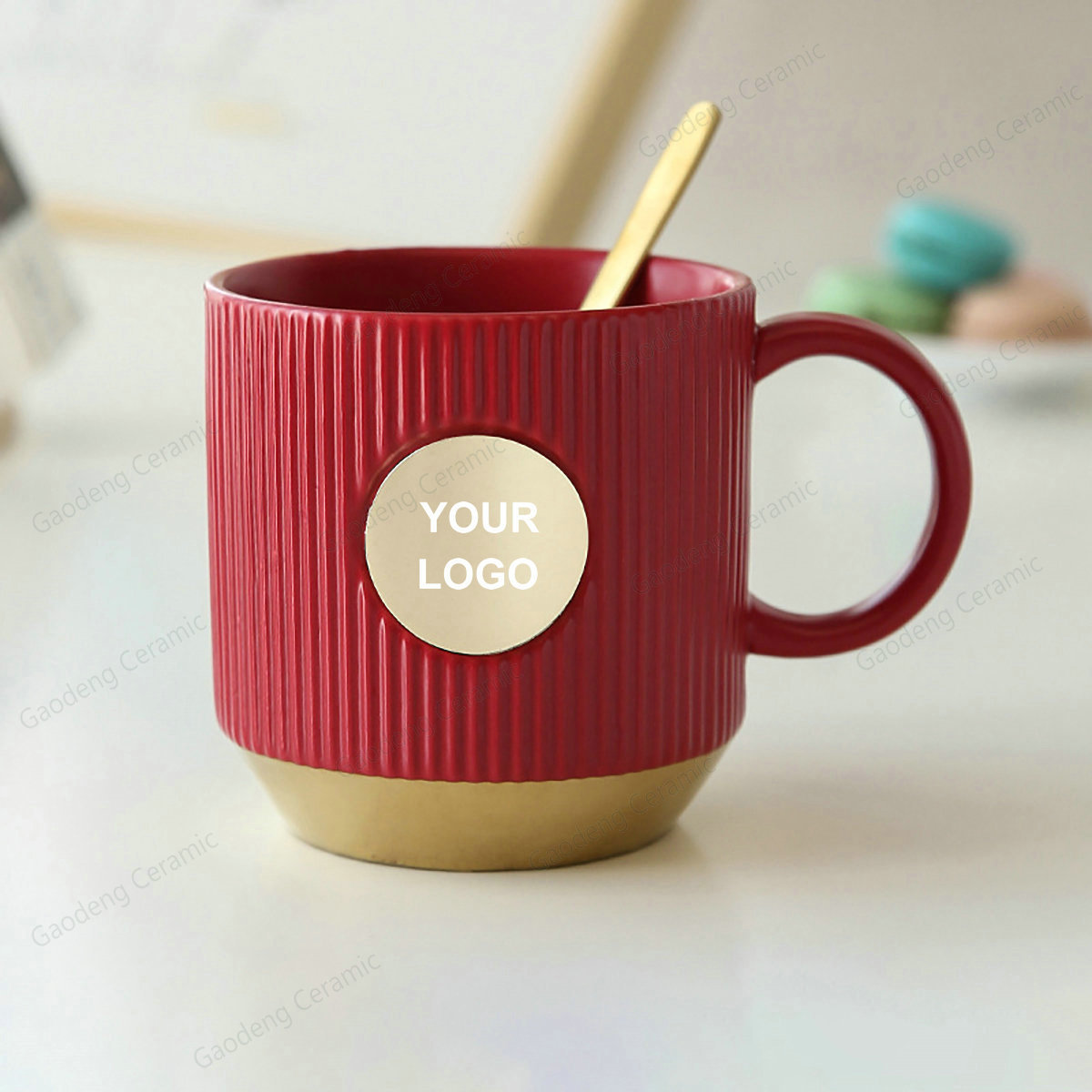 咖啡馆高档描金咖啡杯 创意铜片可定制LOGO条纹陶瓷马克杯
