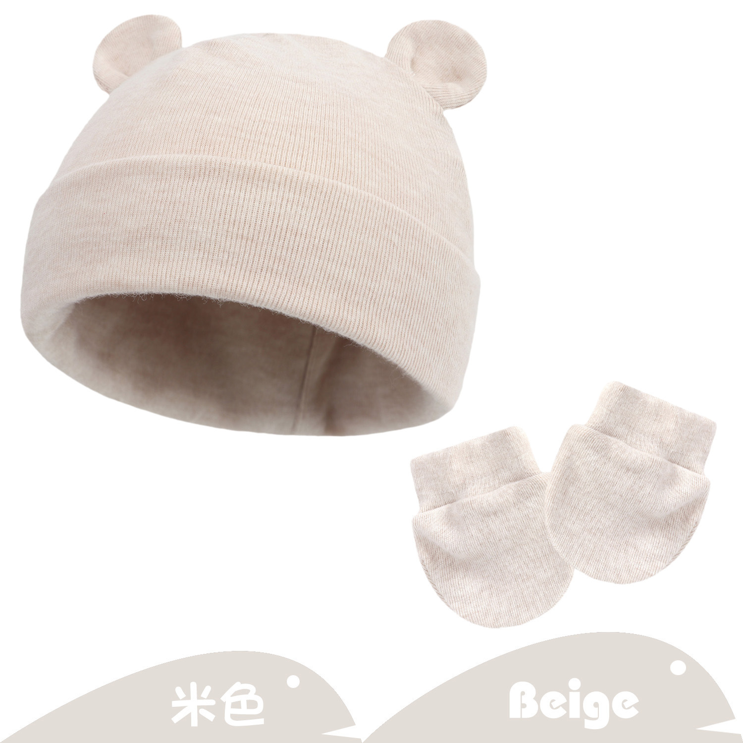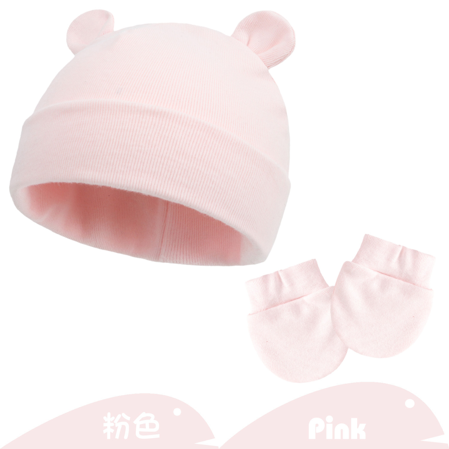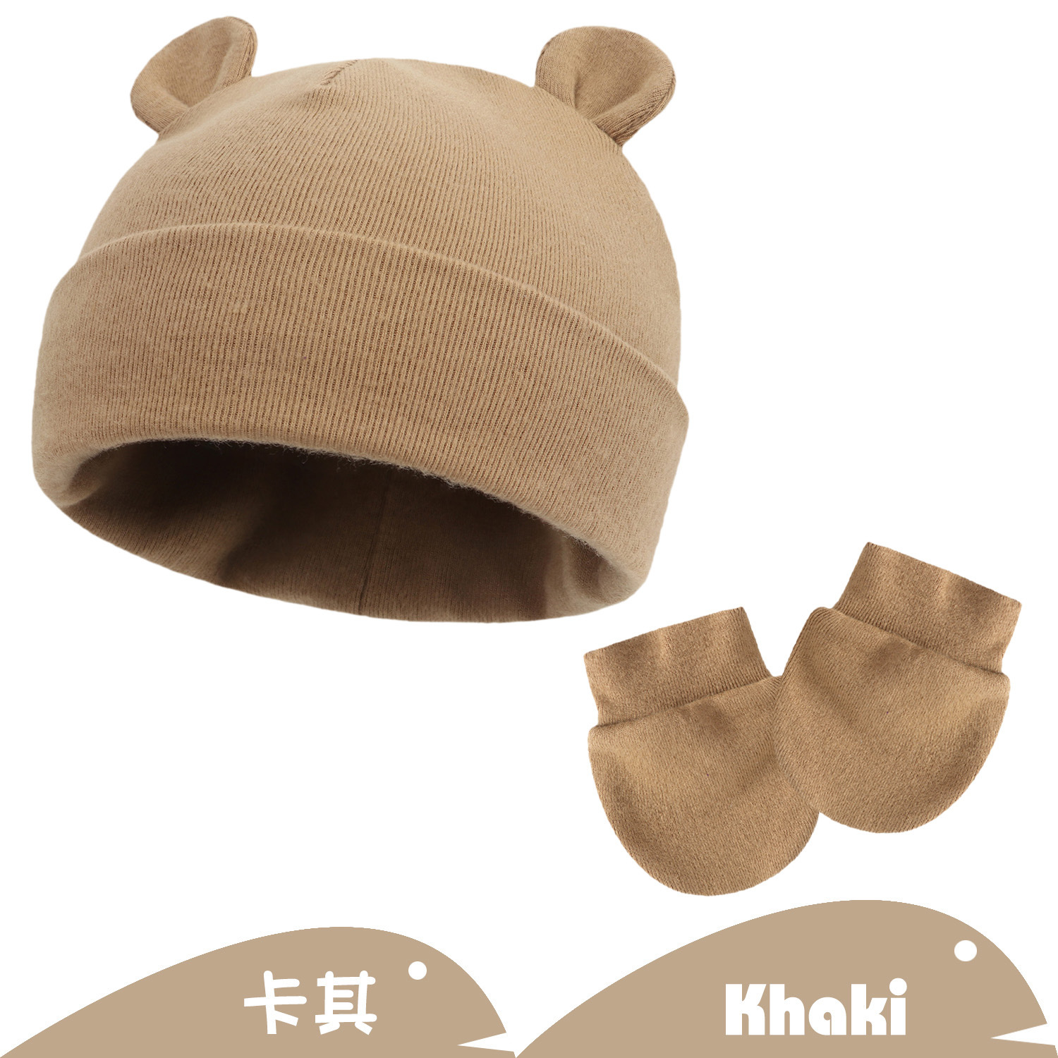 亚马逊爆款新生儿手套帽子两件套宝宝保暖羊绒加厚胎帽手套套装
