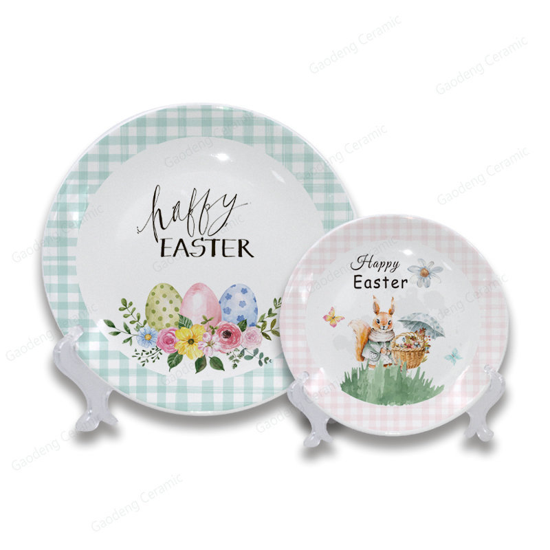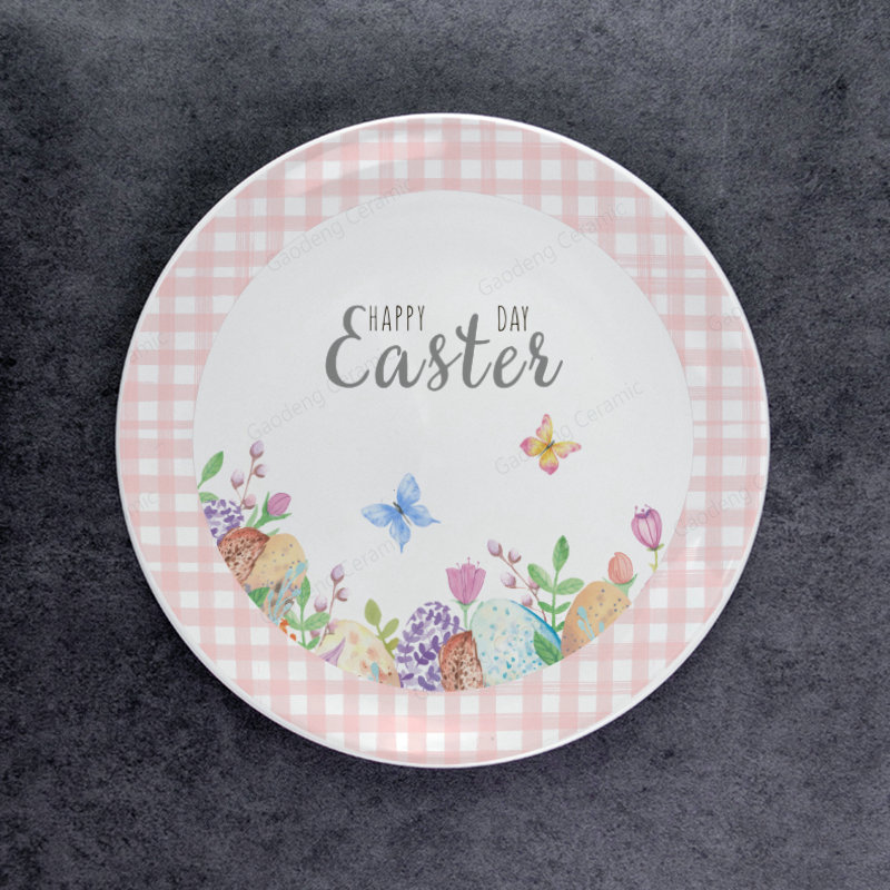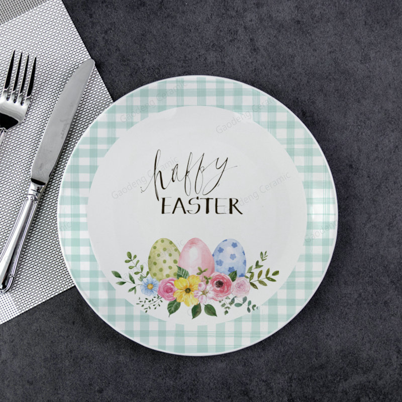 定制10寸圆形陶瓷盘 酒店家用可爱复活节图案晚餐餐盘