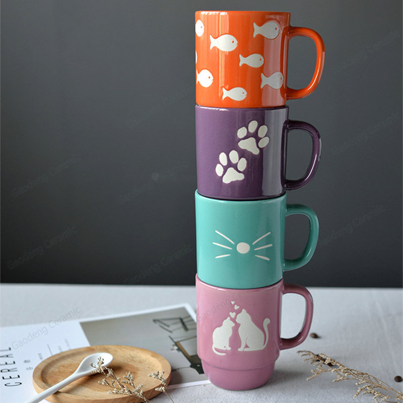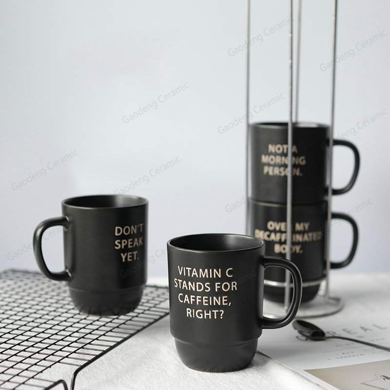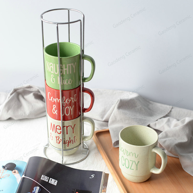 创意款4件套陶瓷杯 家用简约便捷带铁架套杯叠叠杯广告礼品杯定制