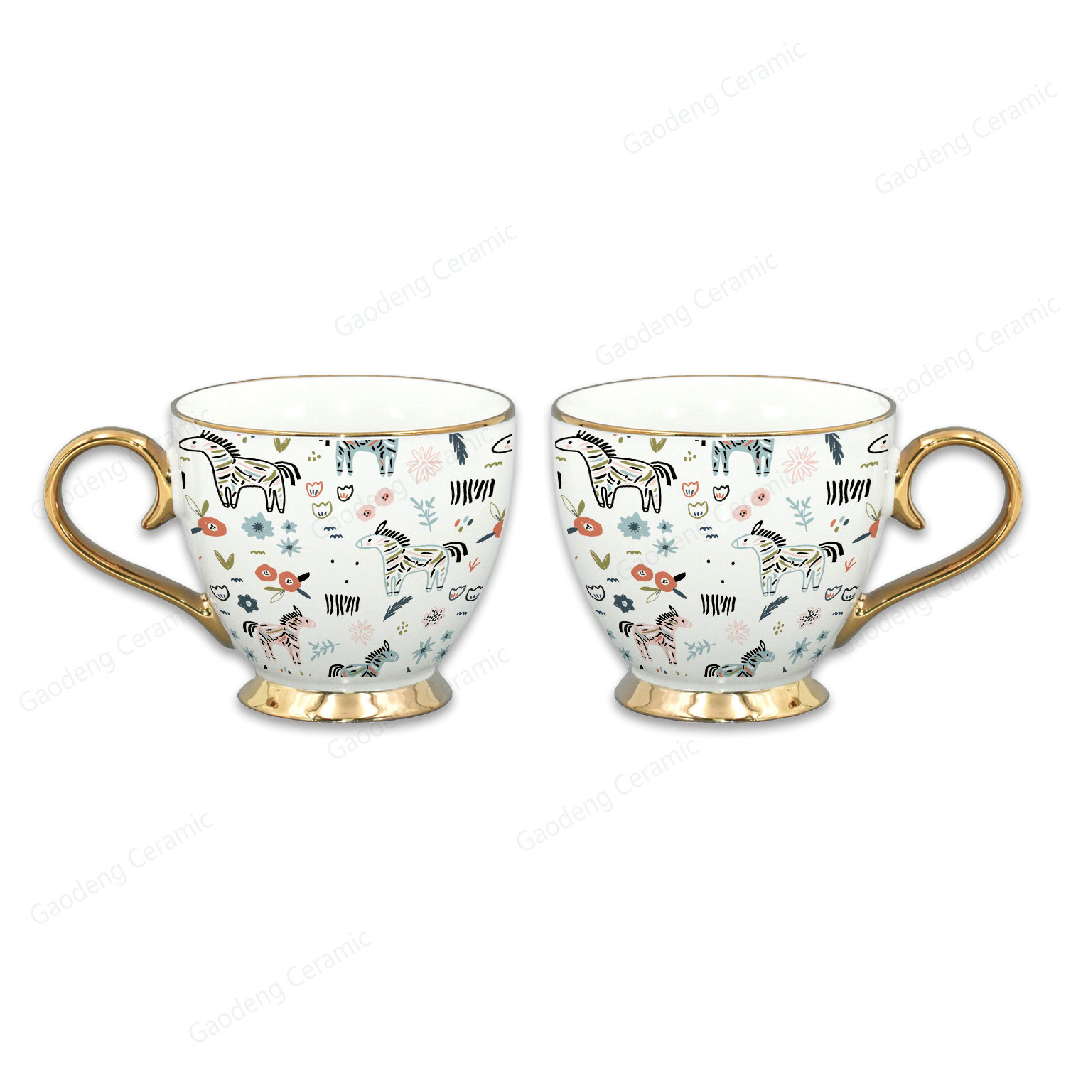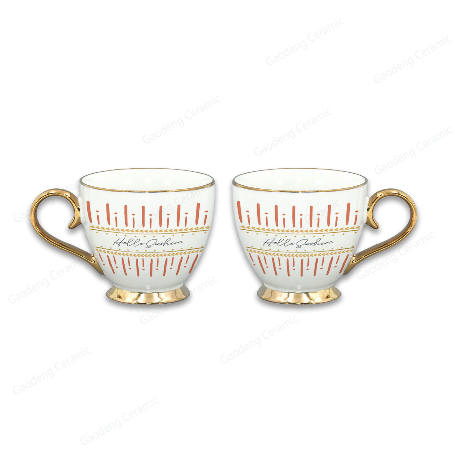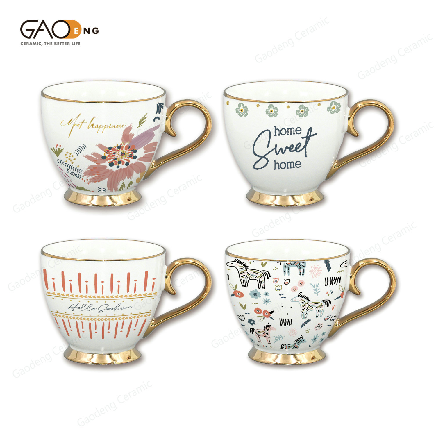 轻奢创意镀金手柄金色口边陶瓷挖角杯潮流情侣咖啡杯可定制LOGO